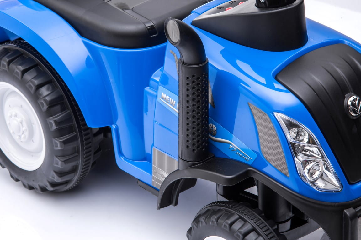 Jeździk dla dziecka na roczek traktor z przyczepą New Holland niebieski
