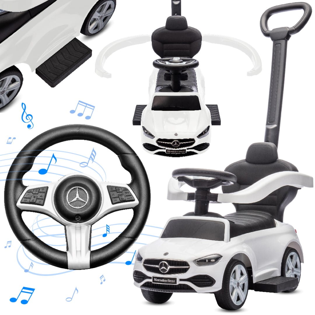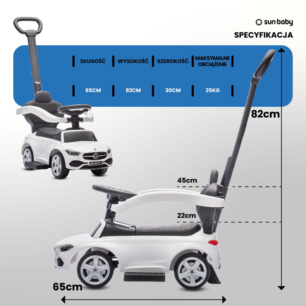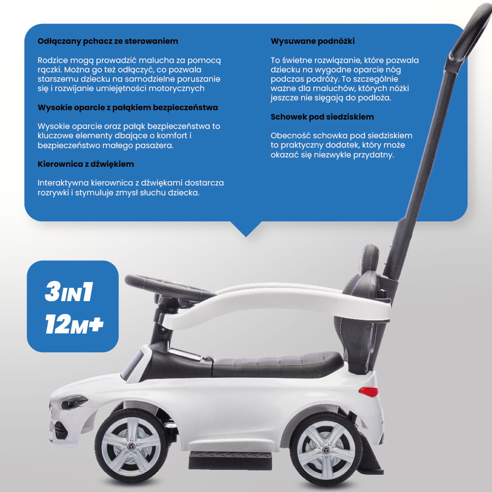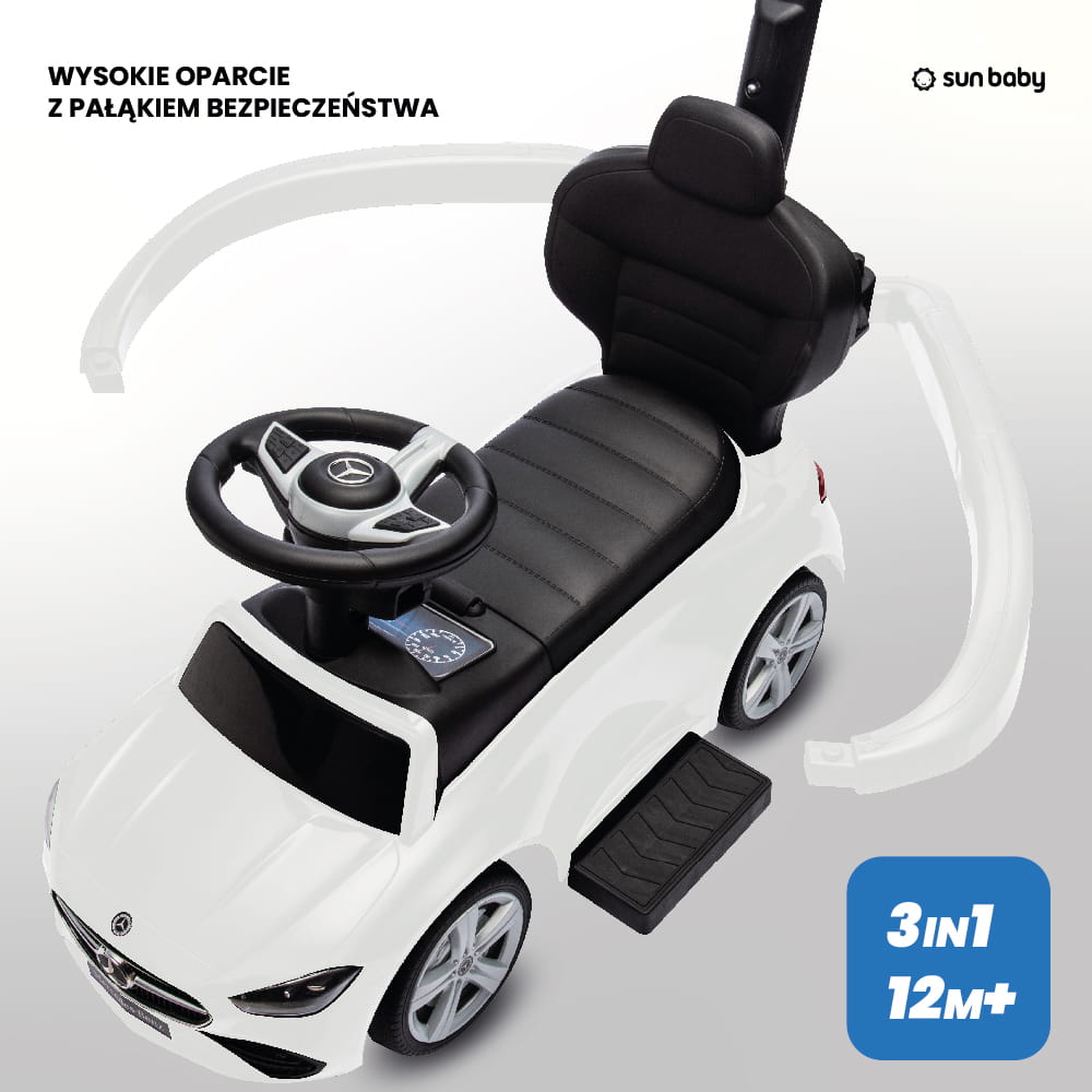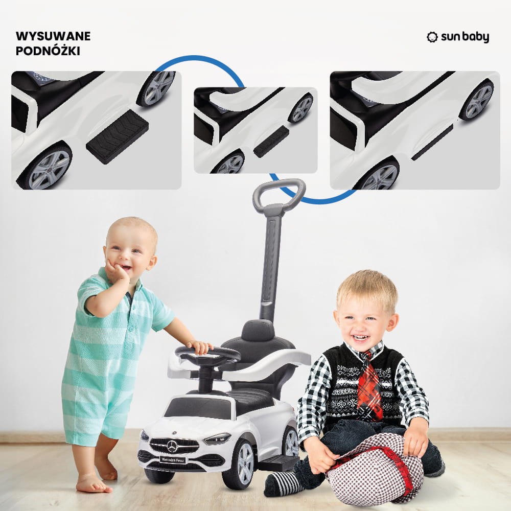 Sun Baby Jeździk pchacz chodzik dla dziecka Mercedes C-Class z popychaczem i podnóżkiem biały