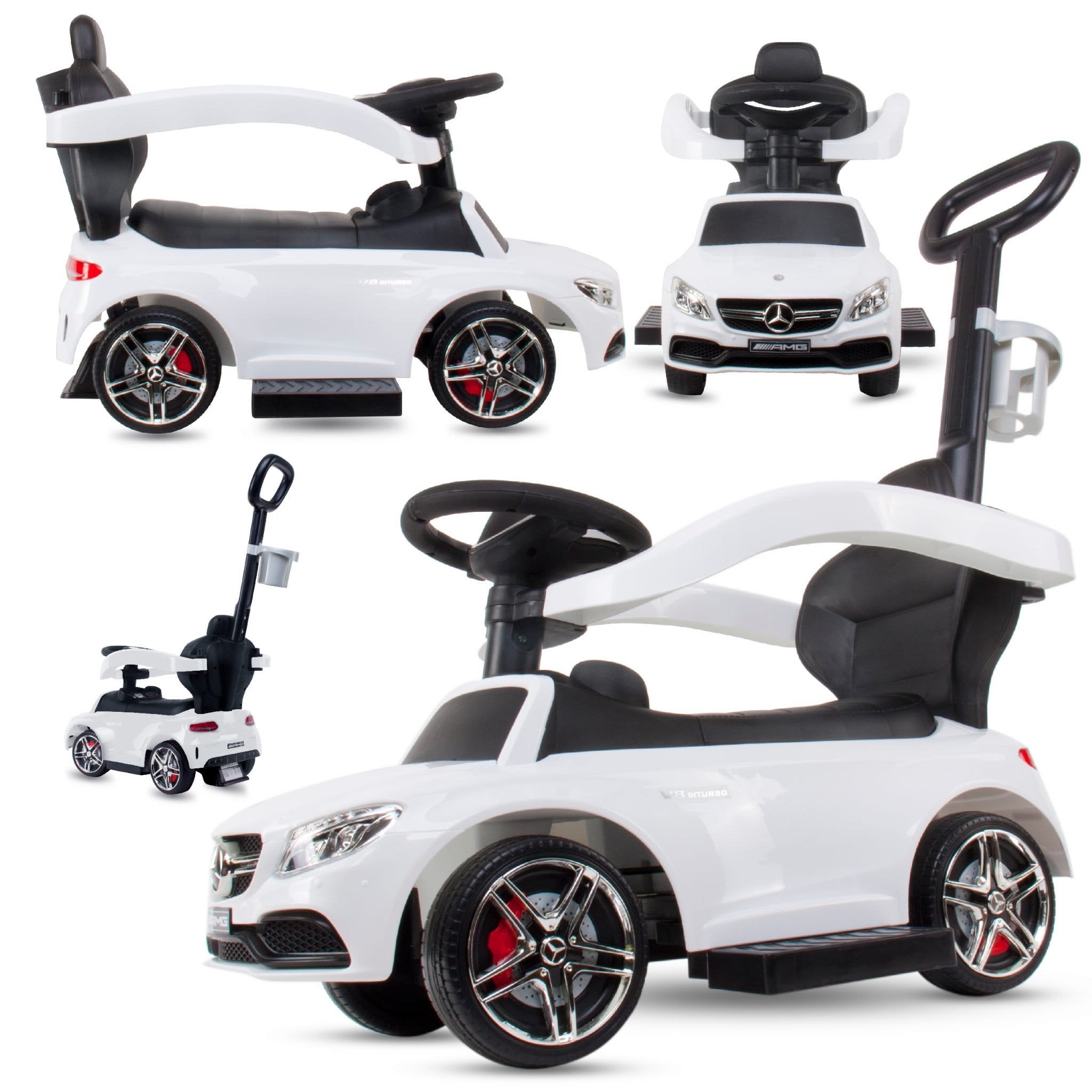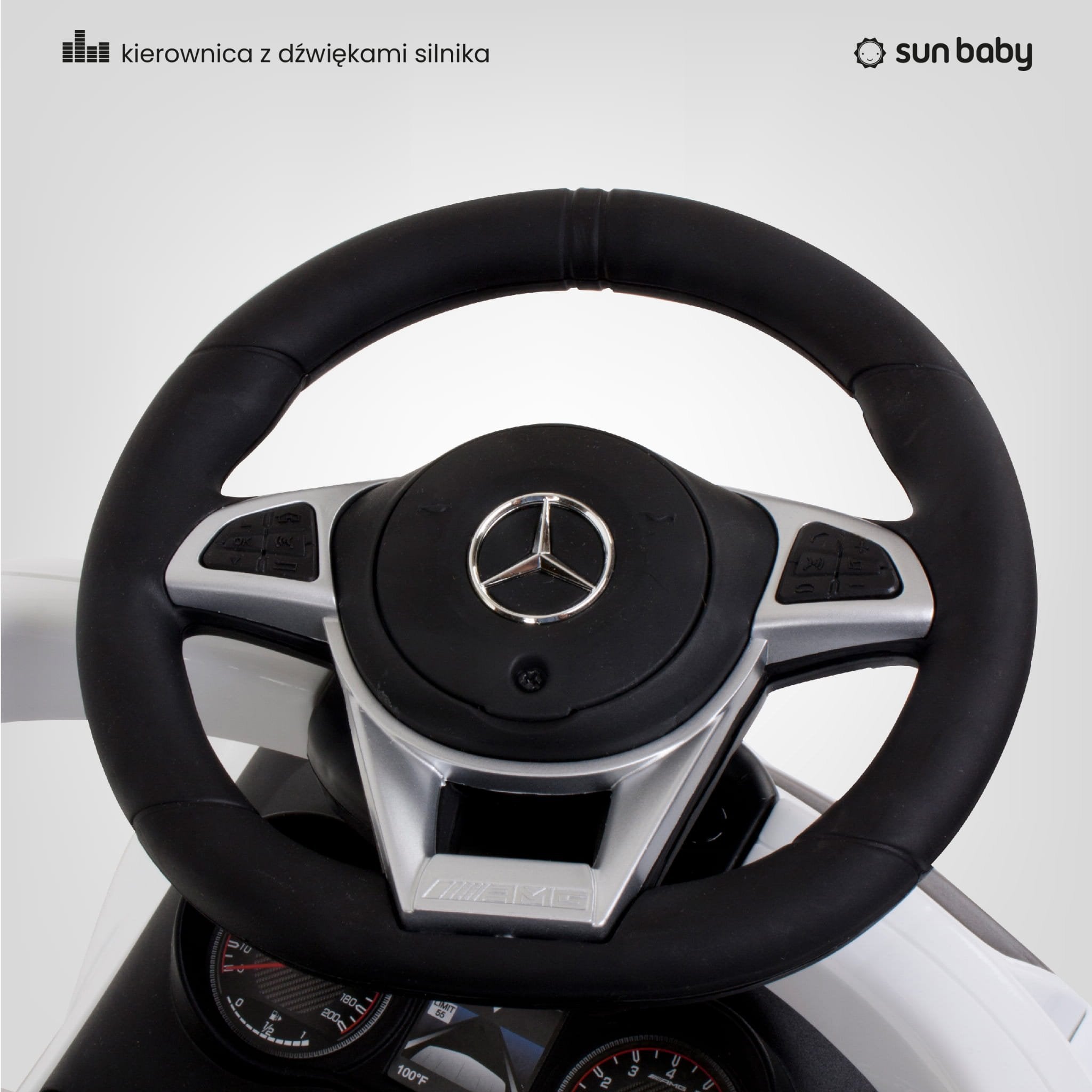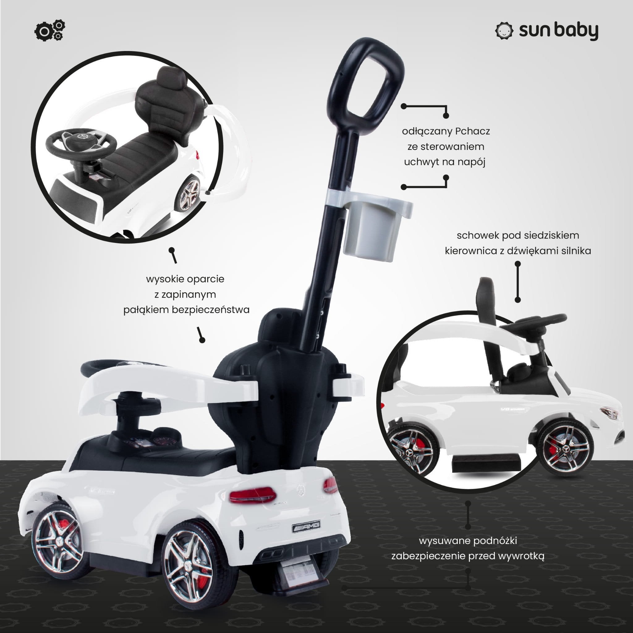 Jeździk dla dziecka z rączką i chowanymi podnóżkami Mercedes AMG C63 COUPE biały