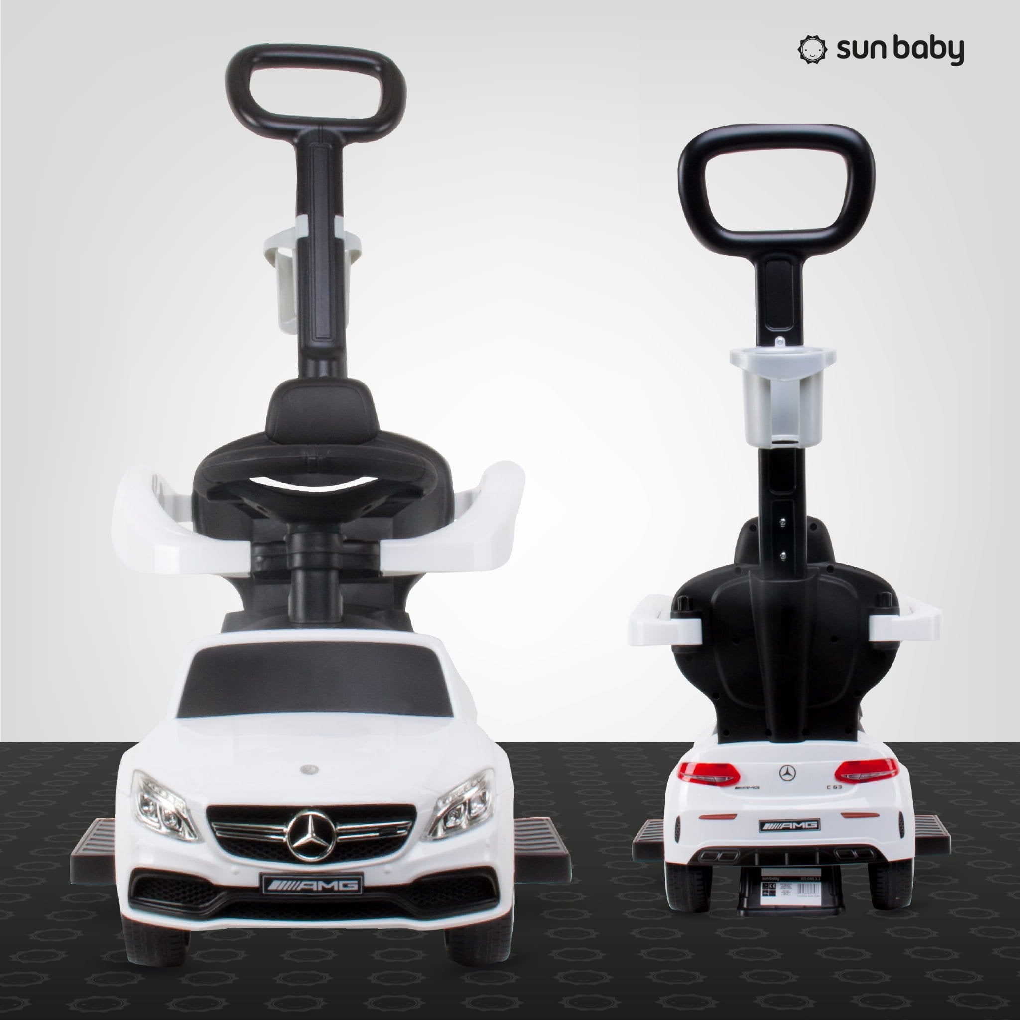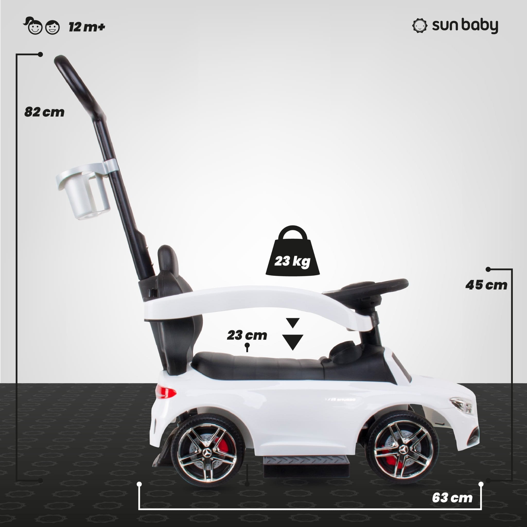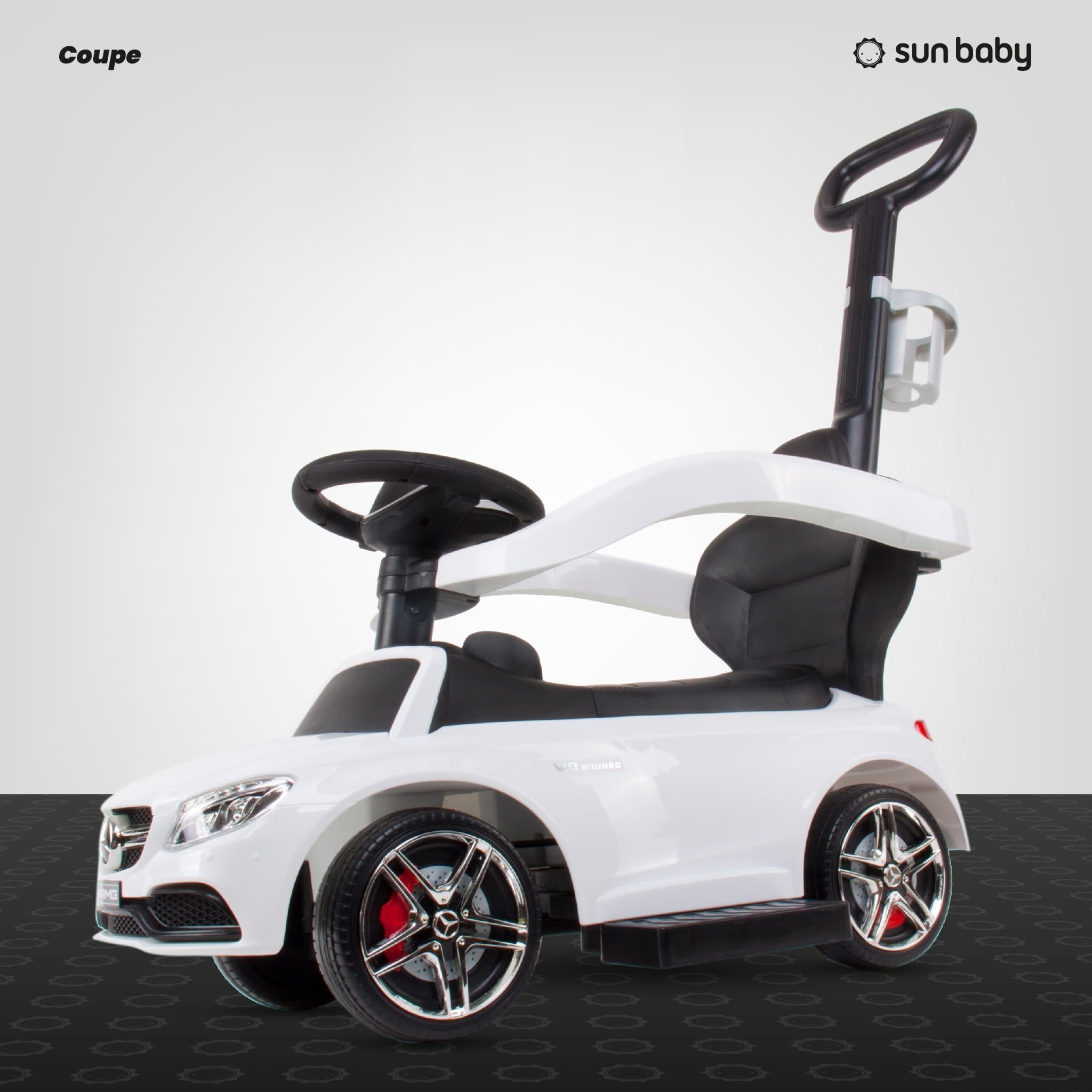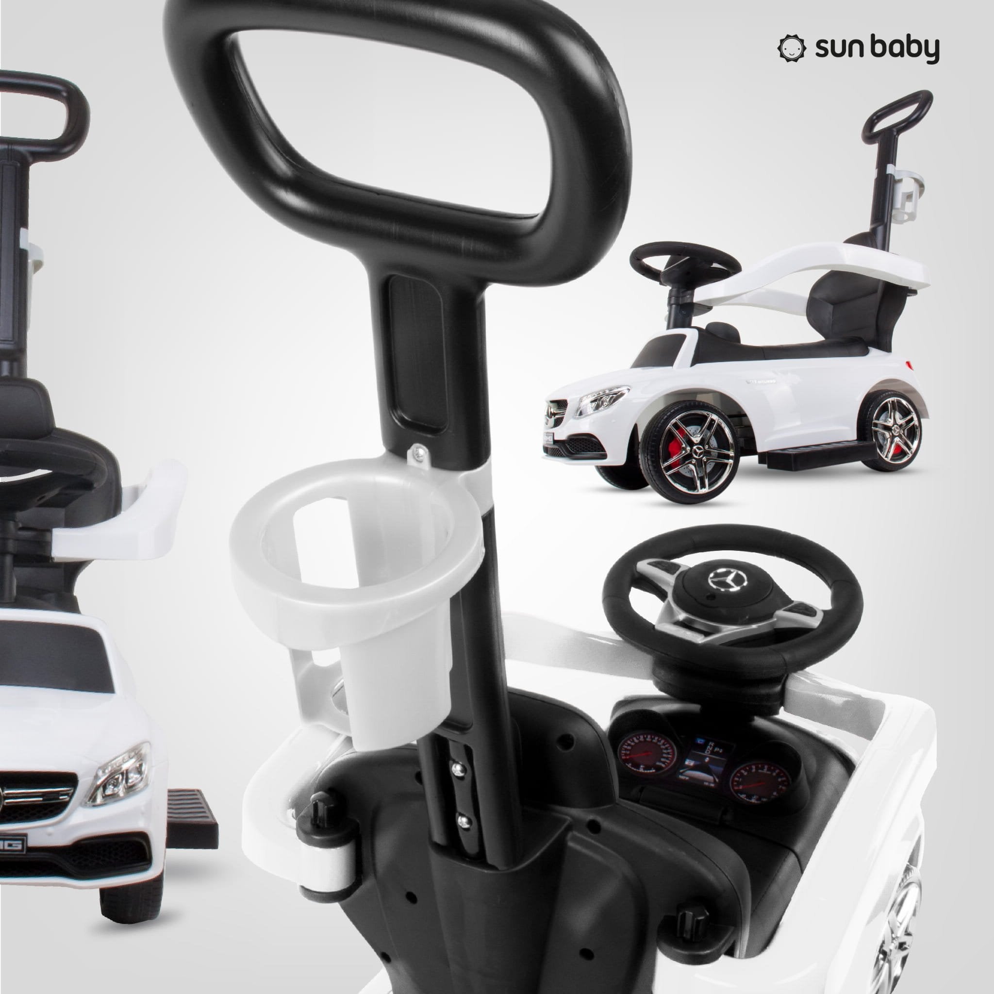 Jeździk dla dziecka z rączką i chowanymi podnóżkami Mercedes AMG C63 COUPE biały