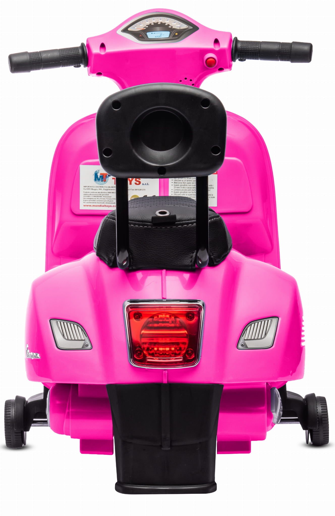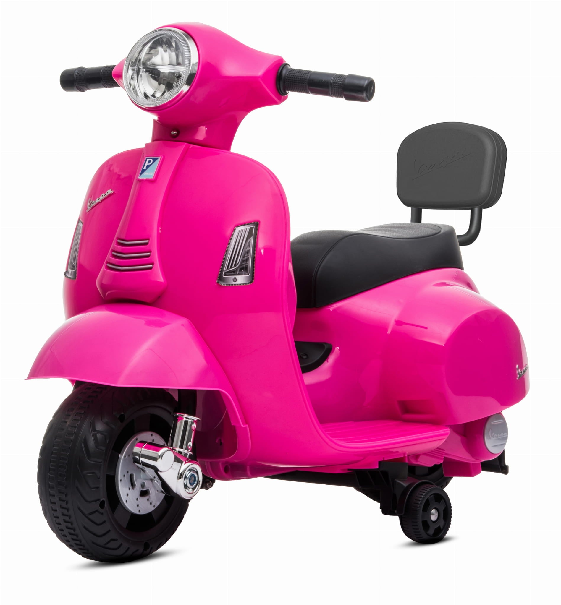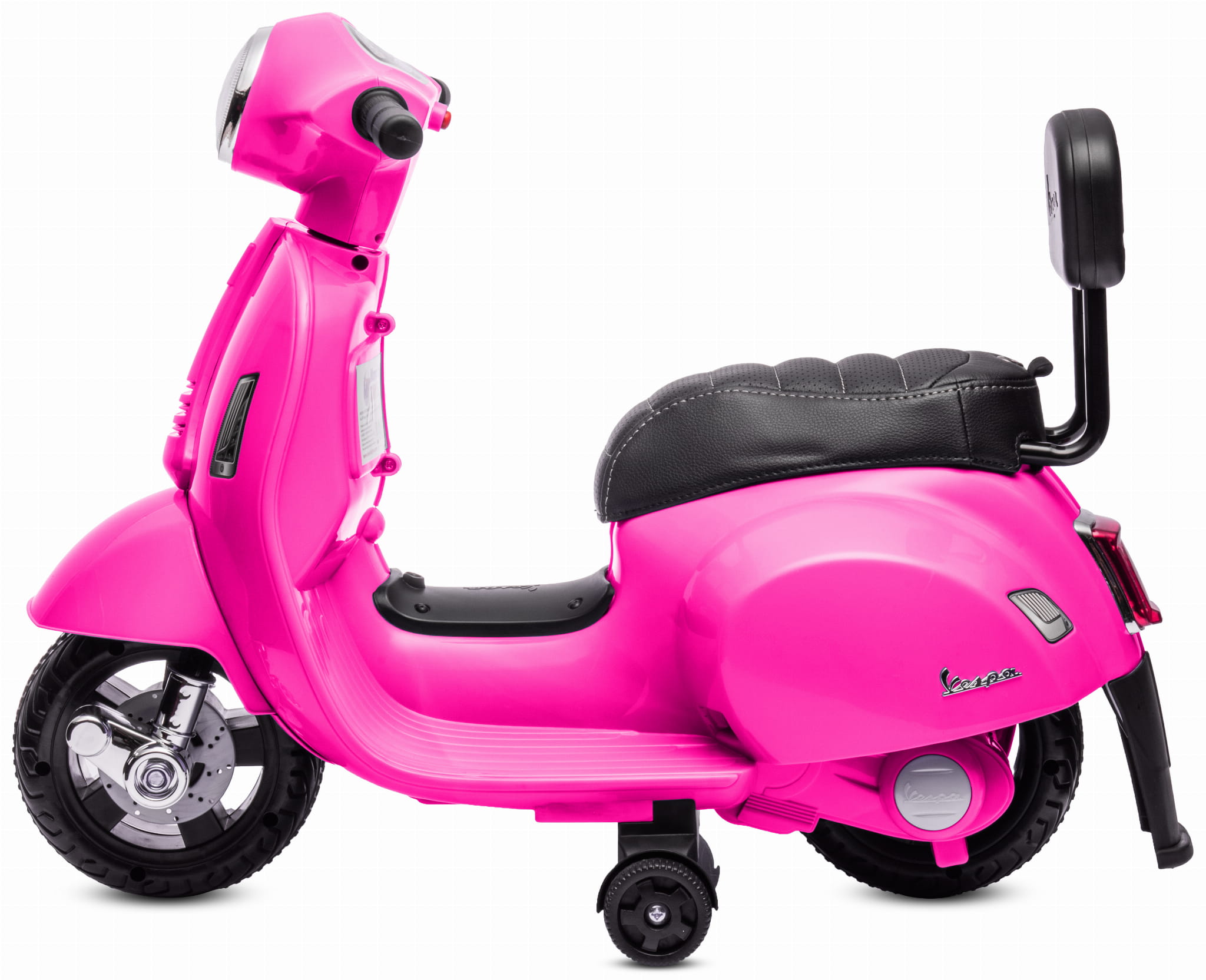 Jeździk dla dziecka skuter Vespa w kolorze fuksji na akumulator z oparciem – pojazd elektryczny 18m+
