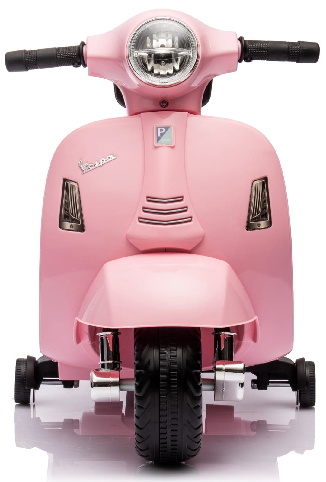 Jeździk dla dziecka skuter Vespa pudrowy róż na akumulator z oparciem – pojazd elektryczny 18m+
