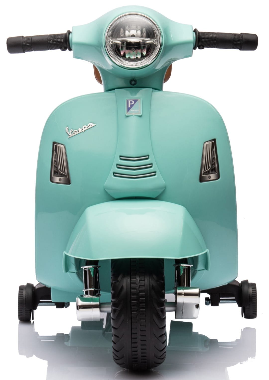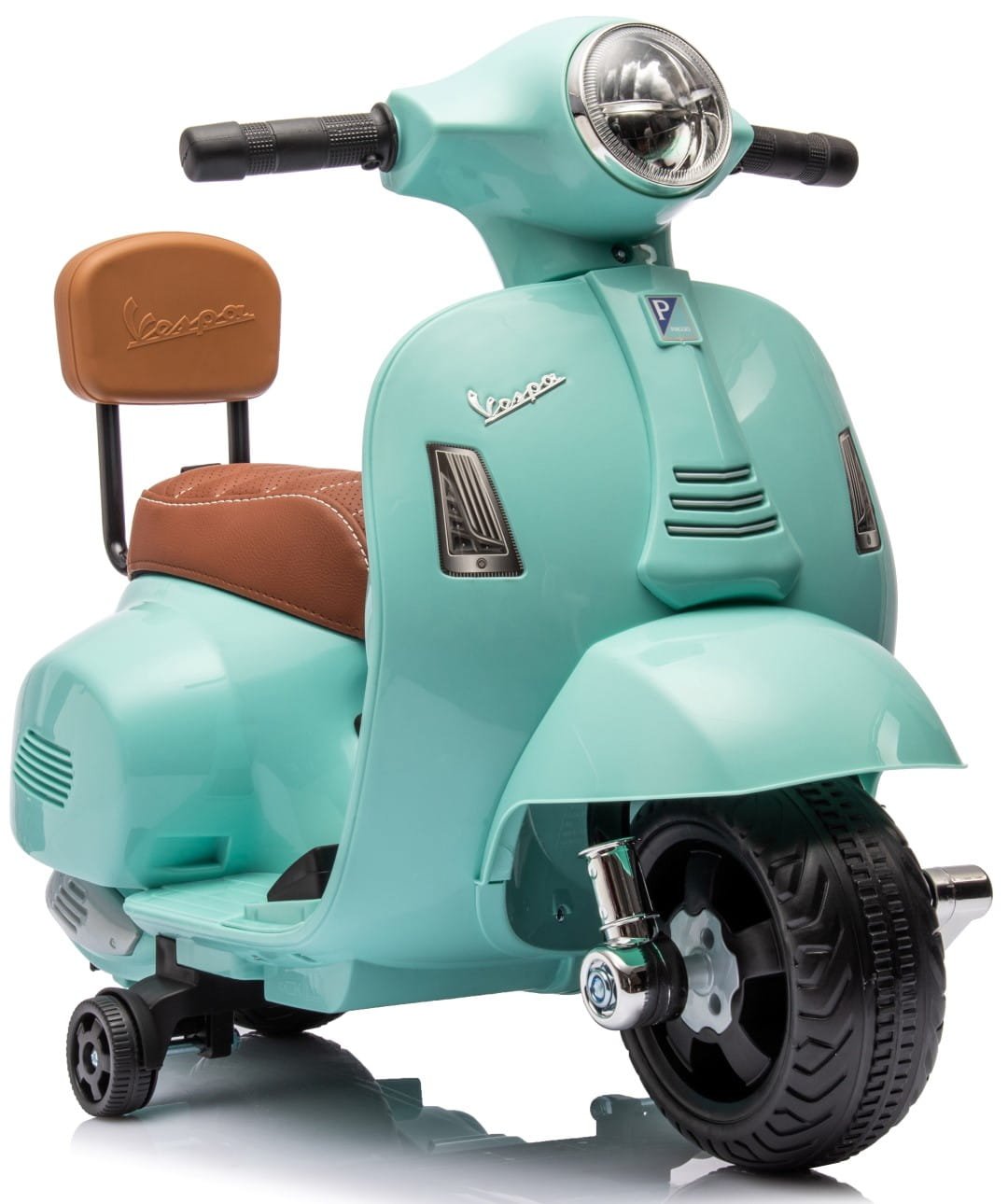 Jeździk dla dziecka Skuter Vespa na akumulator z oparciem turkusowy