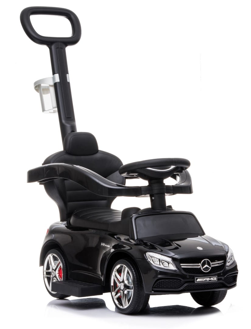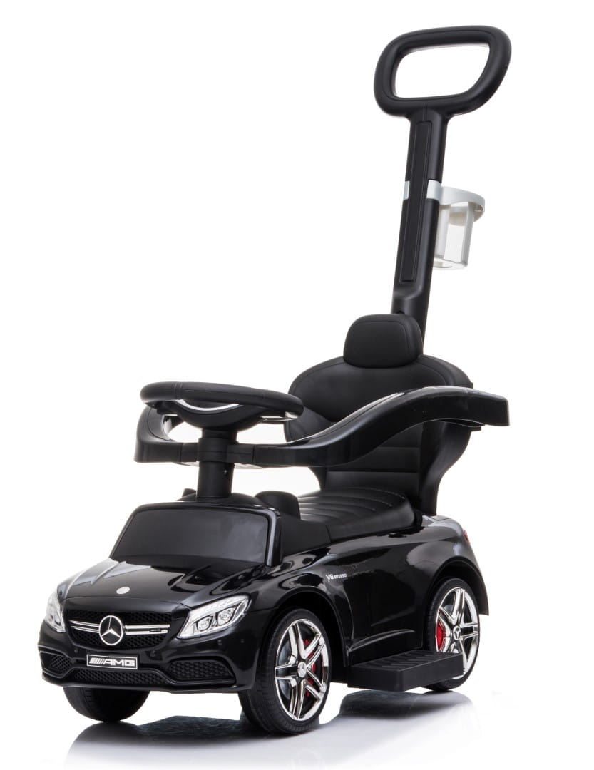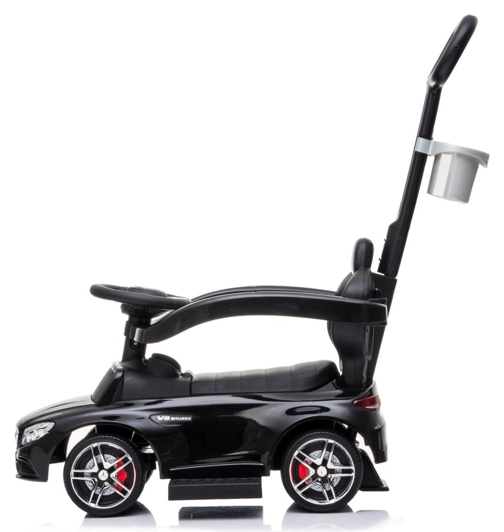 Jeździk dla dziecka z rączką i chowanymi podnóżkami Mercedes AMG C63 COUPE czarny