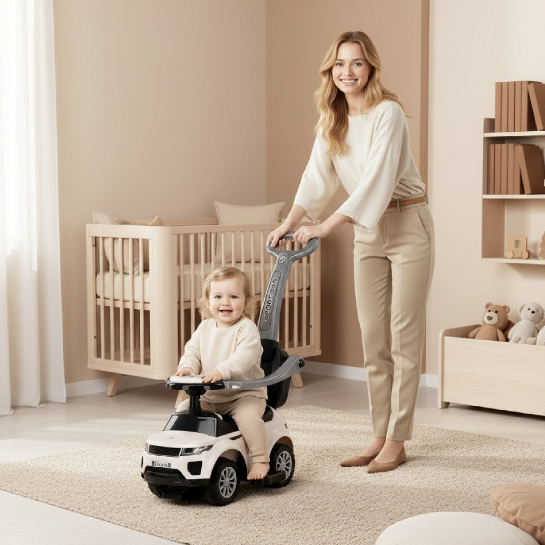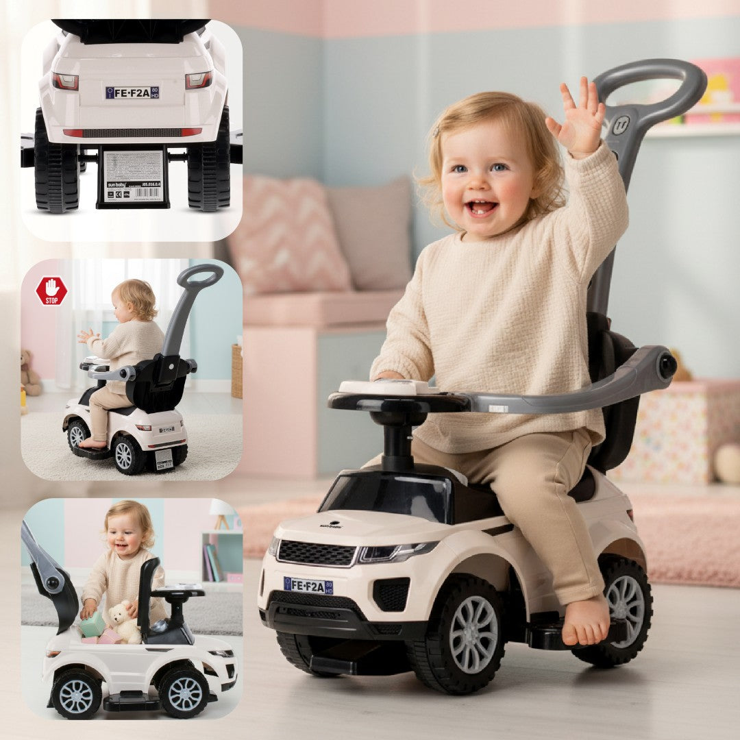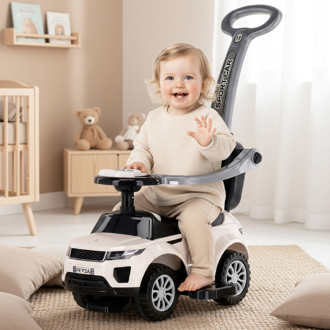 Jeździk pchacz chodzik dla dziecka z rączką i obejmą Sport car biały