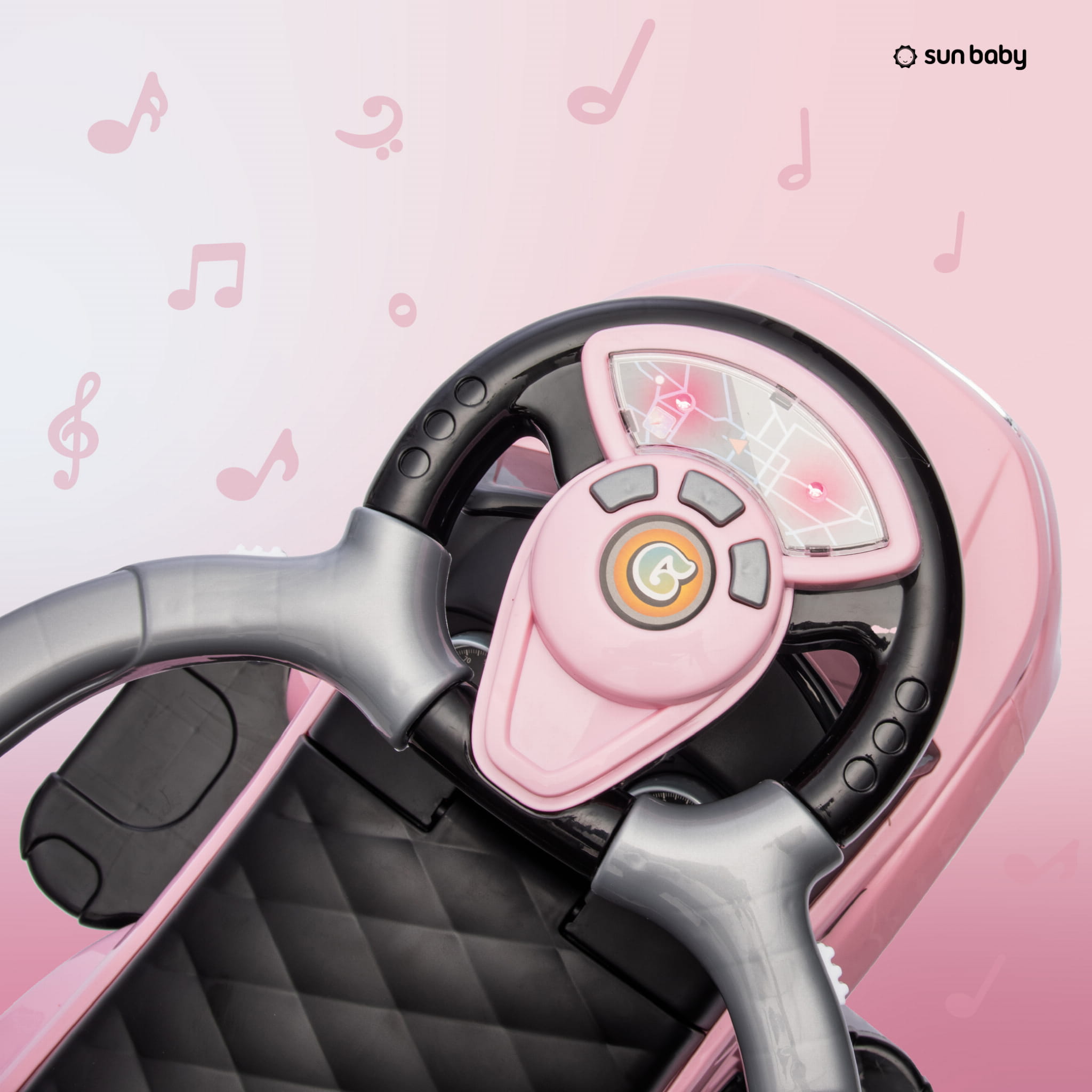 - Interaktywna kierownica z dźwiękami i światełkami dostarczy dużo zabaw.