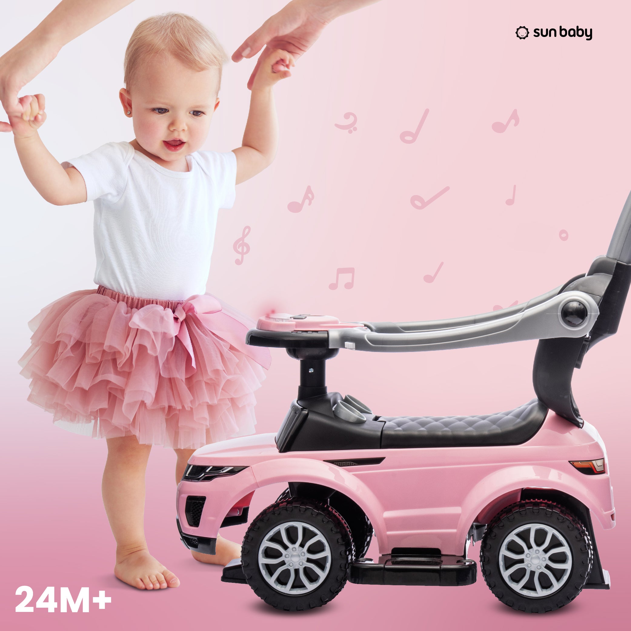 Jeździk pchacz chodzik dla dziecka z rączką i obejmą Sport car jasny różowy