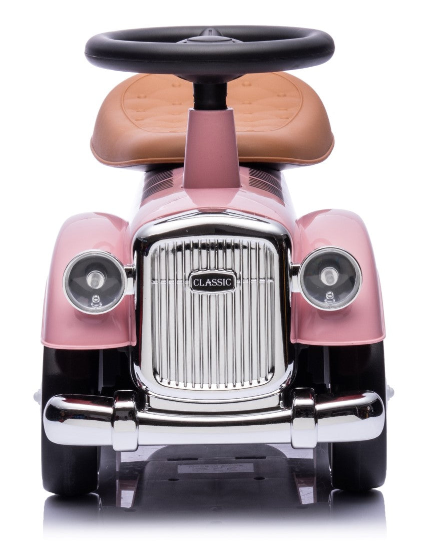 Jeździk Retro wyścigowy chodzik pchacz pudrowy róż — stylowy pojazd dla dziecka 12m+
