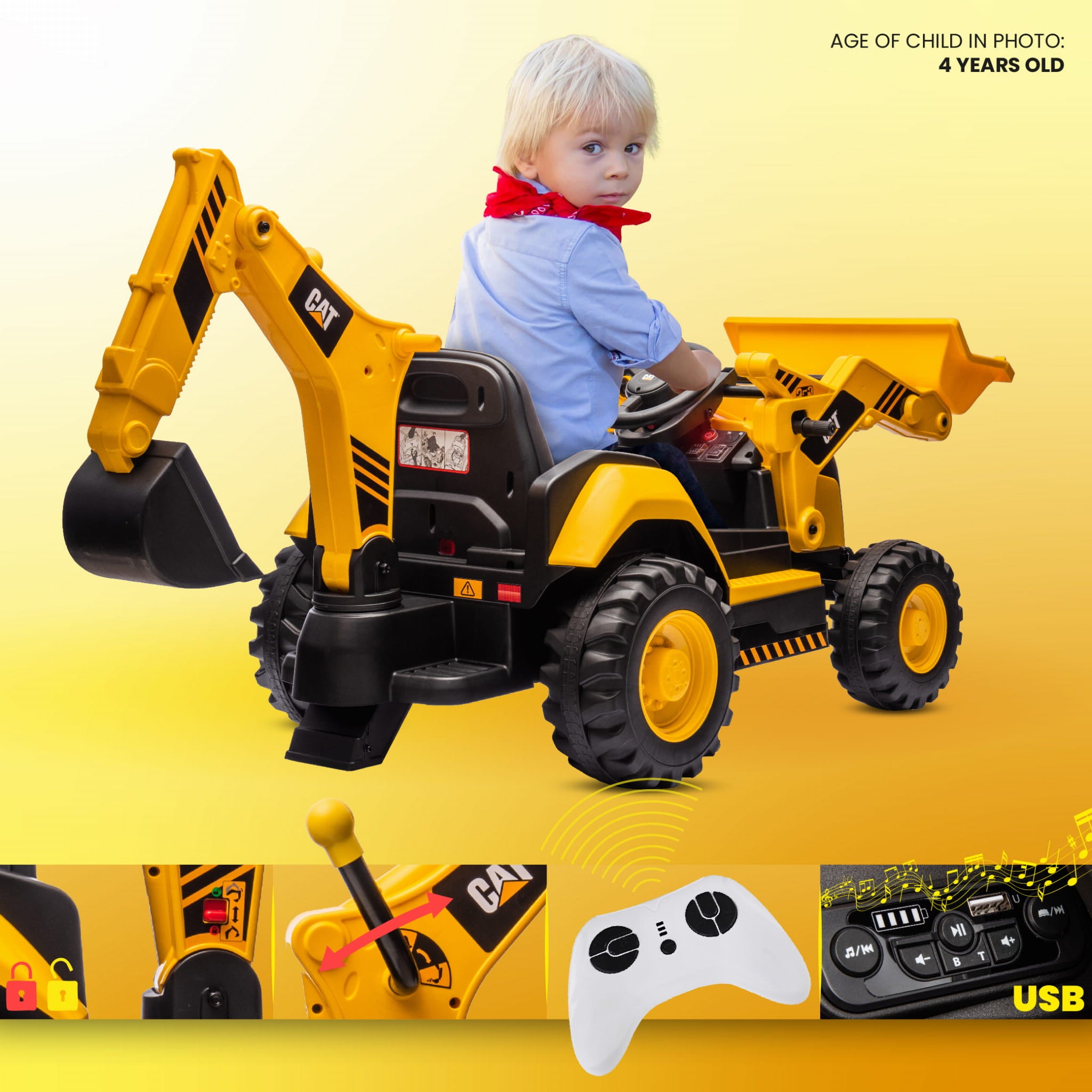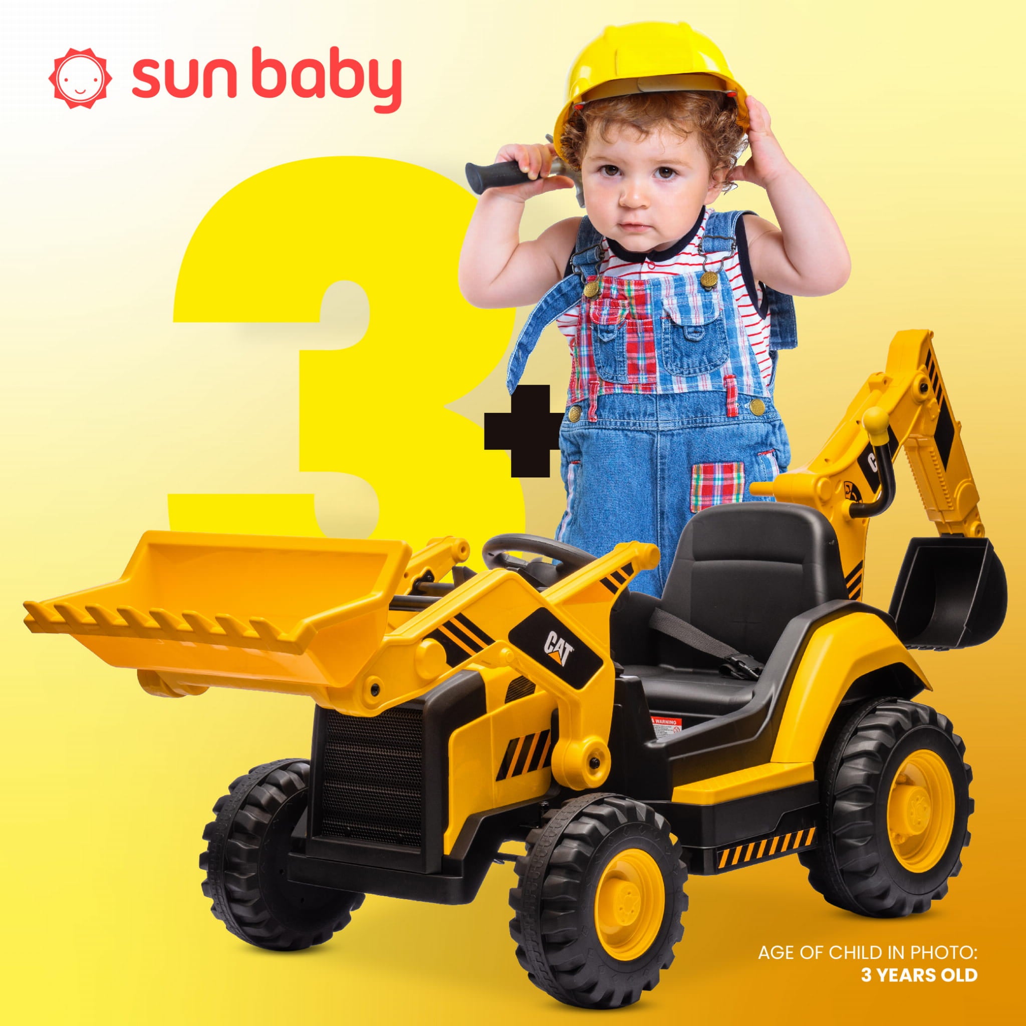 Sun Baby koparka ładowarka CAT Gigant żółta – jeździk samochód na akumulator z MP3 i pilotem
