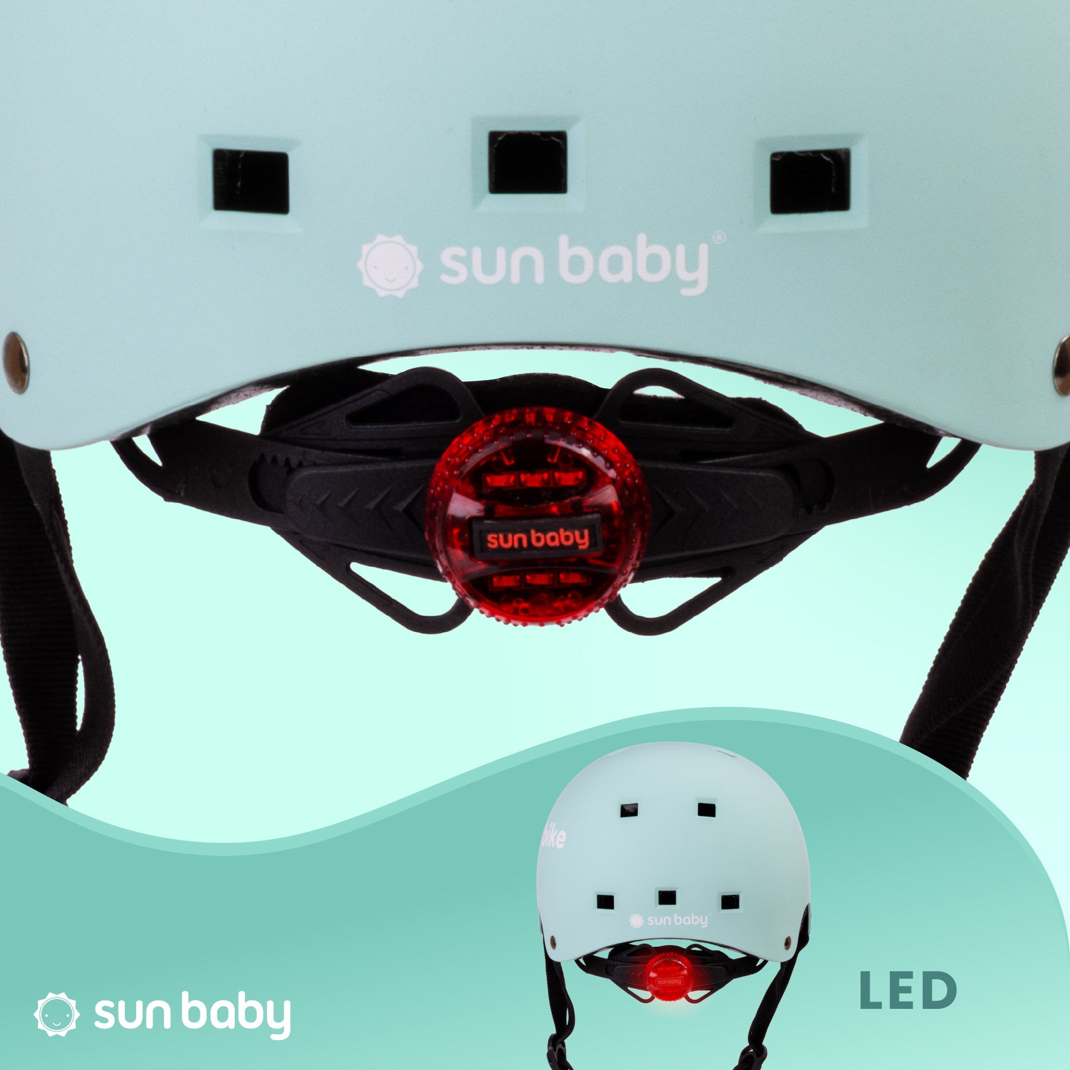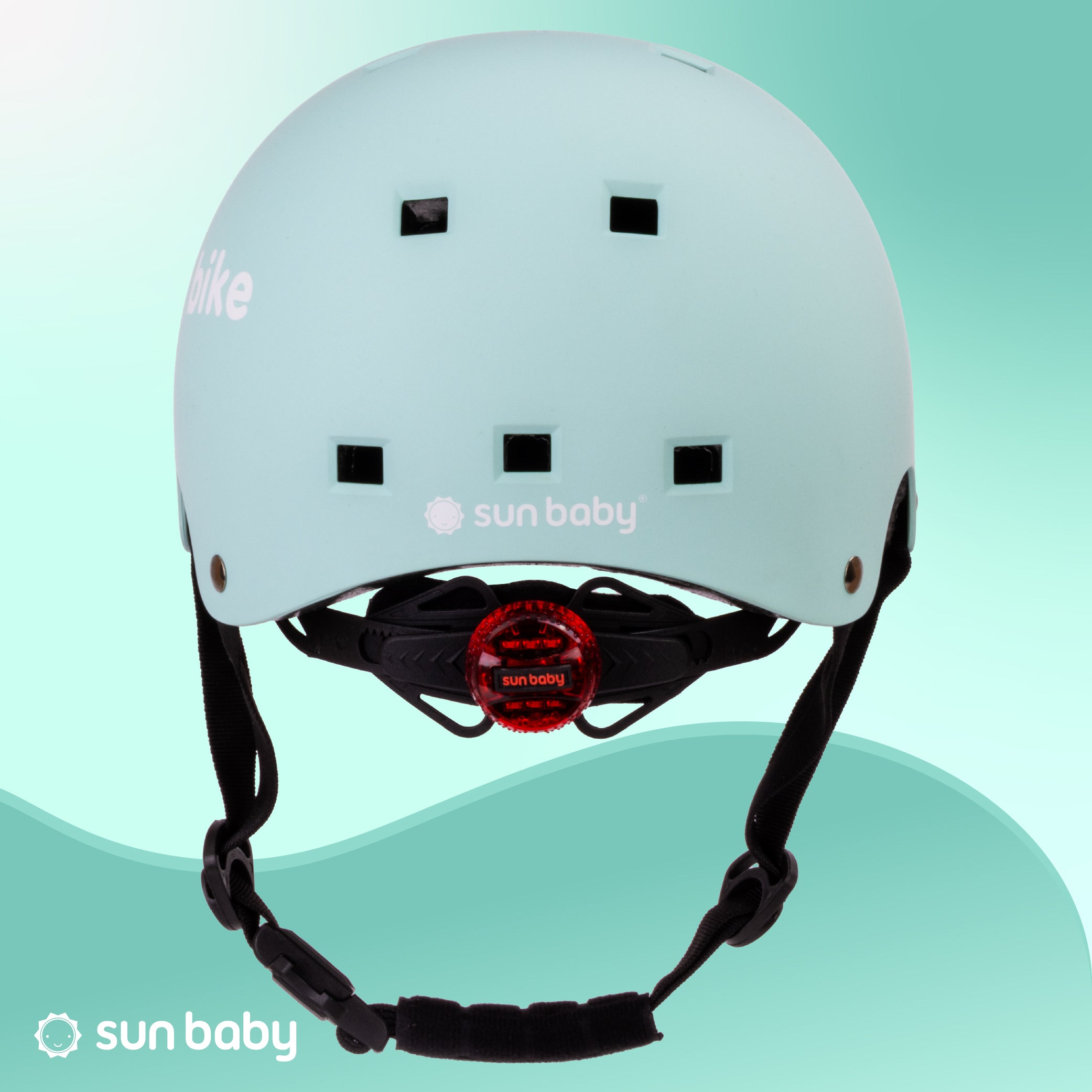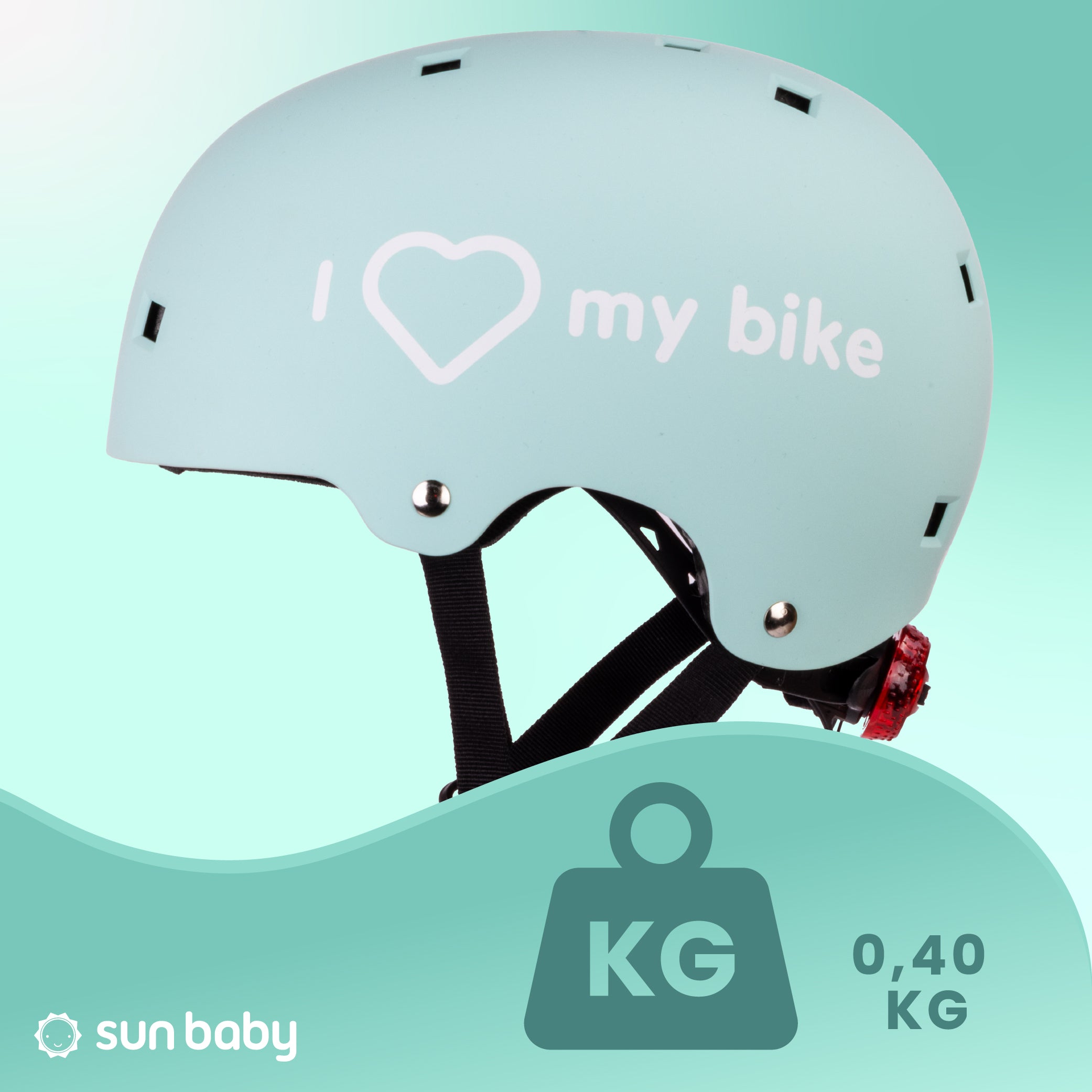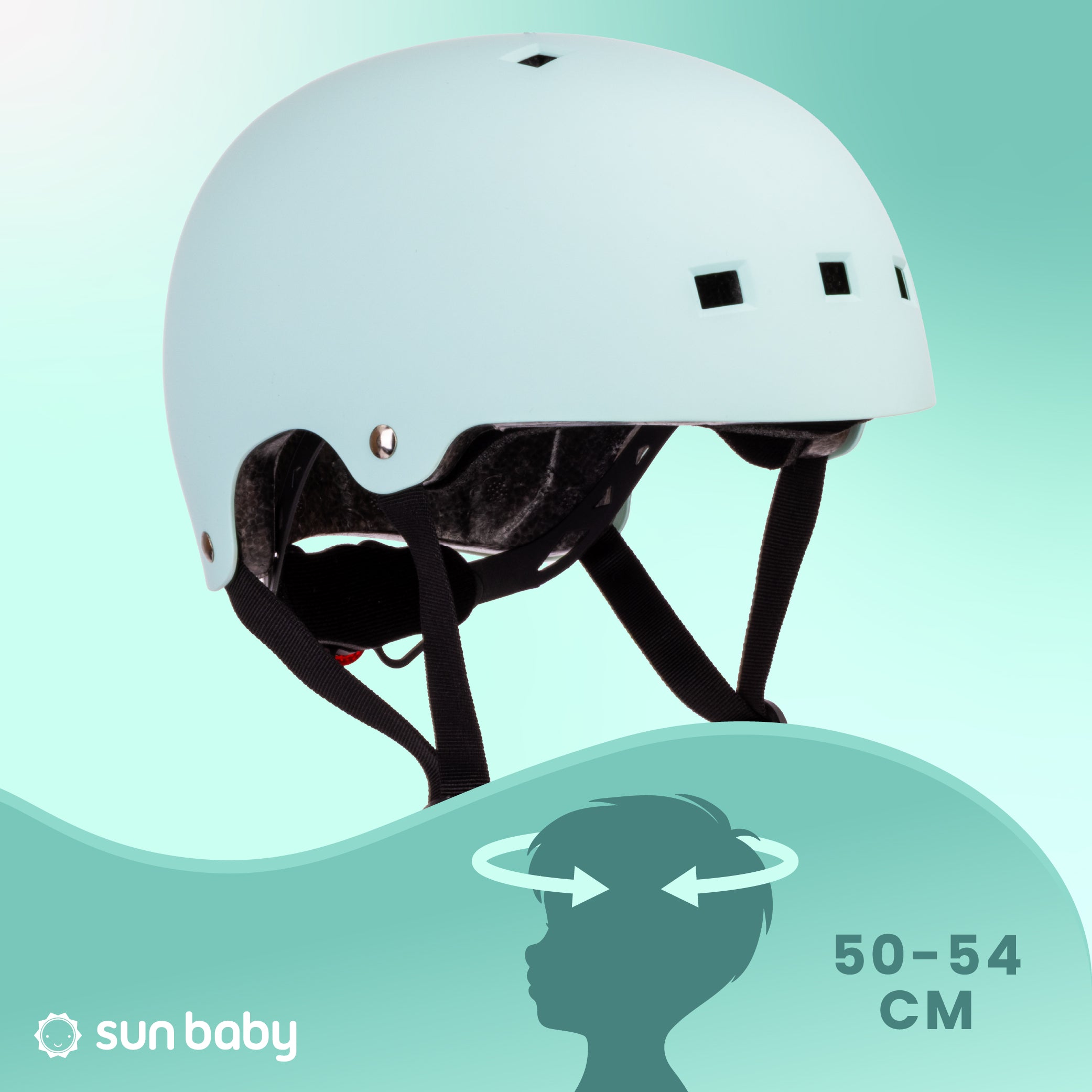 Kask rowerowy dla dzieci Ochronny Regulowany na hulajnogę deskorolkę S 50-54 cm lampka LED klips magnetyczny Miętowy