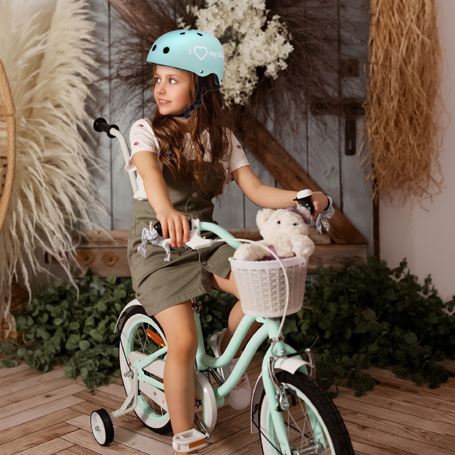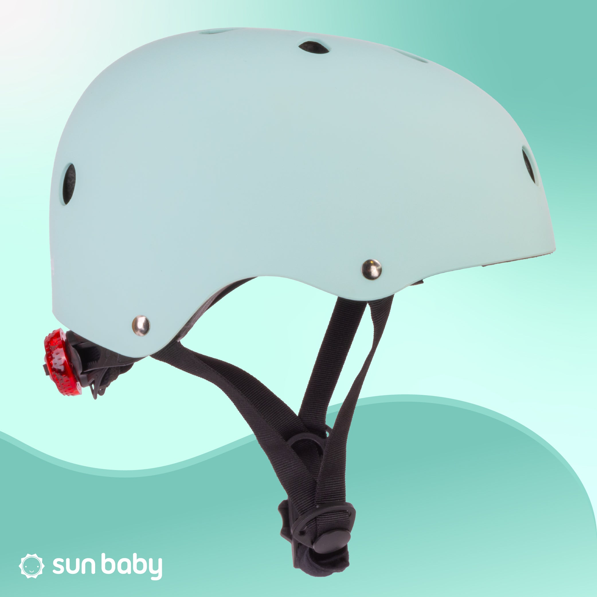 Kask rowerowy dla dzieci na hulajnogę deskorolkę Regulowany Ochronny M lampka LED klips magnetyczny Miętowy