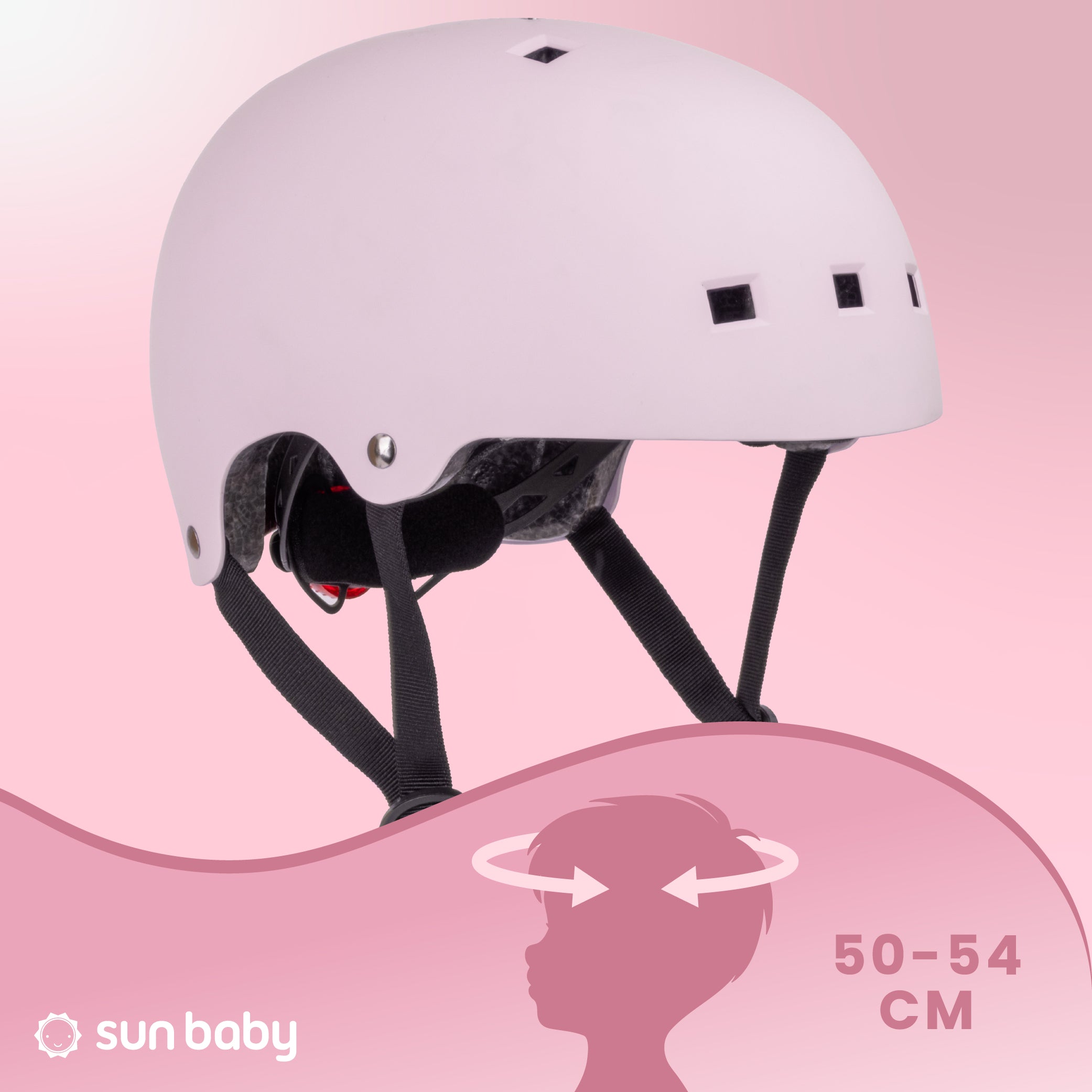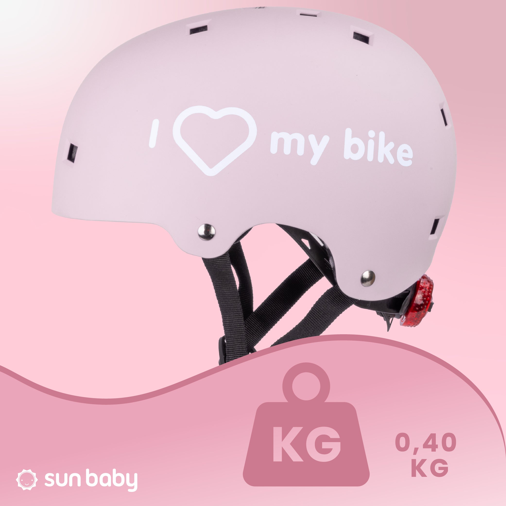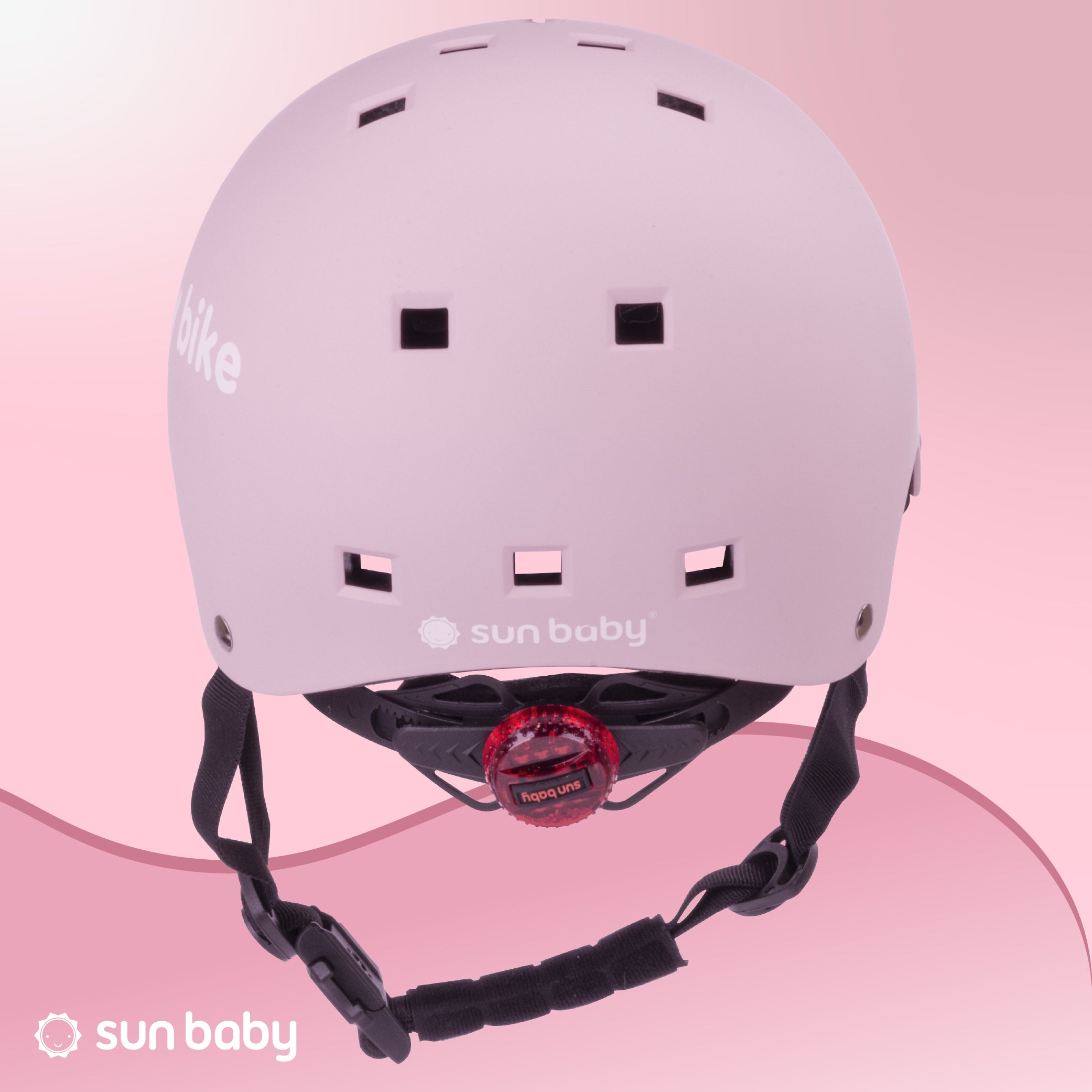 Kask rowerowy dla dzieci Ochronny Regulowany na hulajnogę deskorolkę S 50-54 cm lampka LED klips magnetyczny Różowy