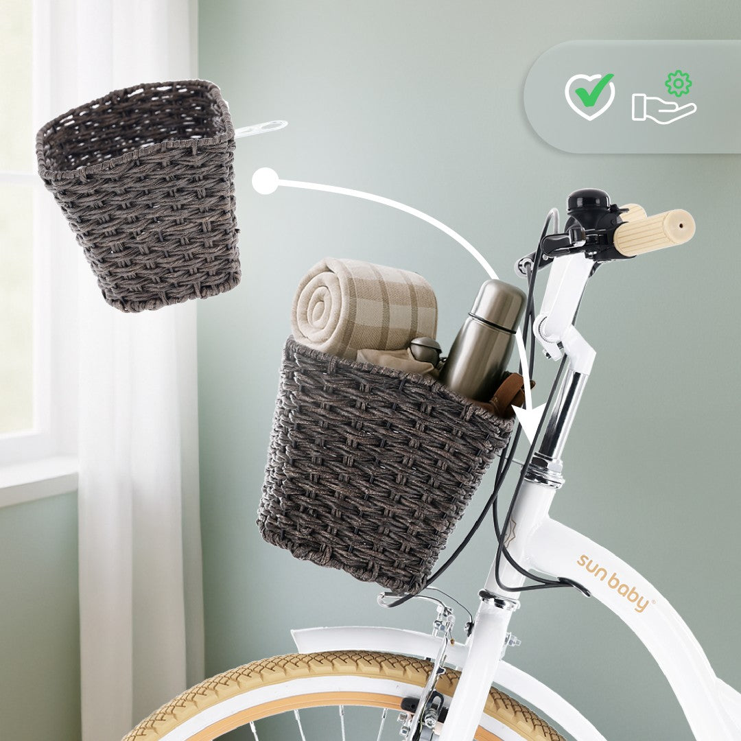 Praktyczny i stylowy koszyk rowerowy zaprojektowany z myślą o młodszych rowerzystach. Wykonany z trwałego tworzywa PP, z solidnym metalowym mocowaniem, które zapewnia stabilność podczas jazdy. Pleciony wygląd dodaje uroku i świetnie komponuje się z rowerami dziecięcymi oraz młodzieżowymi.