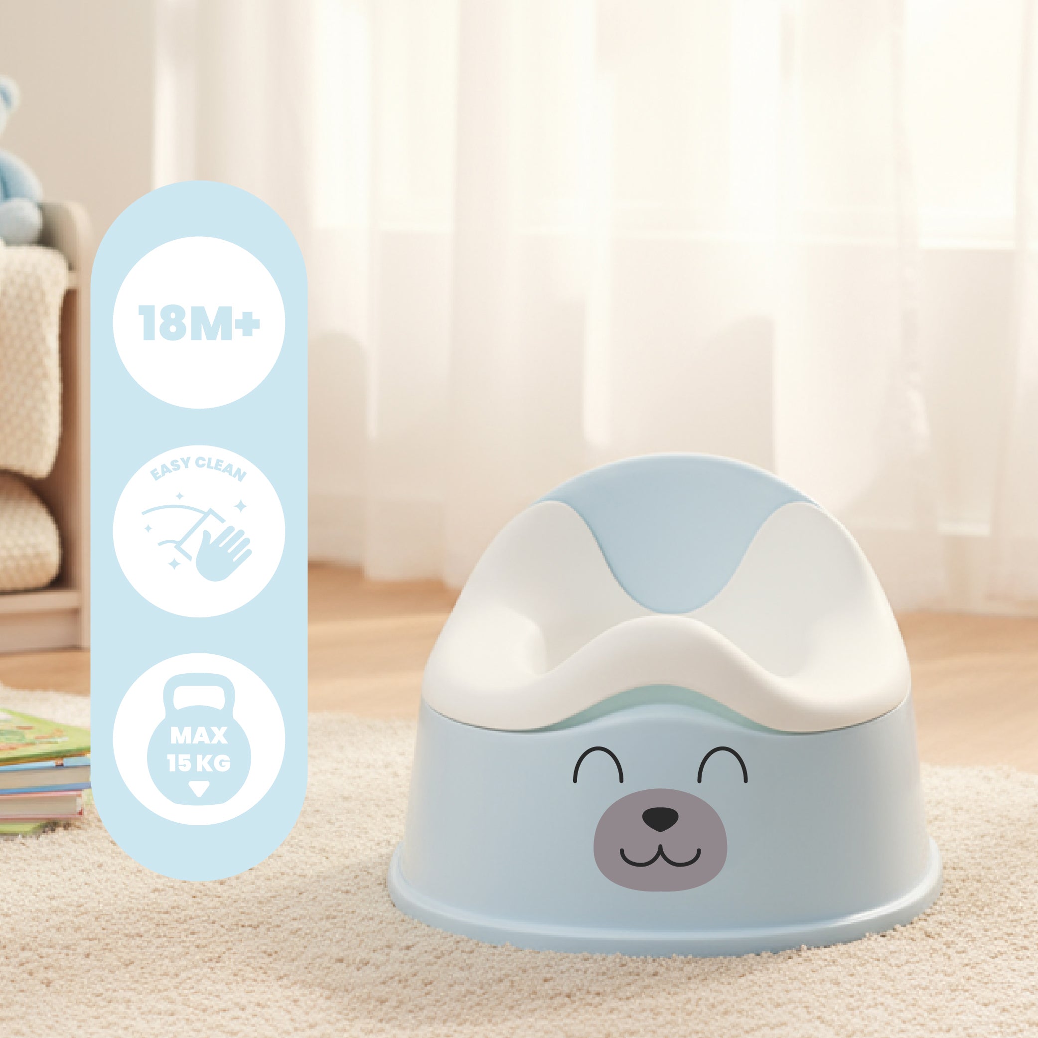 Sun Baby Nocnik dla dzieci antypoślizgowy z wyjmowanym wkładem Stabilny naklejki Miś niebieski biały