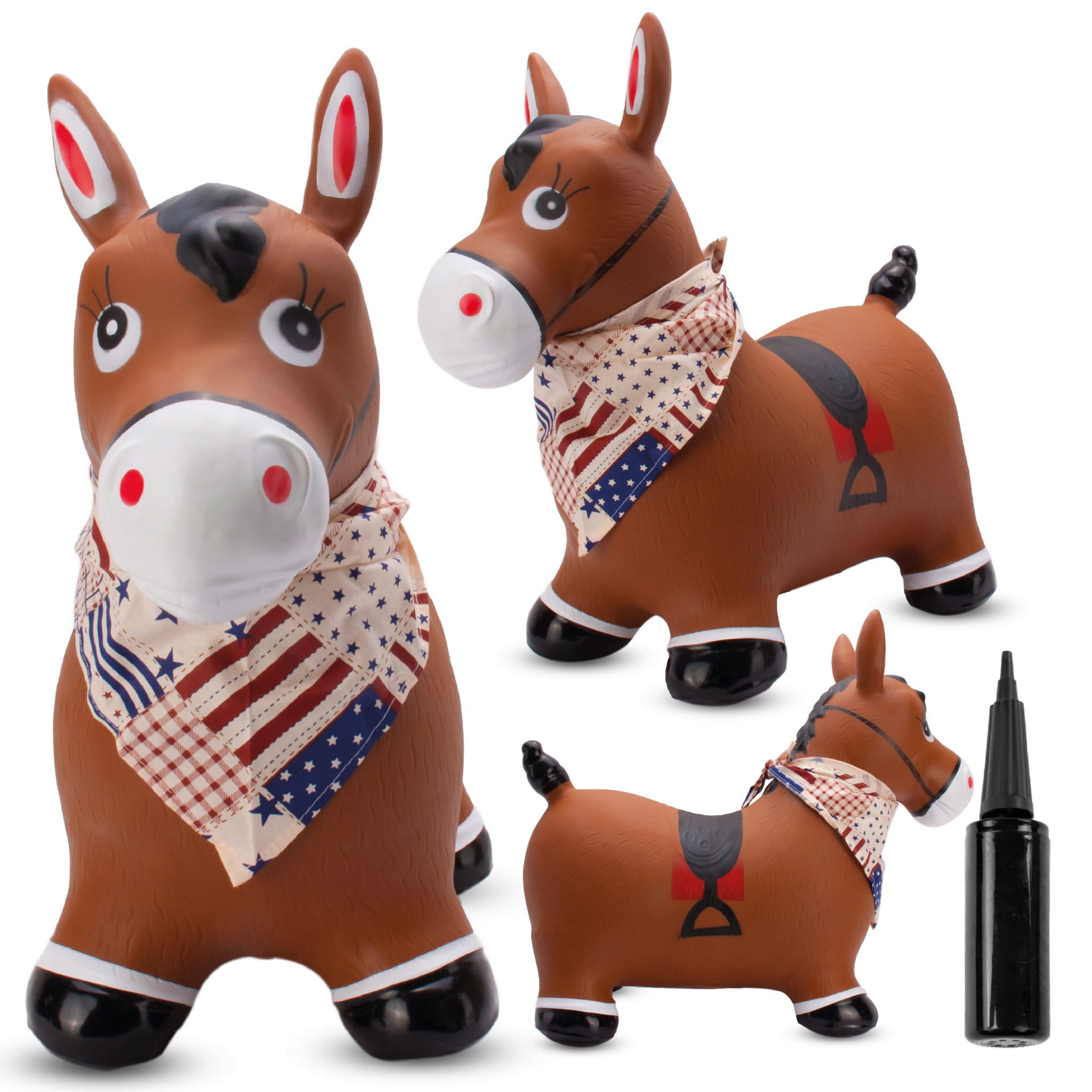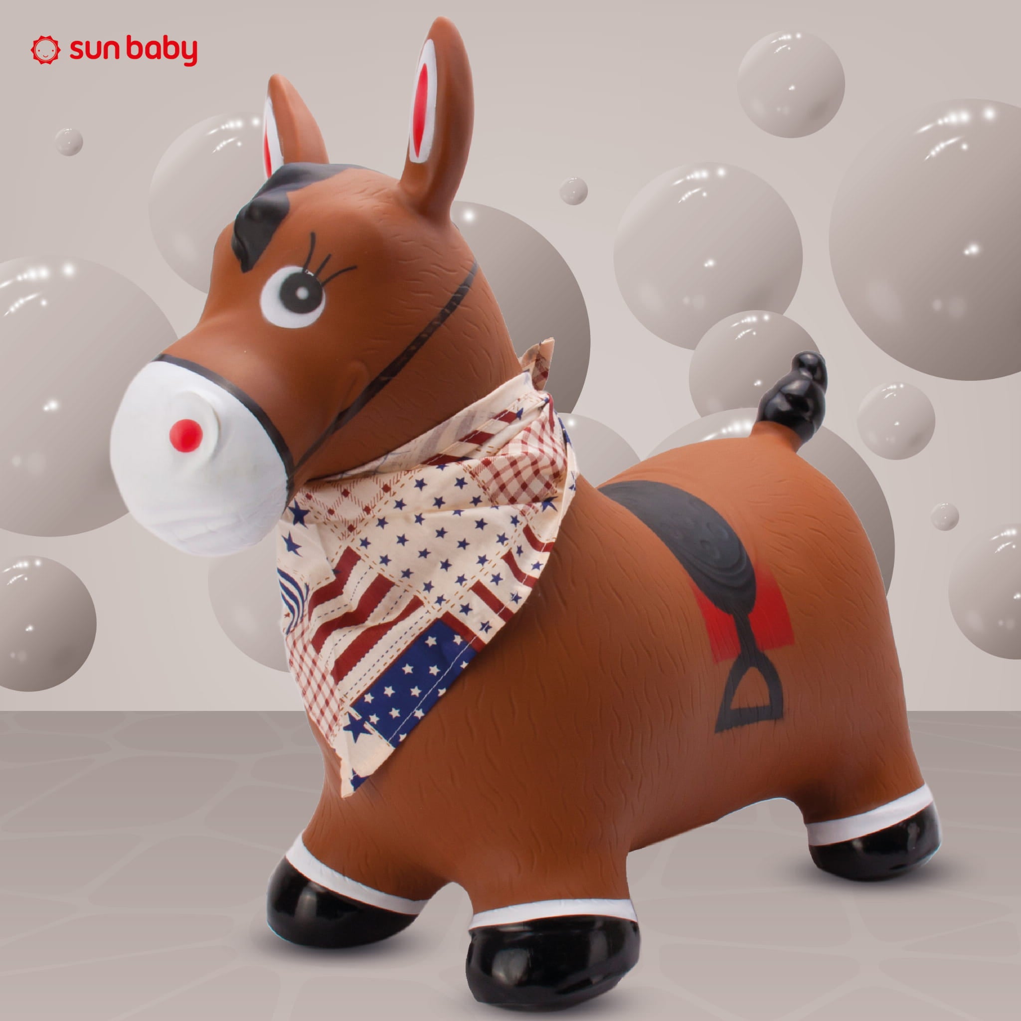 Sun Baby OUTLET Skoczek dla dzieci do skakania z pompką Konik brązowy z bandaną