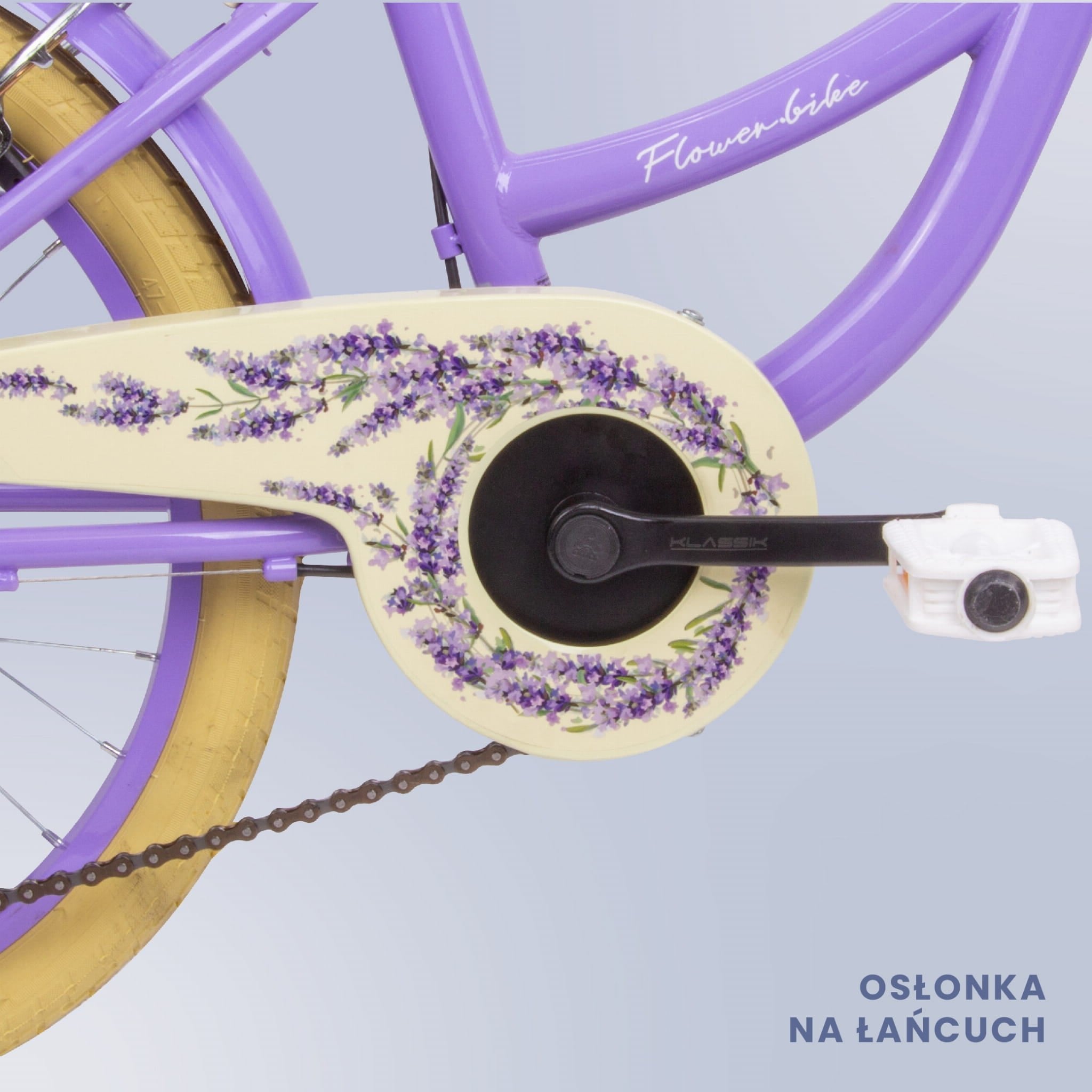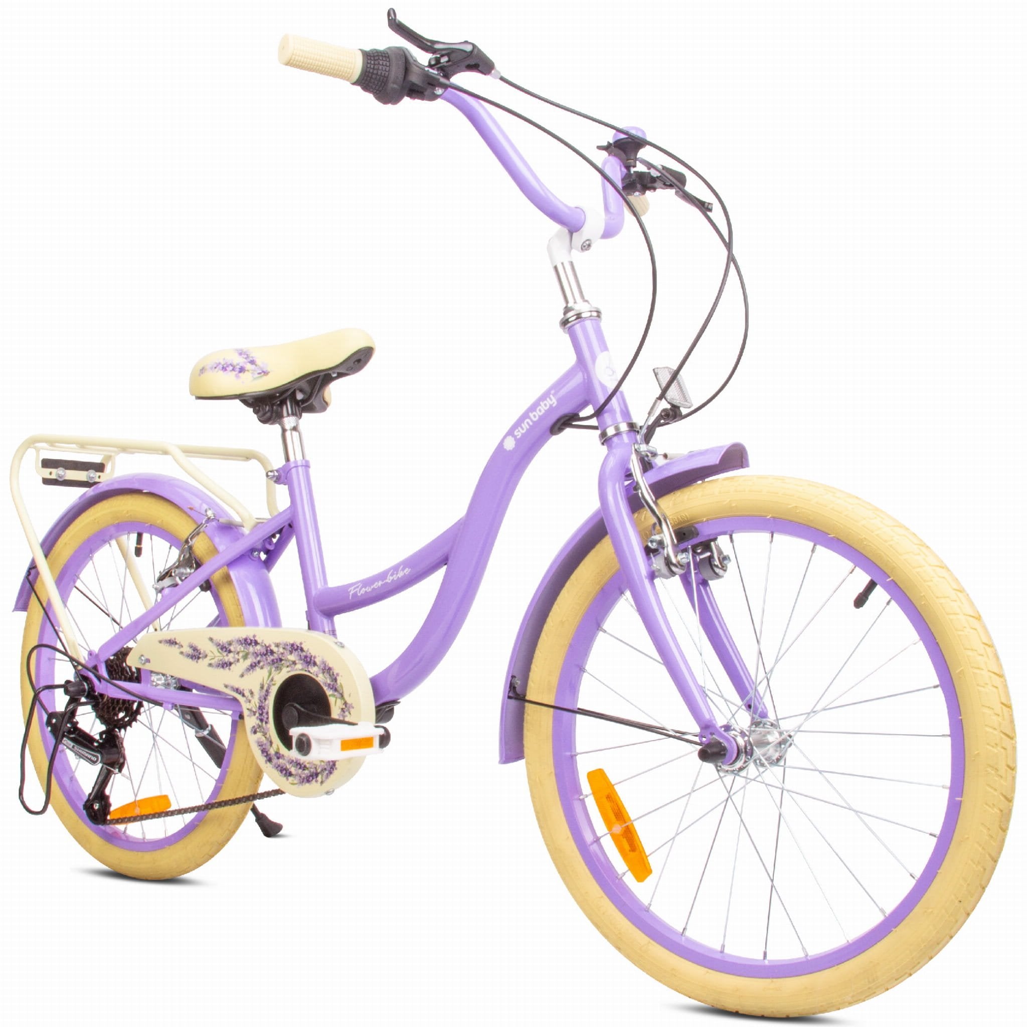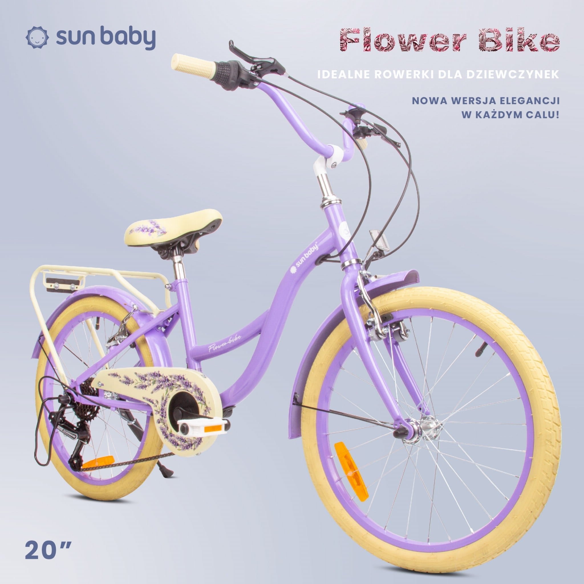 Sun Baby Rower dziecięcy 20 cali dla dziewczynki Flower Bike Lawendowy – Shimano 6 biegów, bagażnik, błotniki, osłona łańcucha