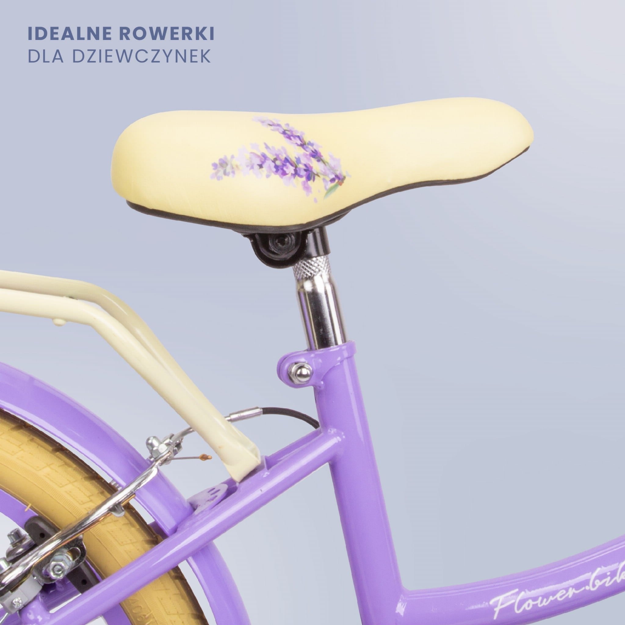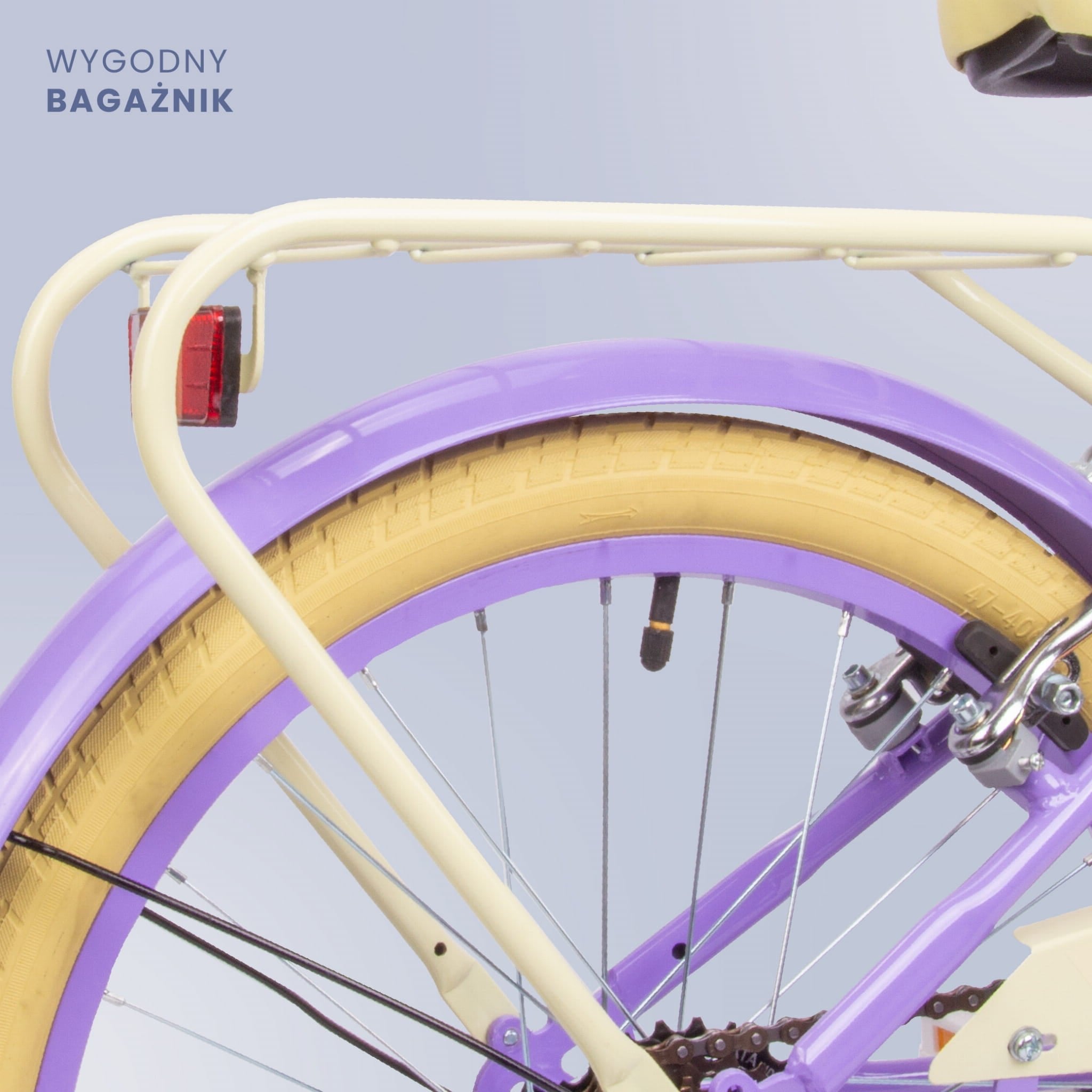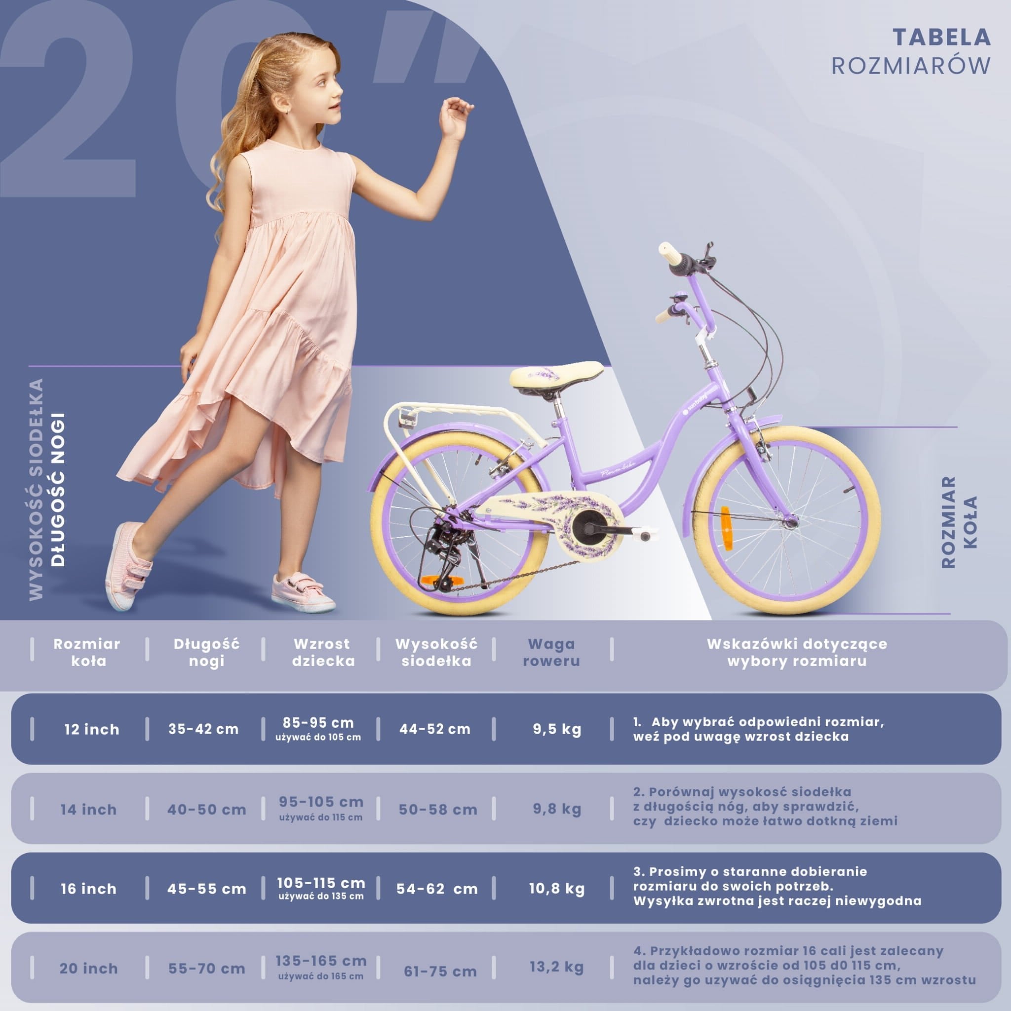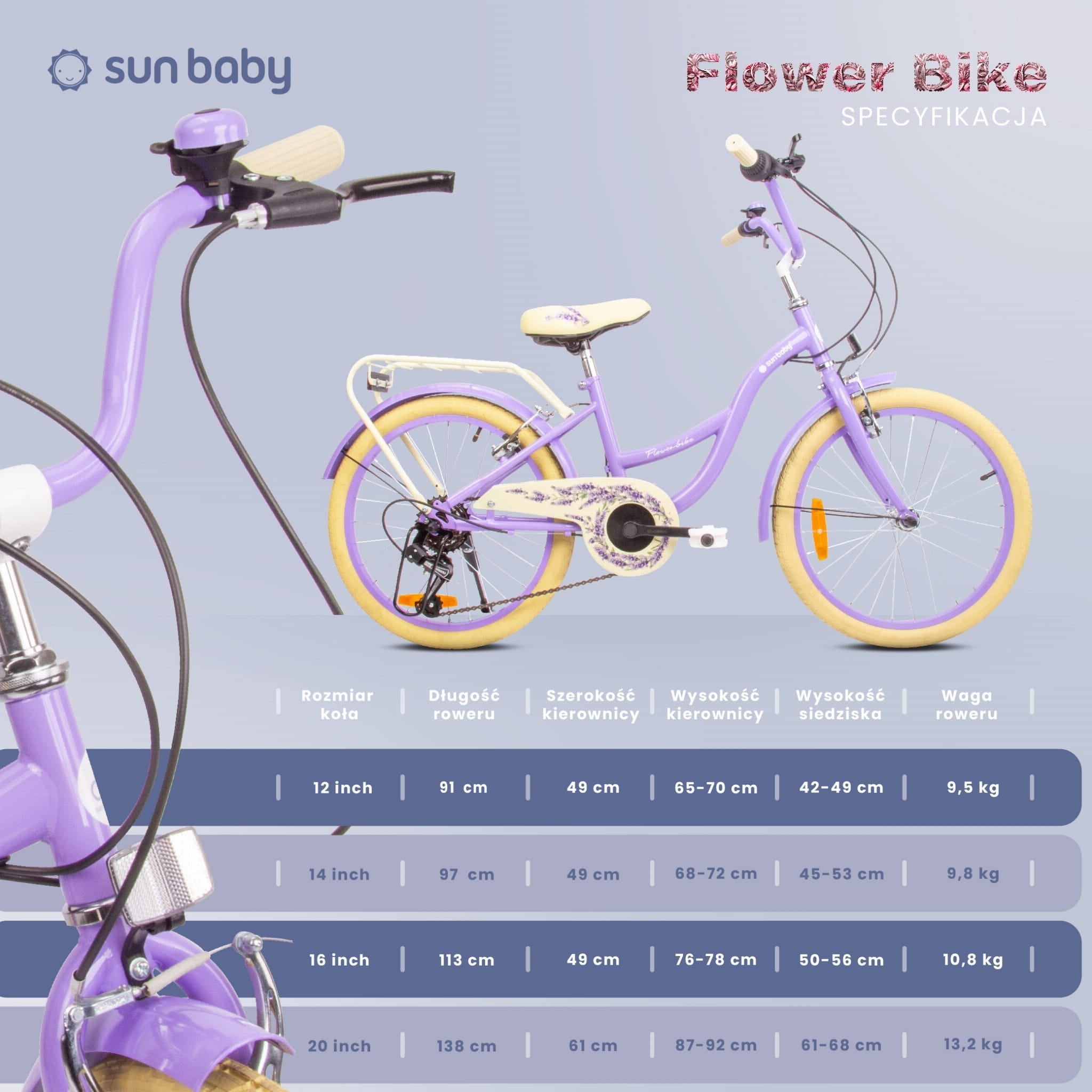 Sun Baby Rower dziecięcy 20 cali dla dziewczynki Flower Bike Lawendowy – Shimano 6 biegów, bagażnik, błotniki, osłona łańcucha