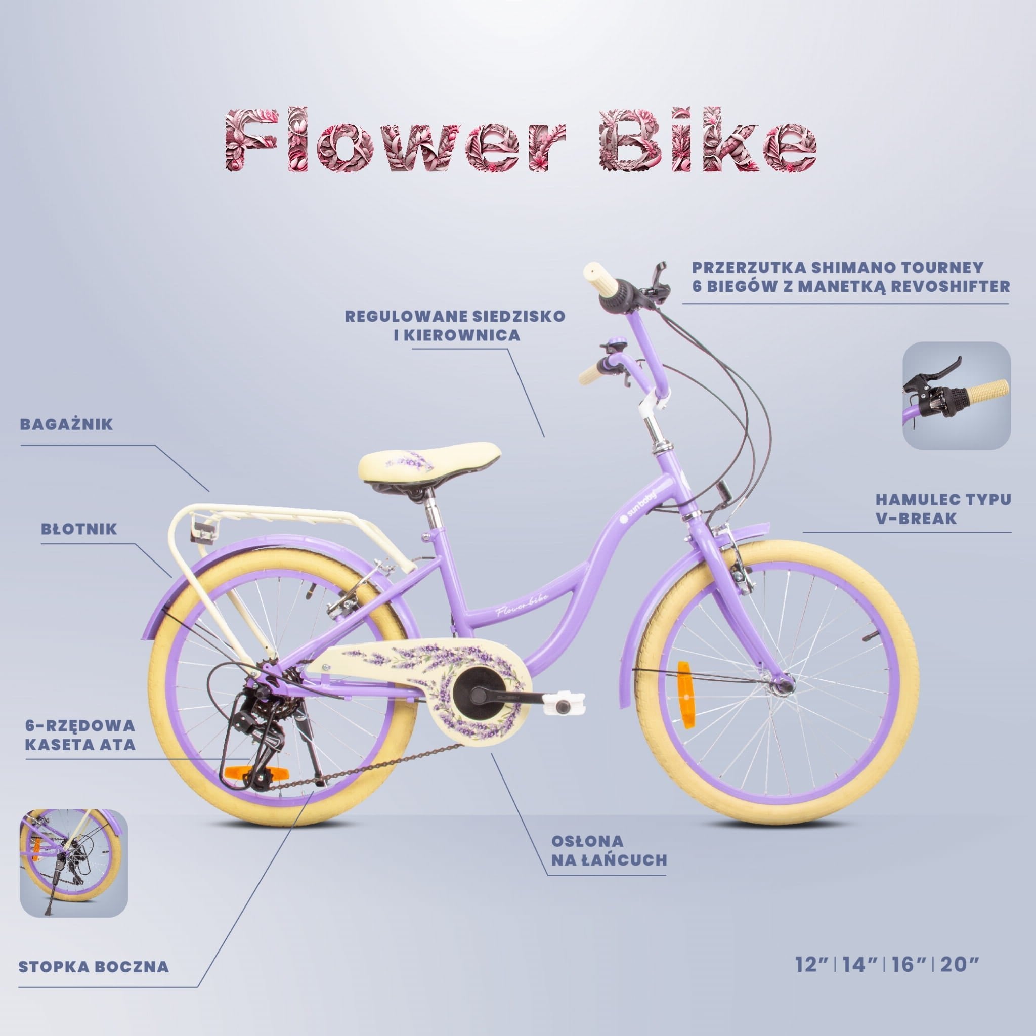 Rower 20 cali dla dziewczynki dziecięcy Shimano 6 biegów Flower Bike lawendowy Sun Baby