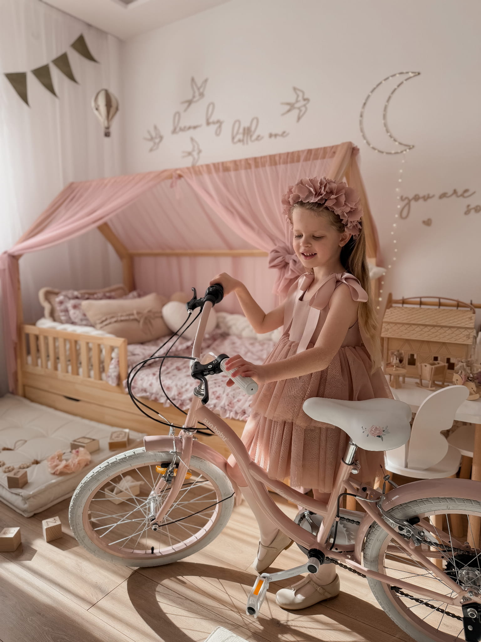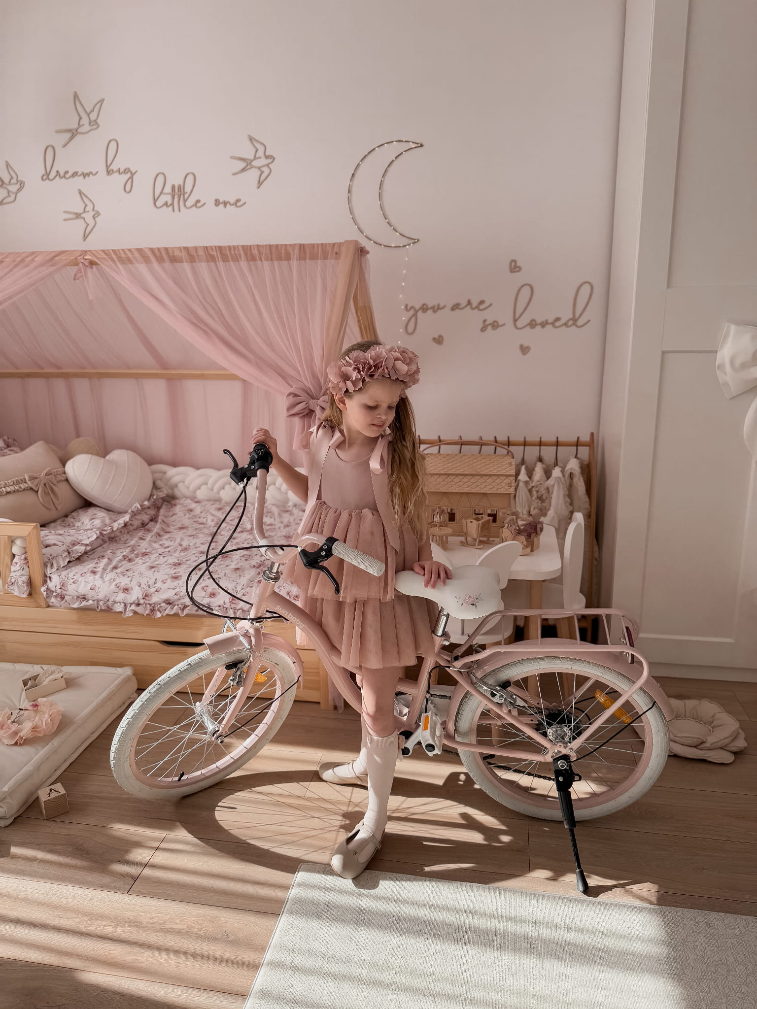 Stonowana kolorystyka i klasyczna linia ramy rowerka Heart Bike nadają mu wyjątkowy, ponadczasowy wygląd.