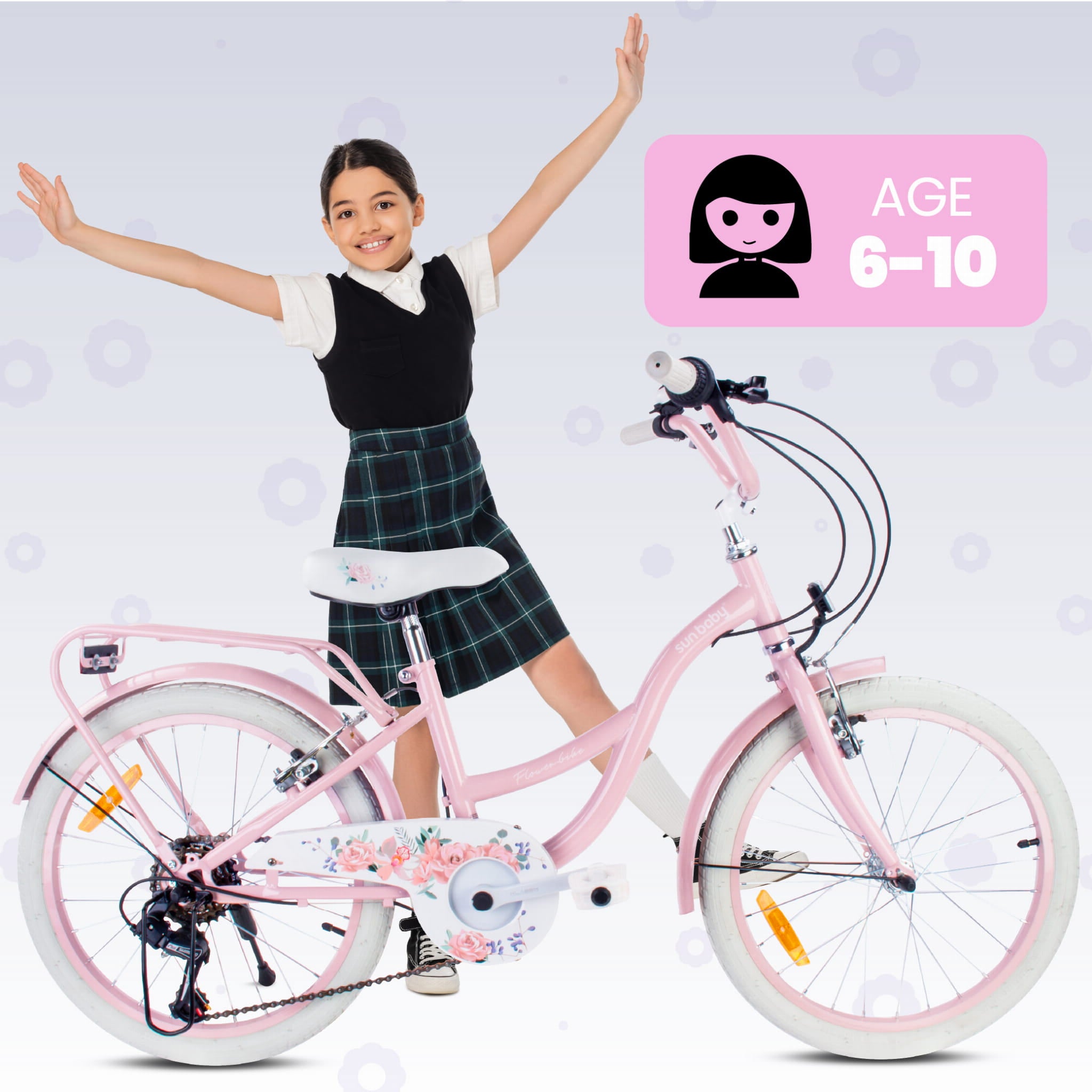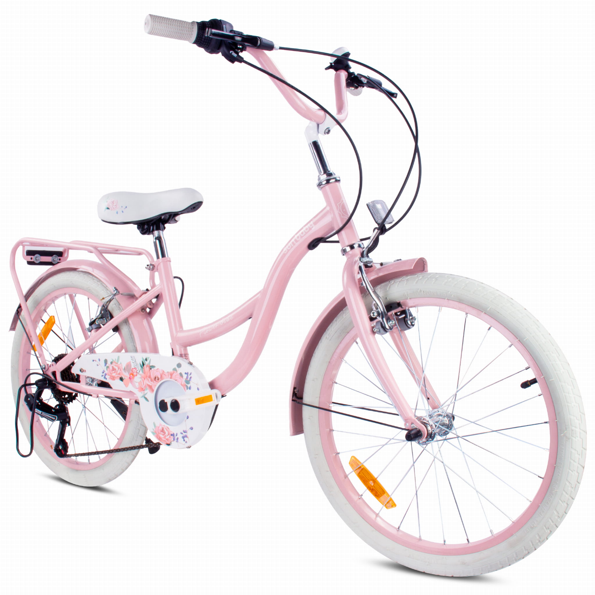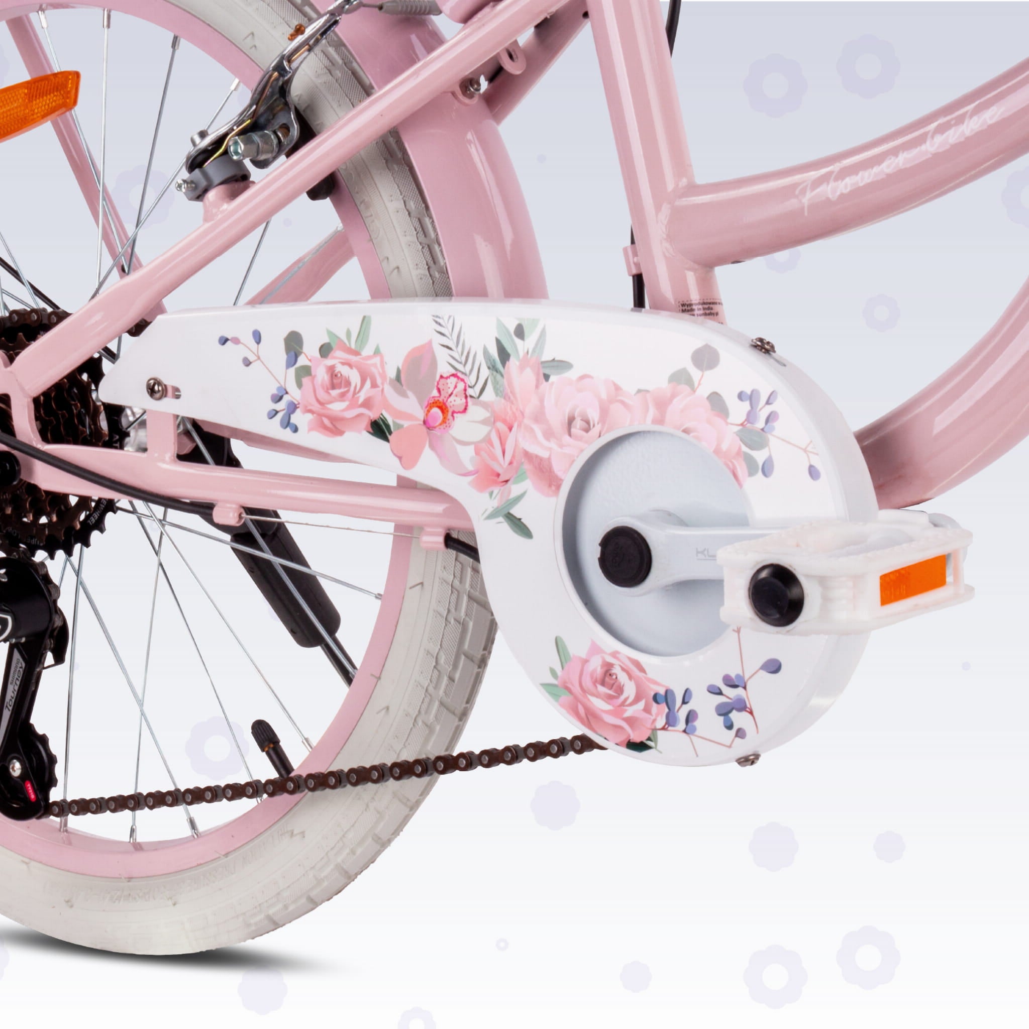 Rower 20 cali dla dziewczynki dziecięcy Shimano 6 biegów Flower Bike różowy Sun Baby