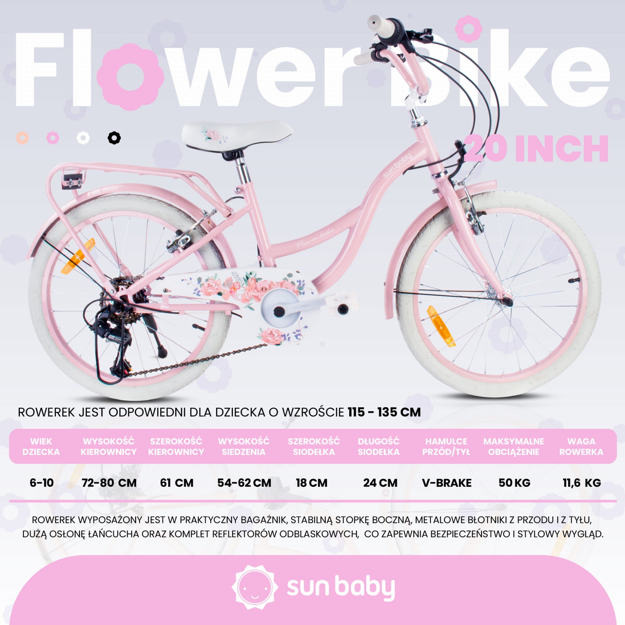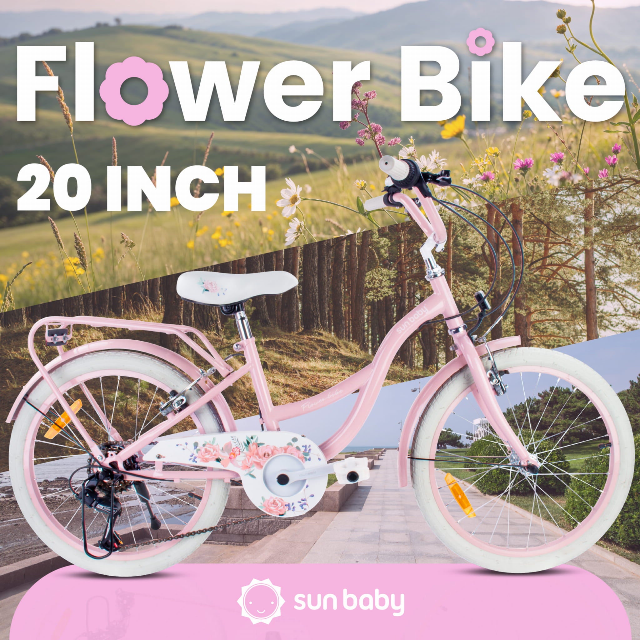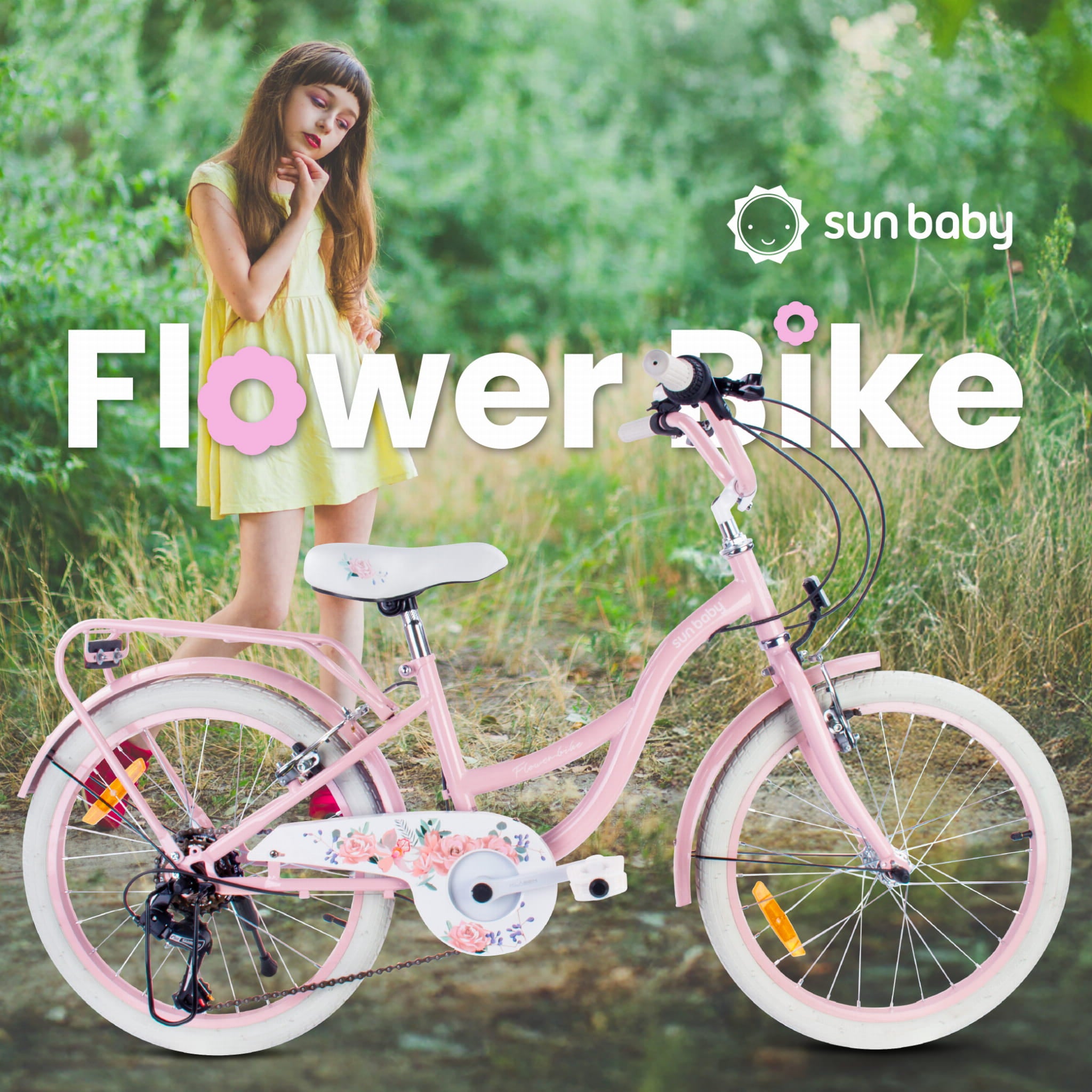 Sun Baby Rower 20 cali dla dziewczynki dziecięcy Shimano 6 biegów Flower Bike różowy