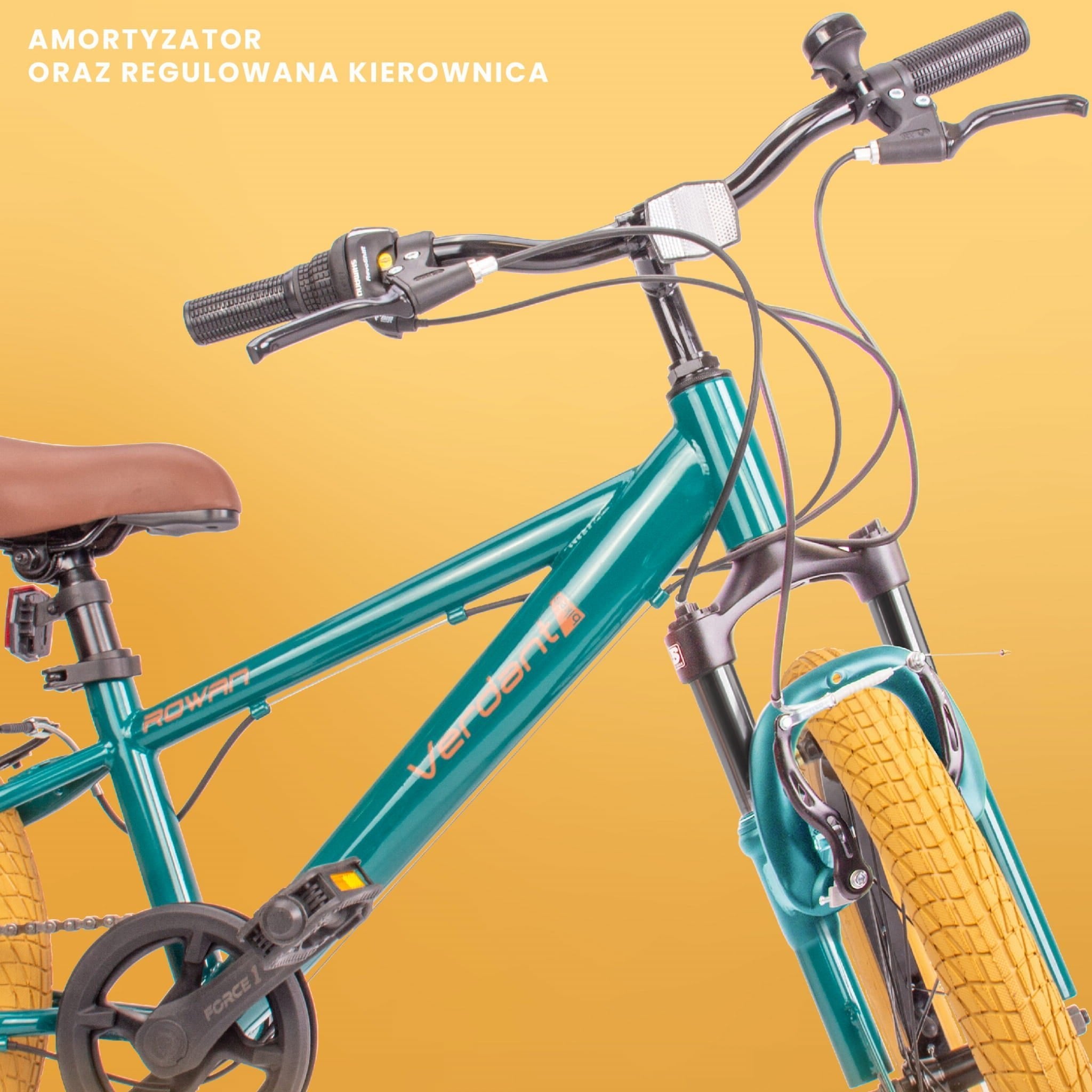 Rower 20 cali dziecięcy górski z amortyzatorem SHOX MTB Shimano 6 biegów Verdant Rowan