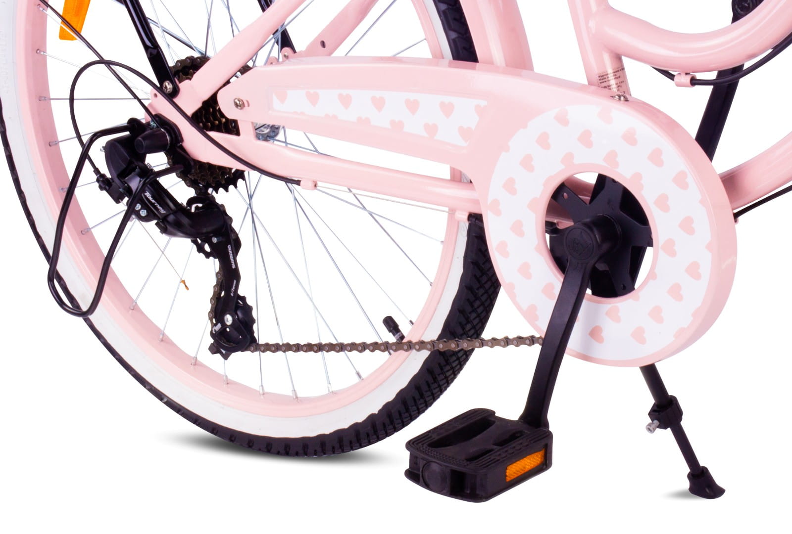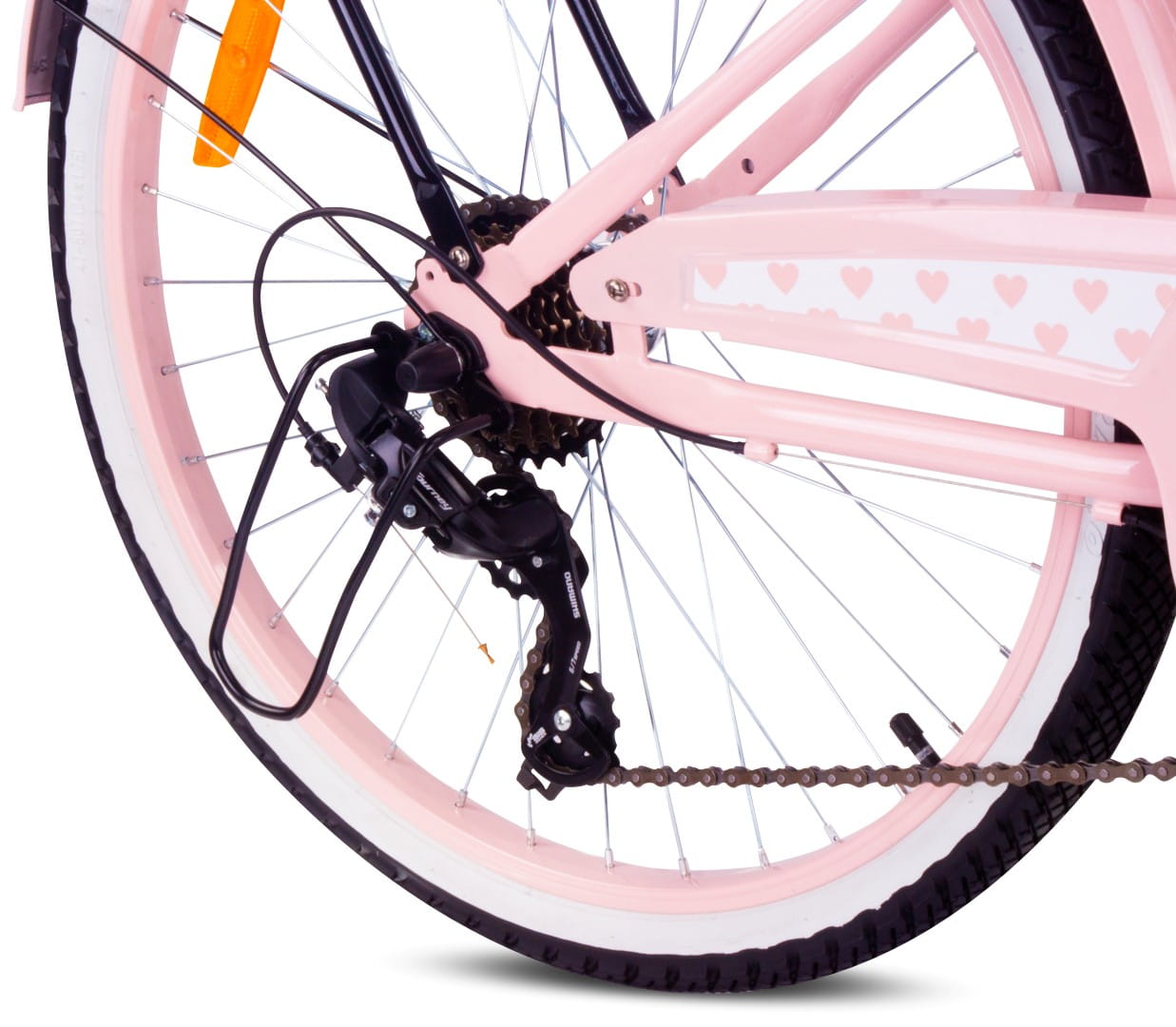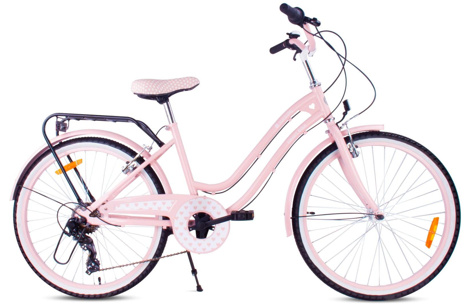 Rower 24 cale dla dziewczynki miejski na komunię Shimano 7 biegów Heart Bike różowy – Produkt II Kategorii