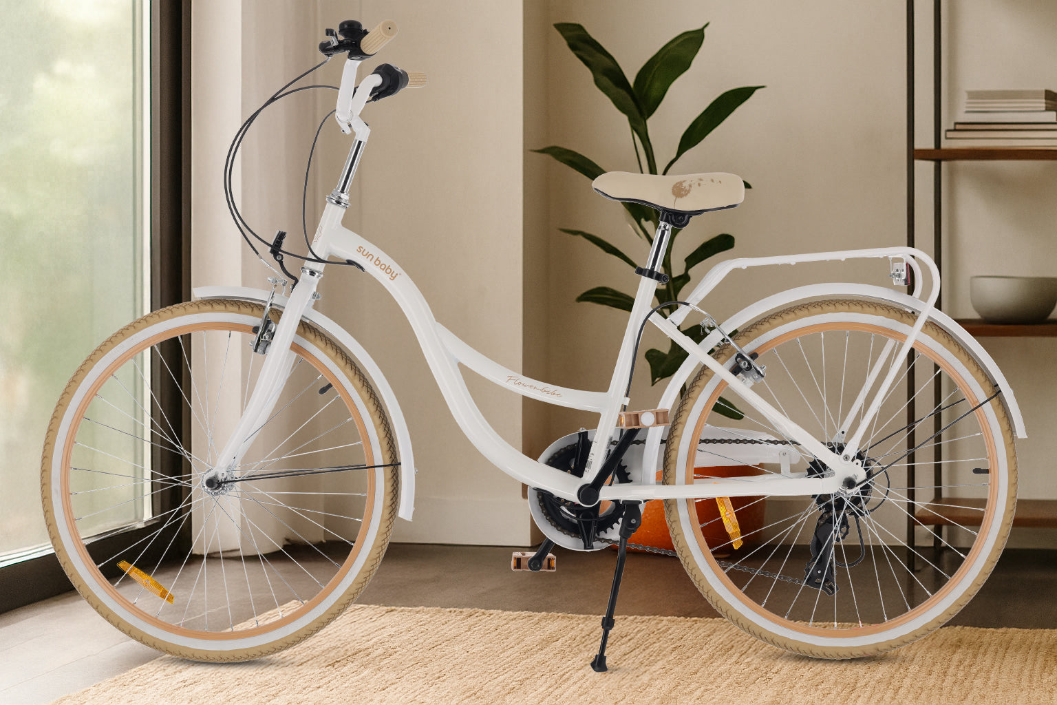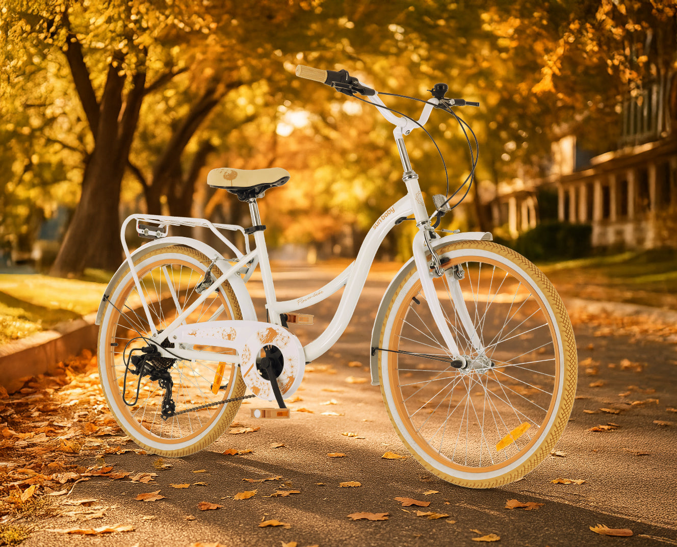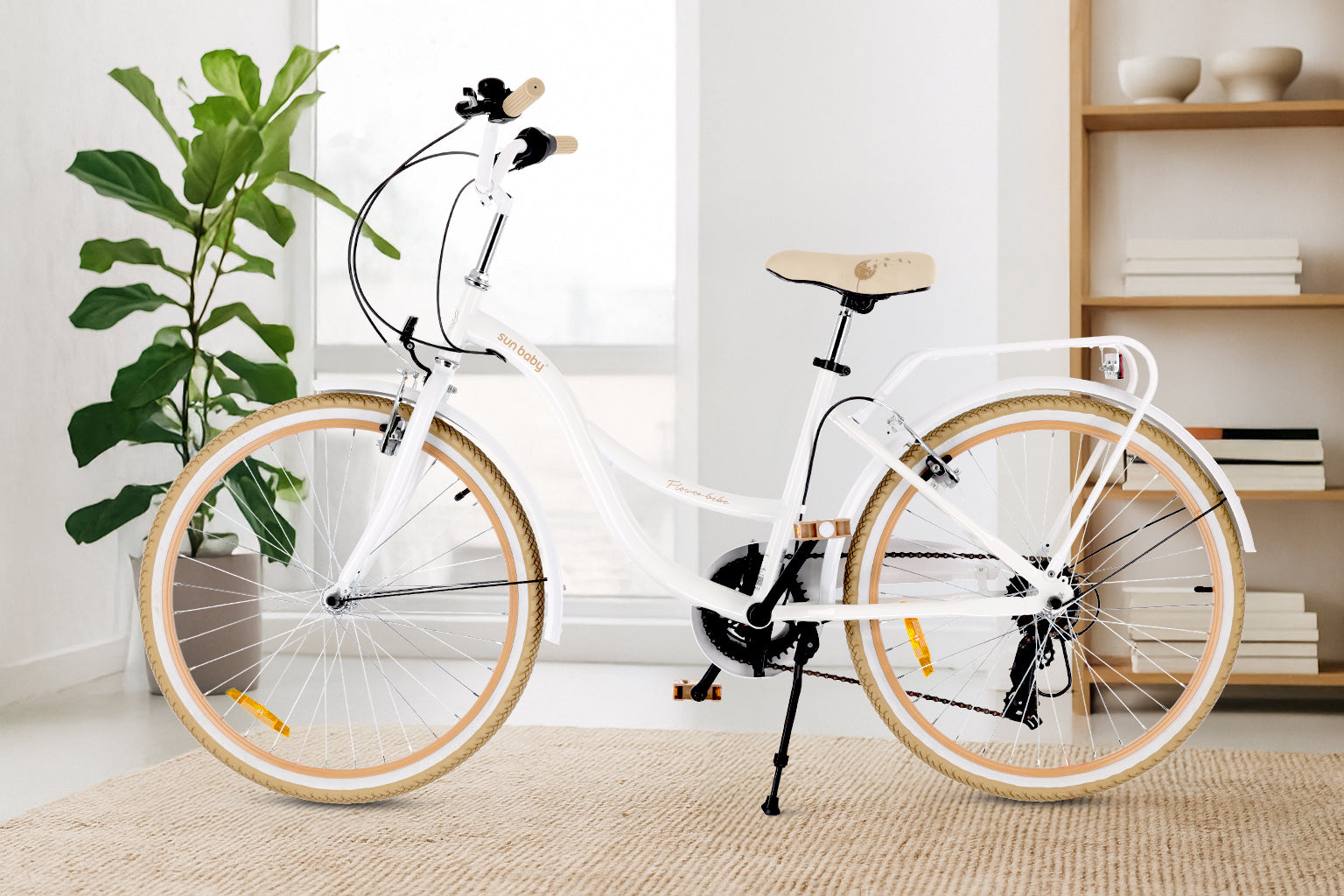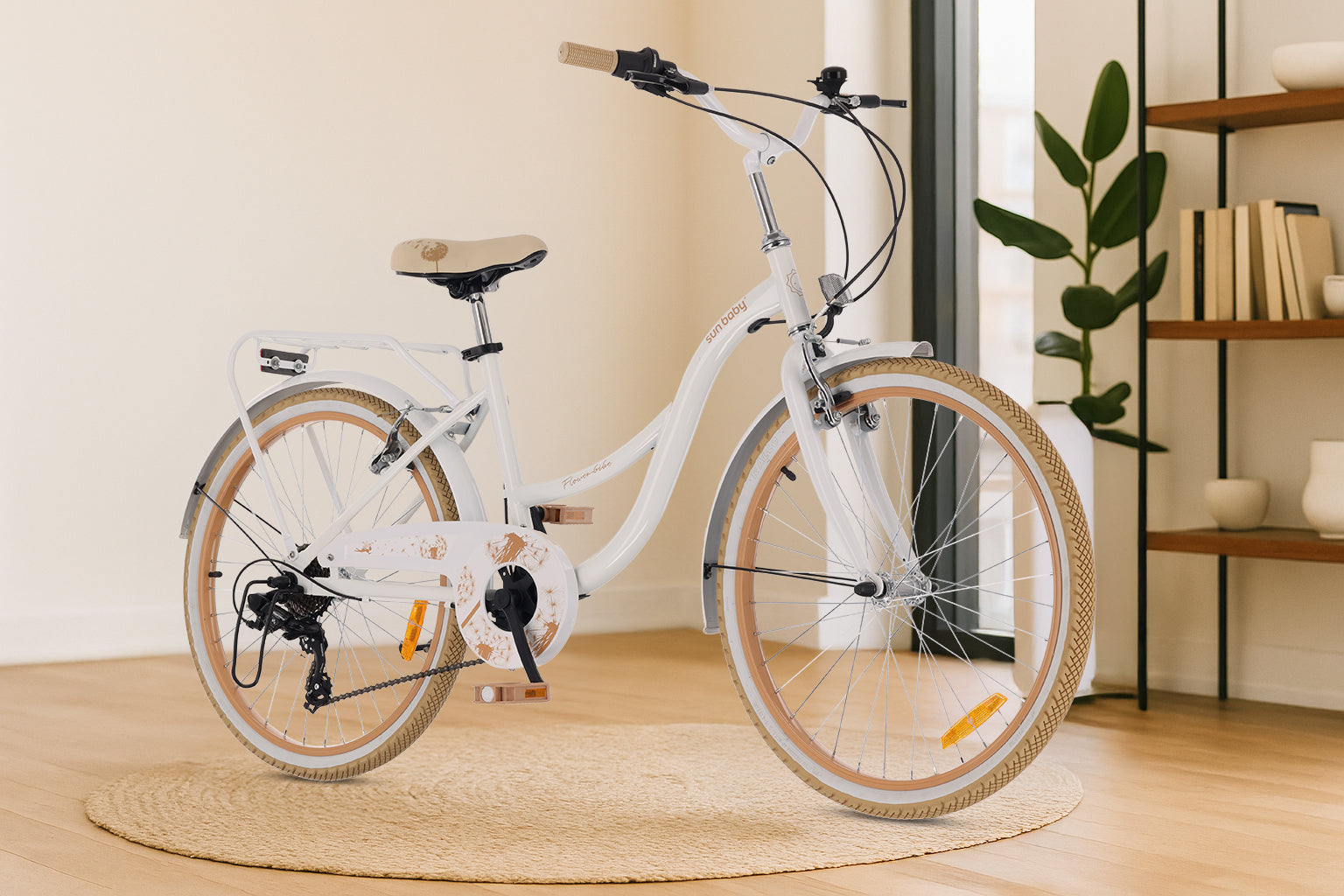 Sun Baby Rower 24 cale dla dziewczynki miejski na komunię Shimano 7 biegów Dmuchawiec biało beżowy