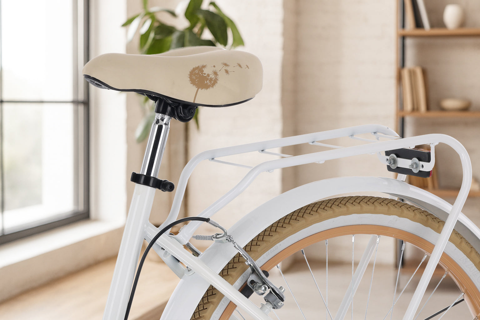 - Wyposażenie: błotniki, osłona łańcucha, odblaski, dzwonek, bagażnik, stopka boczna, przerzutka Shimano