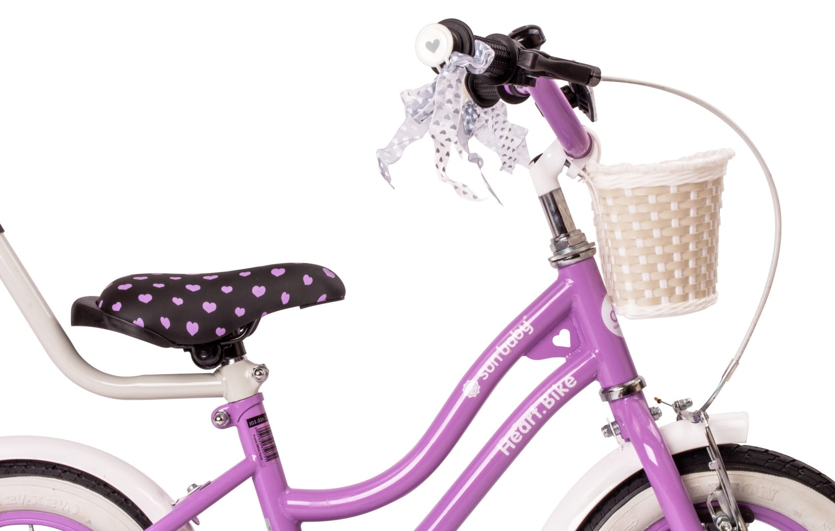 Heart Bike – rower dla dziecka z bocznymi kółkami, pchaczem, błotnikami, koszyczkiem i dzwonkiem. Wyposażony w osłonę na łańcuch, hamulec nożny i hamulec V-brake w zestawie.