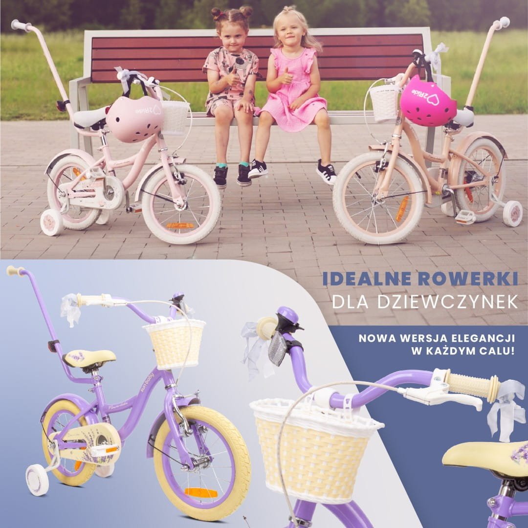 ✔️ rowerek zawiera: hamulce V-brake przedniego koła, metalowe błotniki przód i tył, duża osłona łańcucha, reflektory odblaskowe na szprychach, prowadnik, kółka boczne, dzwonek, przedni koszyk