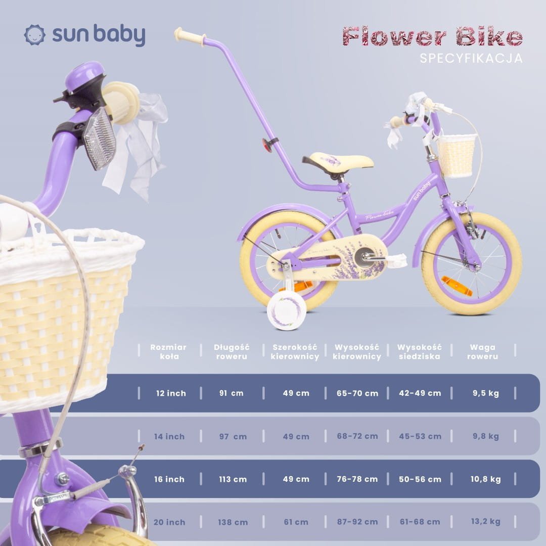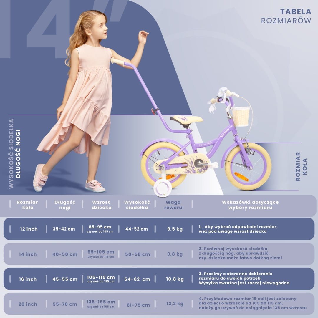 Rower dla dziewczynki 14 cali Pchacz kółka boczne Flower Bike lawendowy