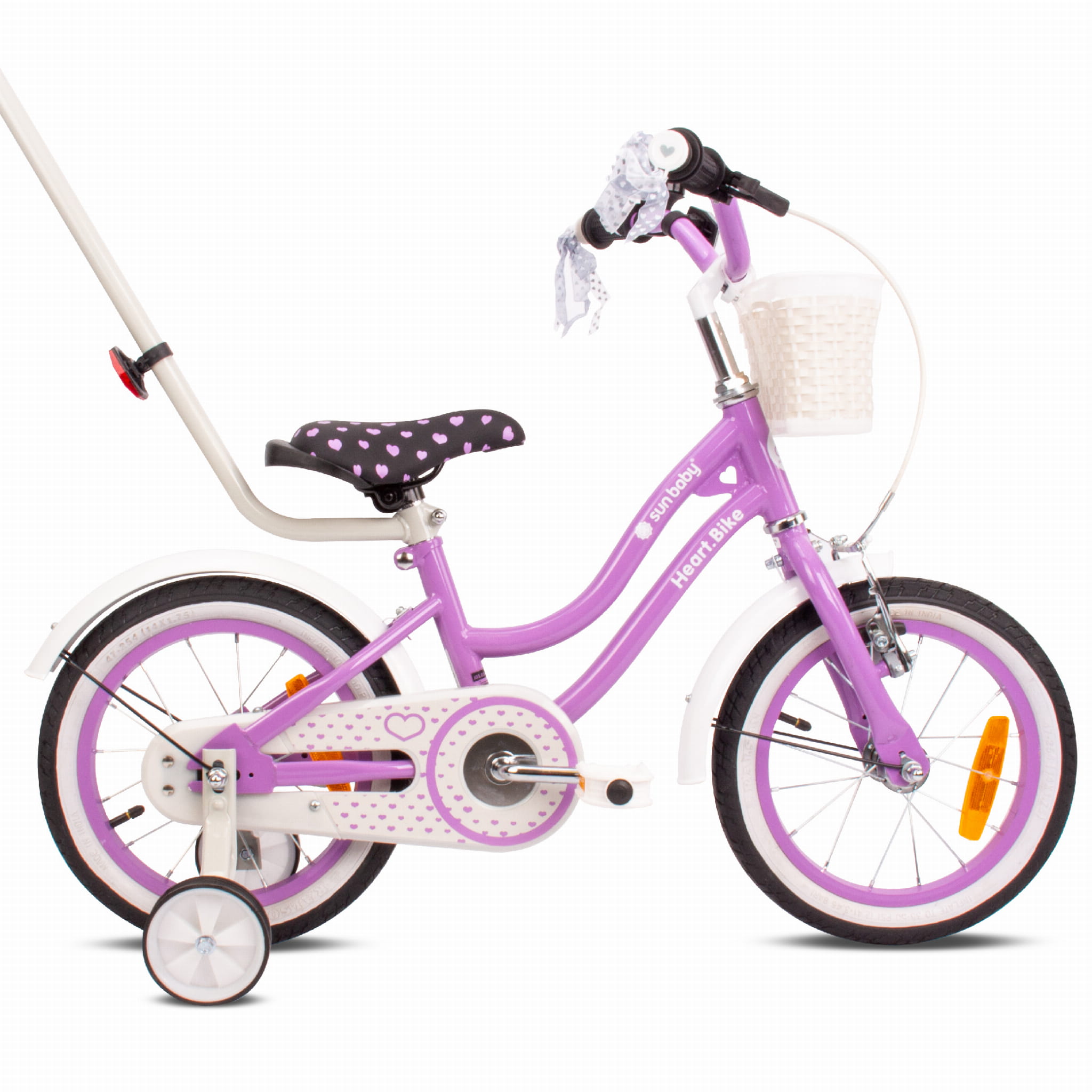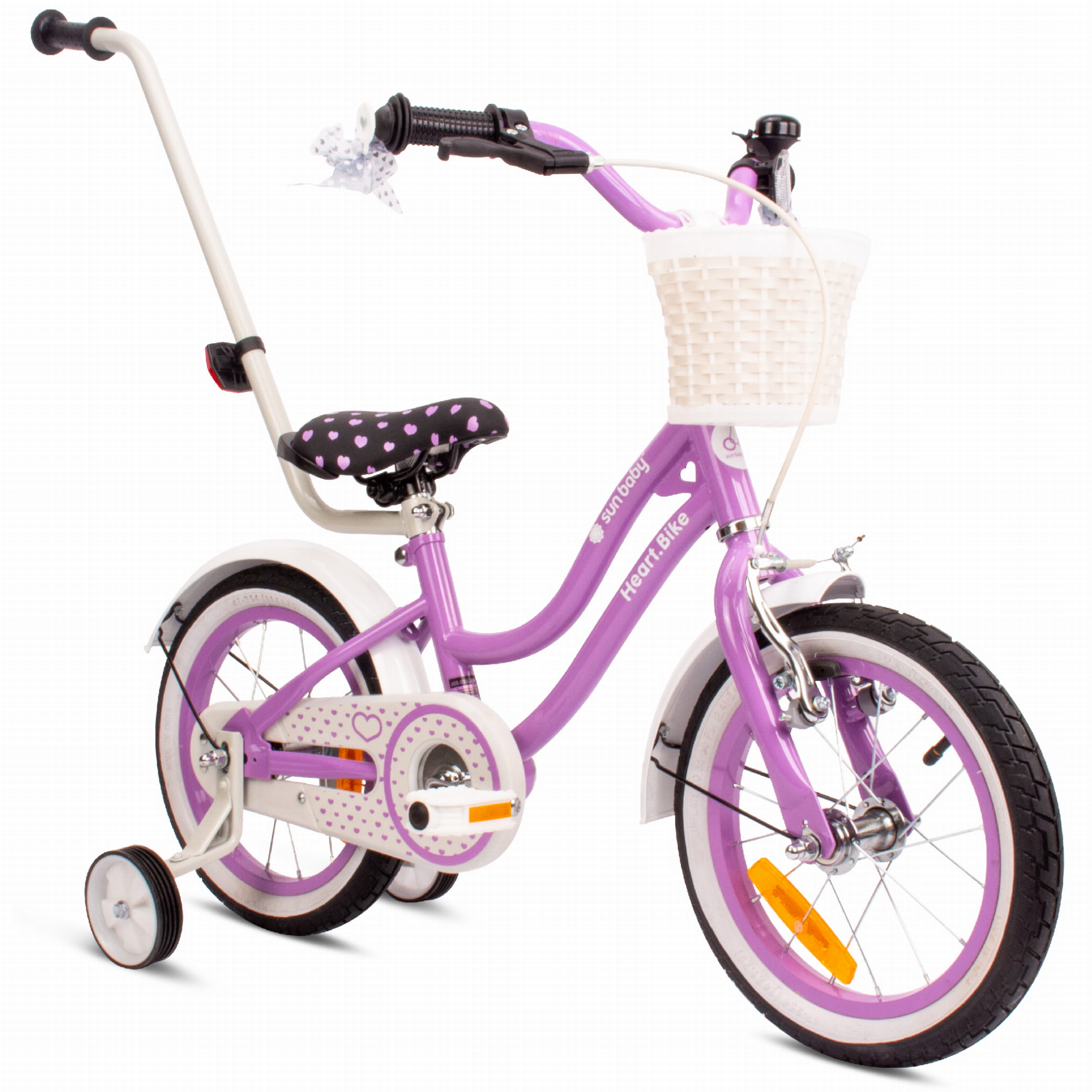 Sun Baby Rower dla dziewczynki 14 cali Heart Bike fioletowy z pchaczem i kółkami bocznymi