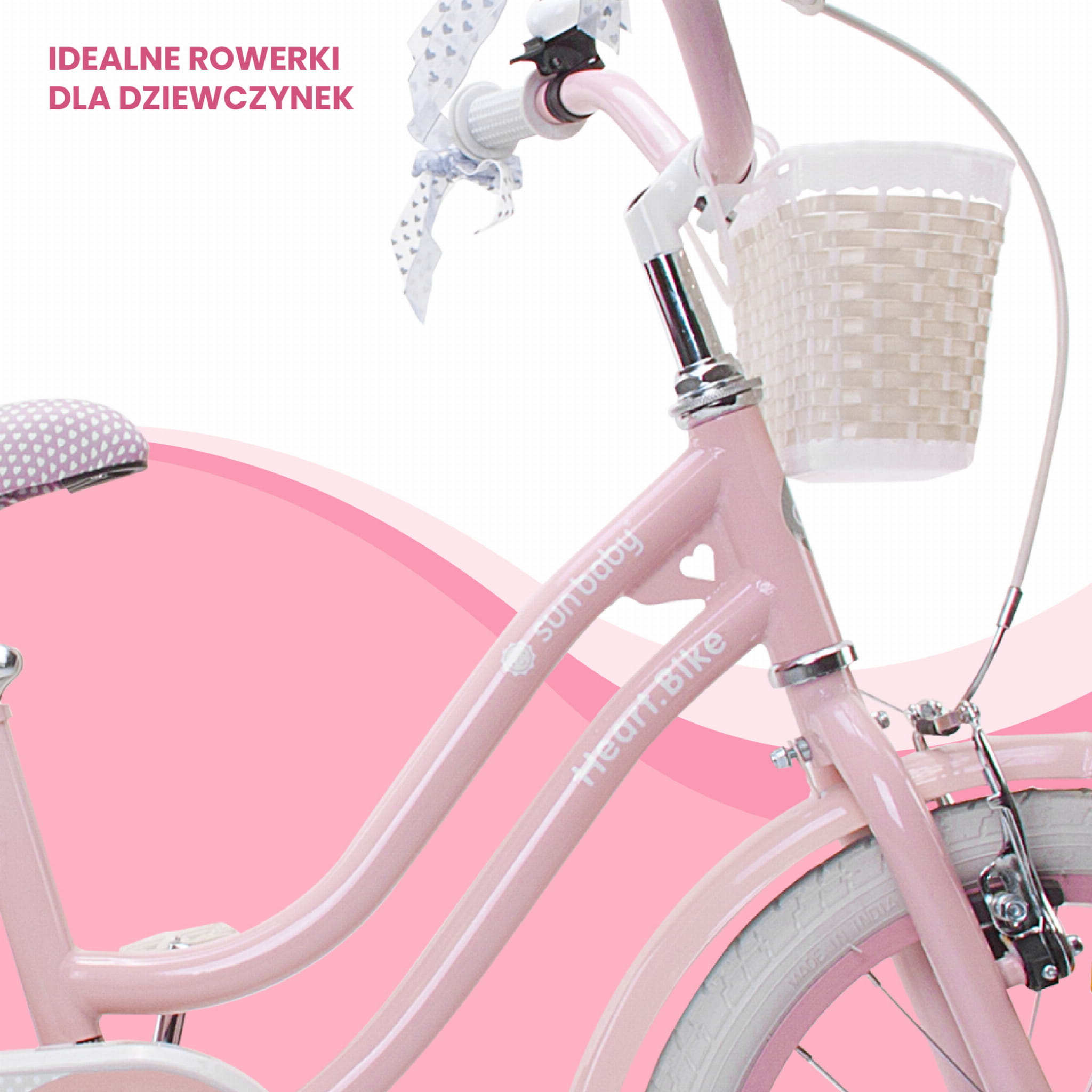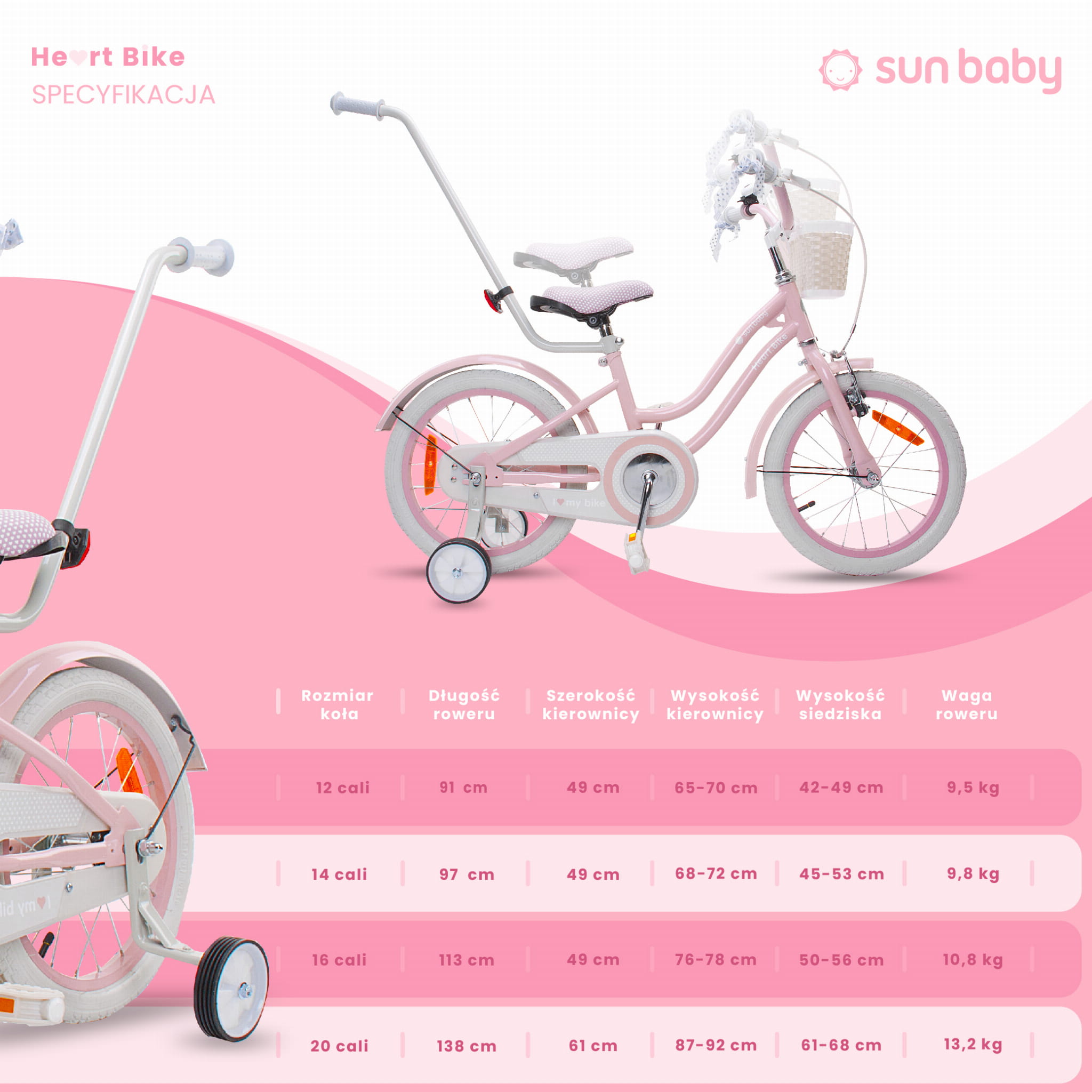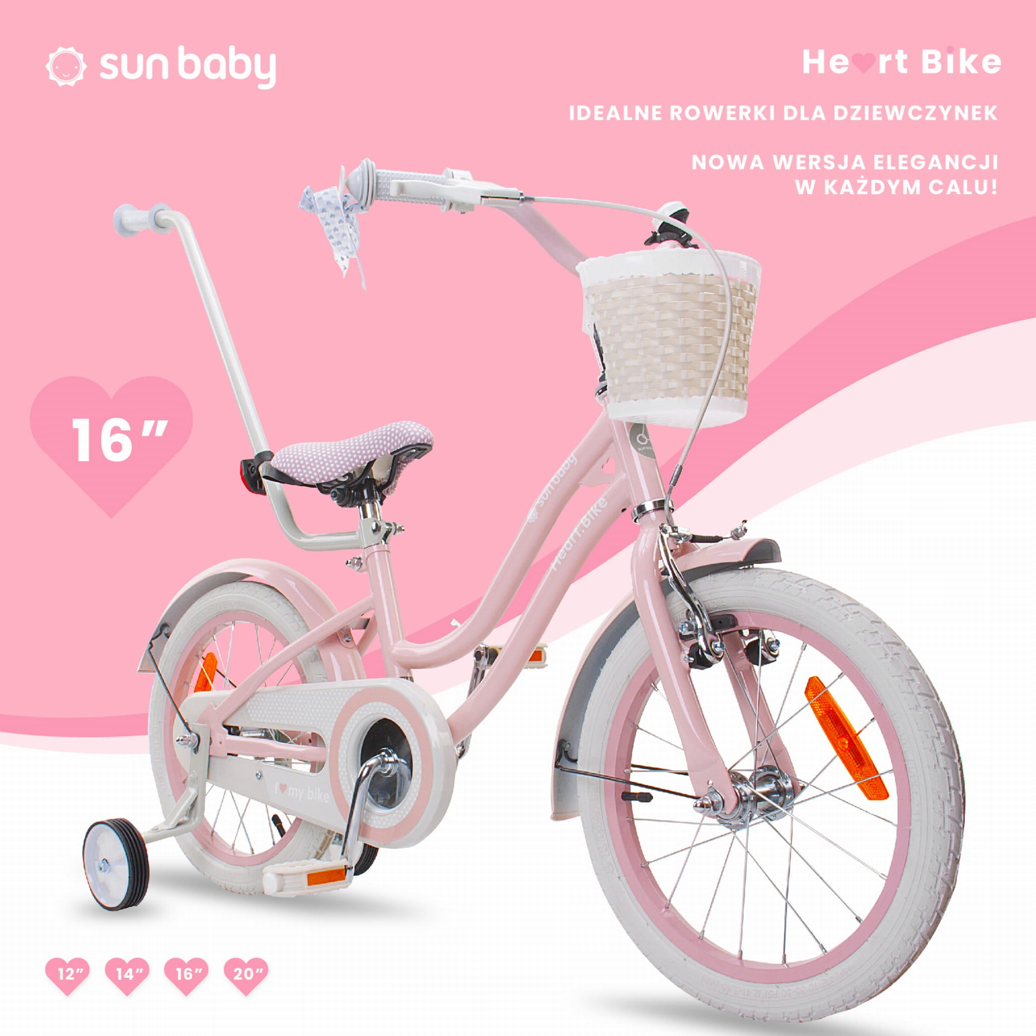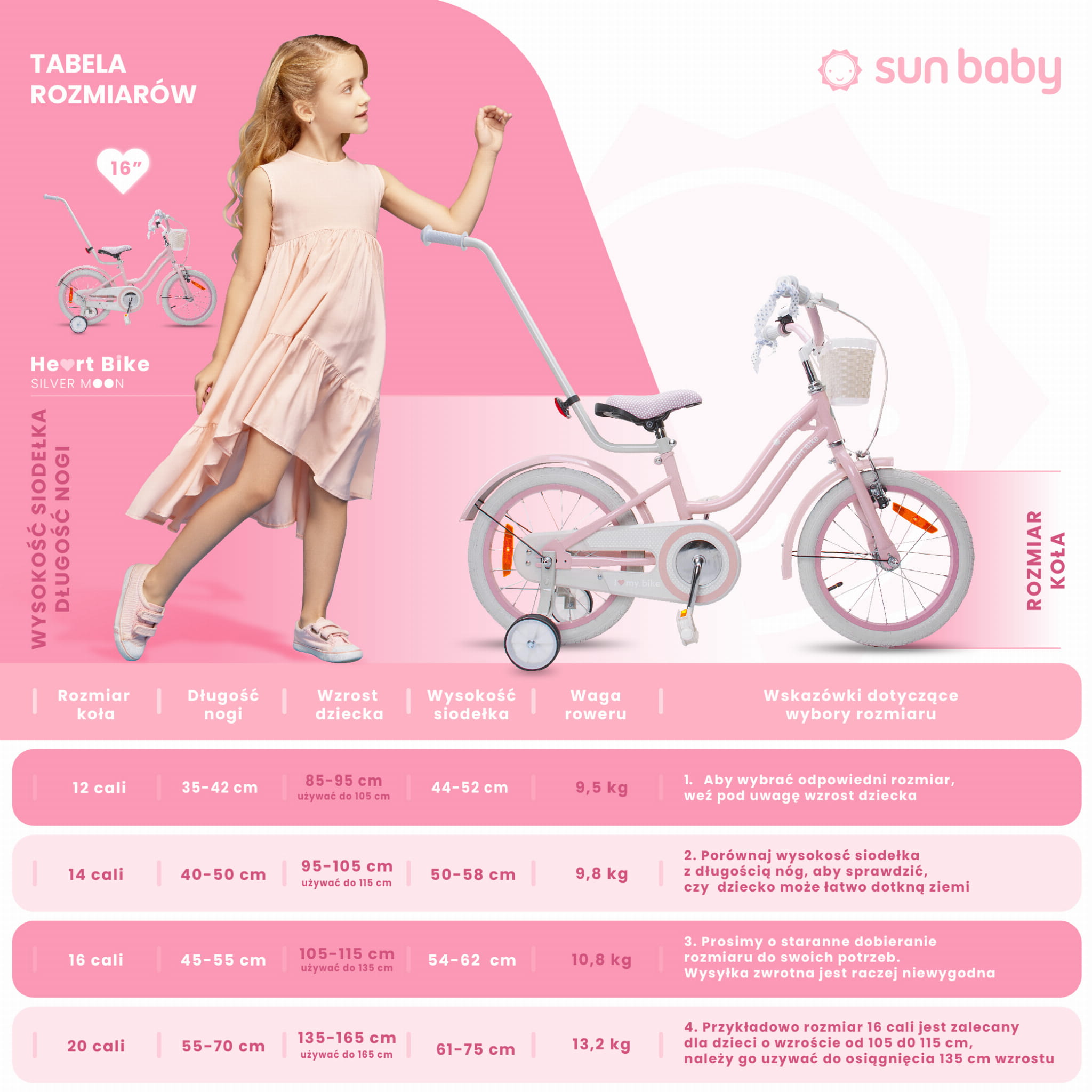 Sun Baby Rower dziecięcy 16 cali dla dziewczynki Silver Moon różowy – pchacz, kółka boczne, koszyk