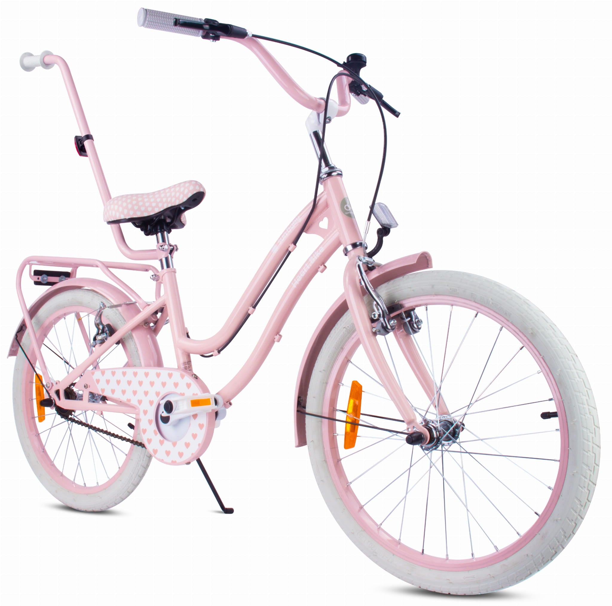 Rower dla dziewczynki 20 cali prowadnik bagażnik stopka Heart Bike Silver Moon różowy