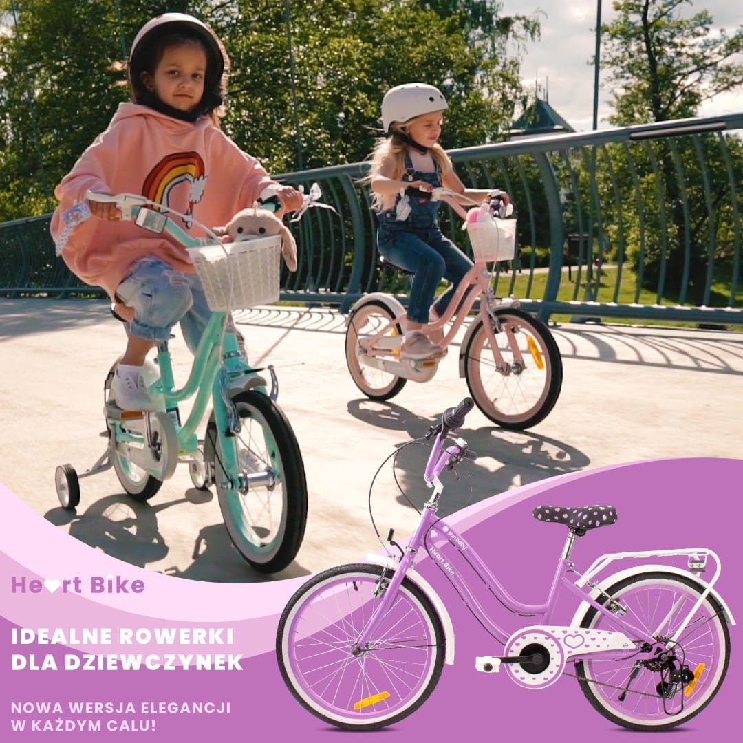 Rower dziecięcy 20 cali dla dziewczynki 6 biegów Shimano Stopka boczna Bagażnik Heart Bike fioletowy