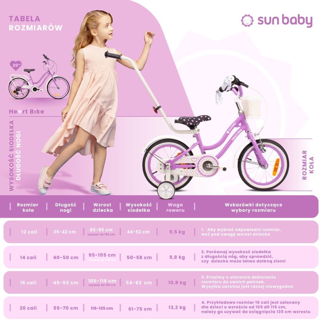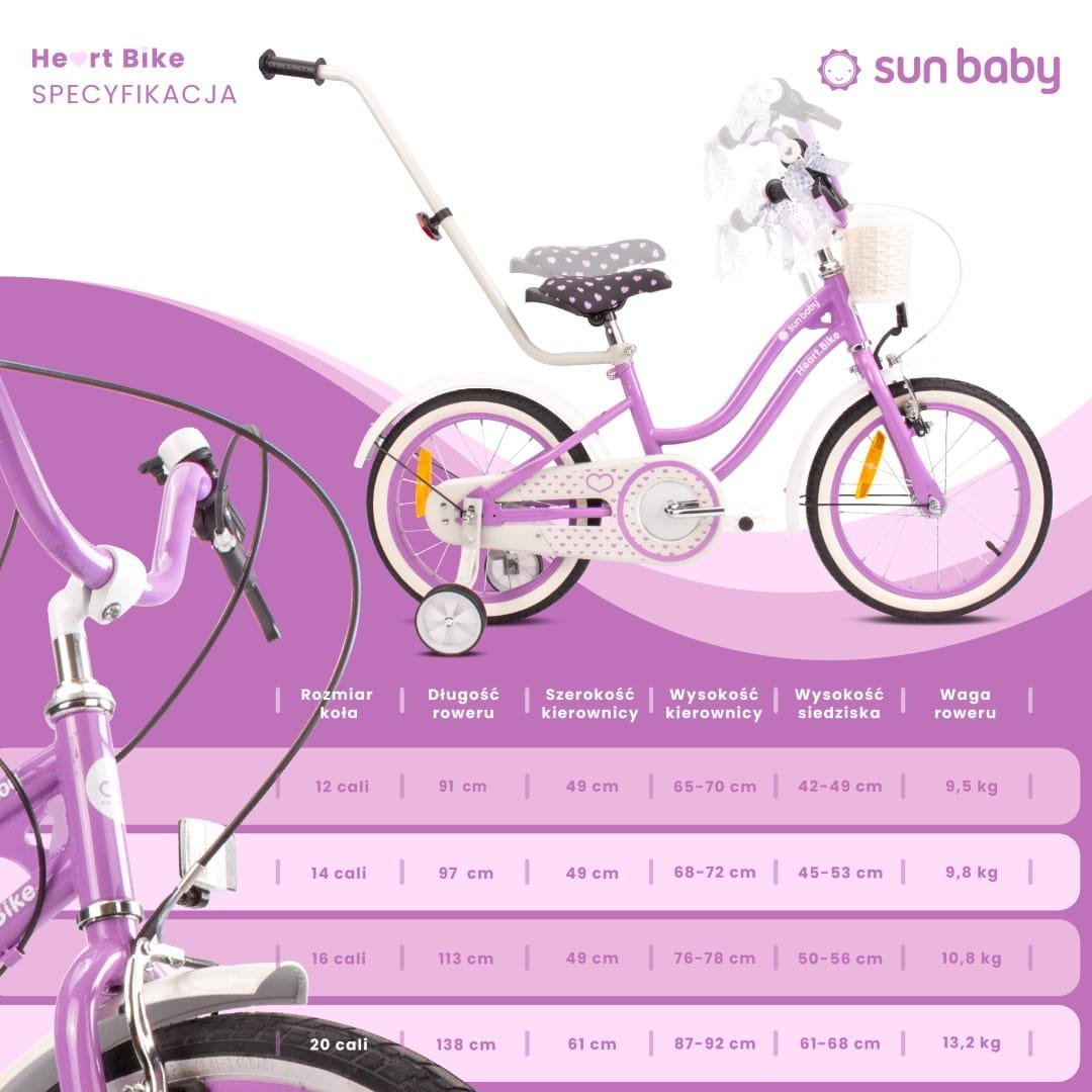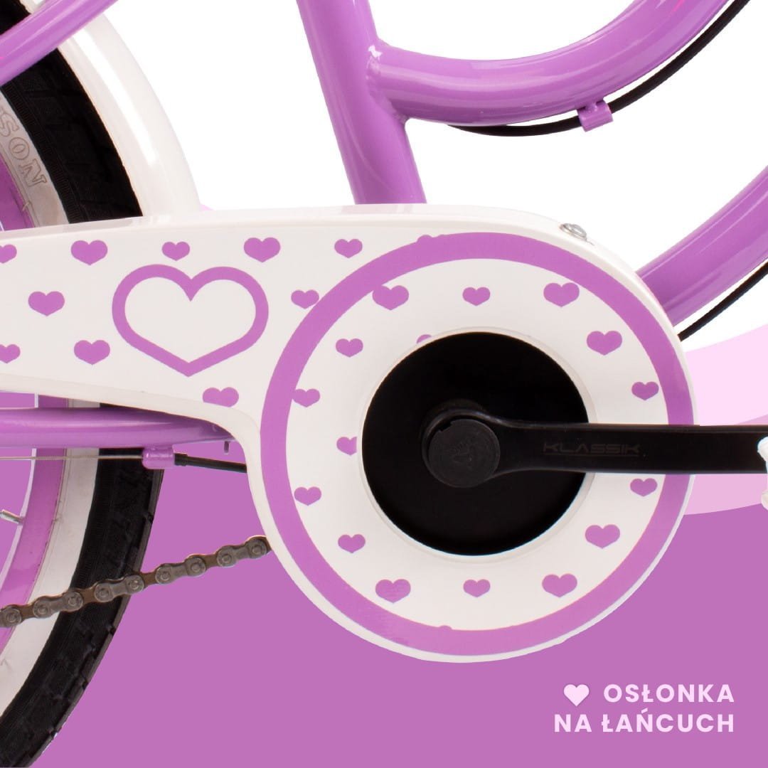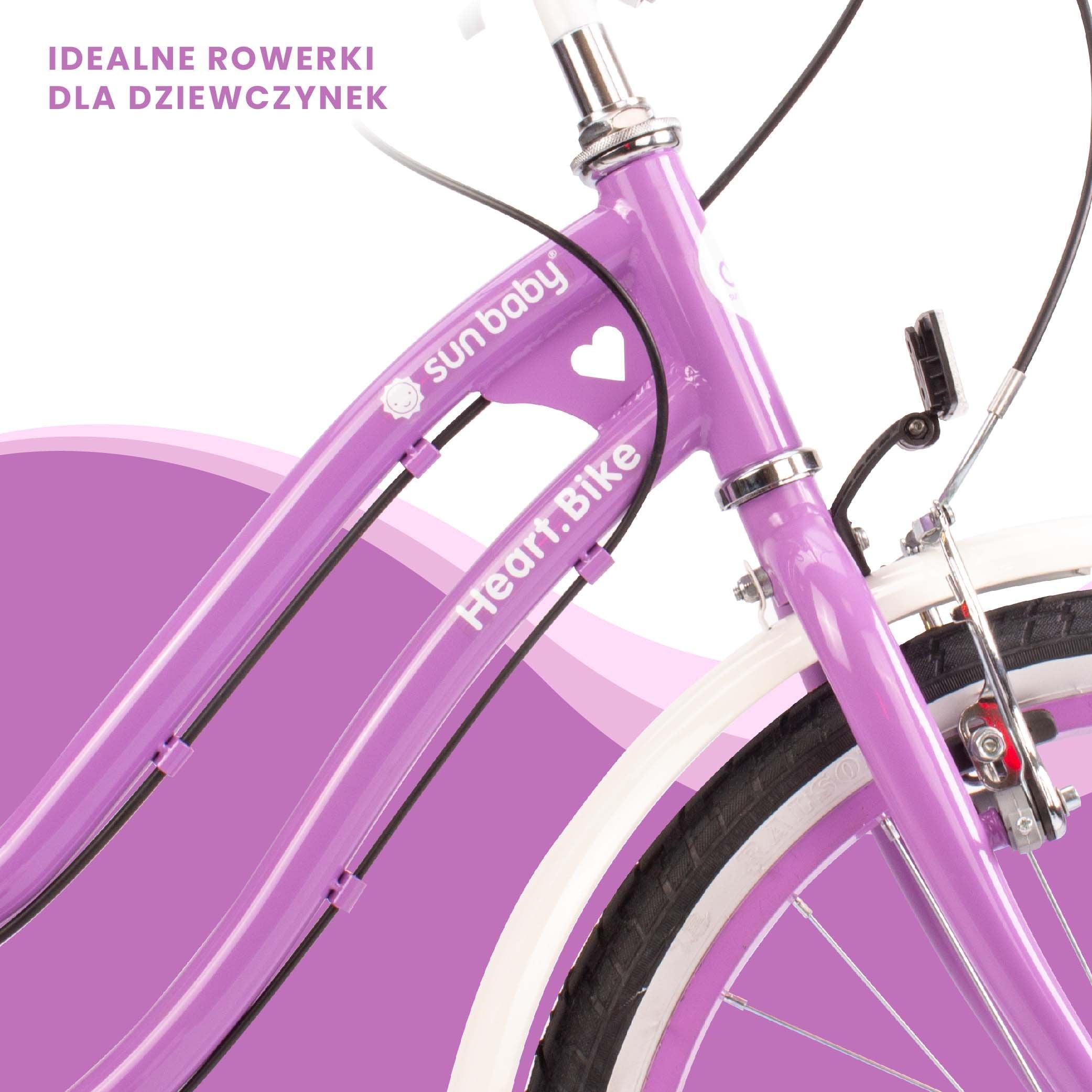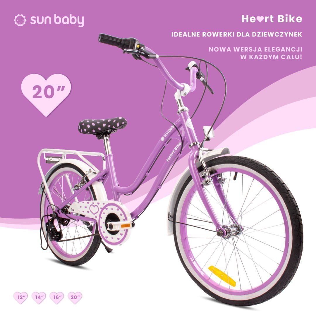 Sun Baby Rower dziecięcy 20 cali dla dziewczynki Heart Bike fioletowy – 6 biegów Shimano, bagażnik, stopka boczna
