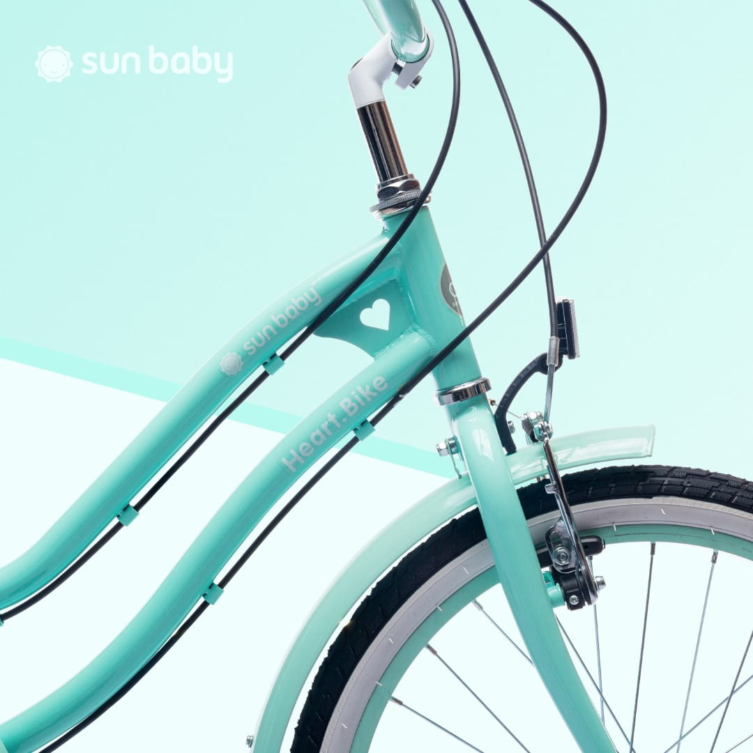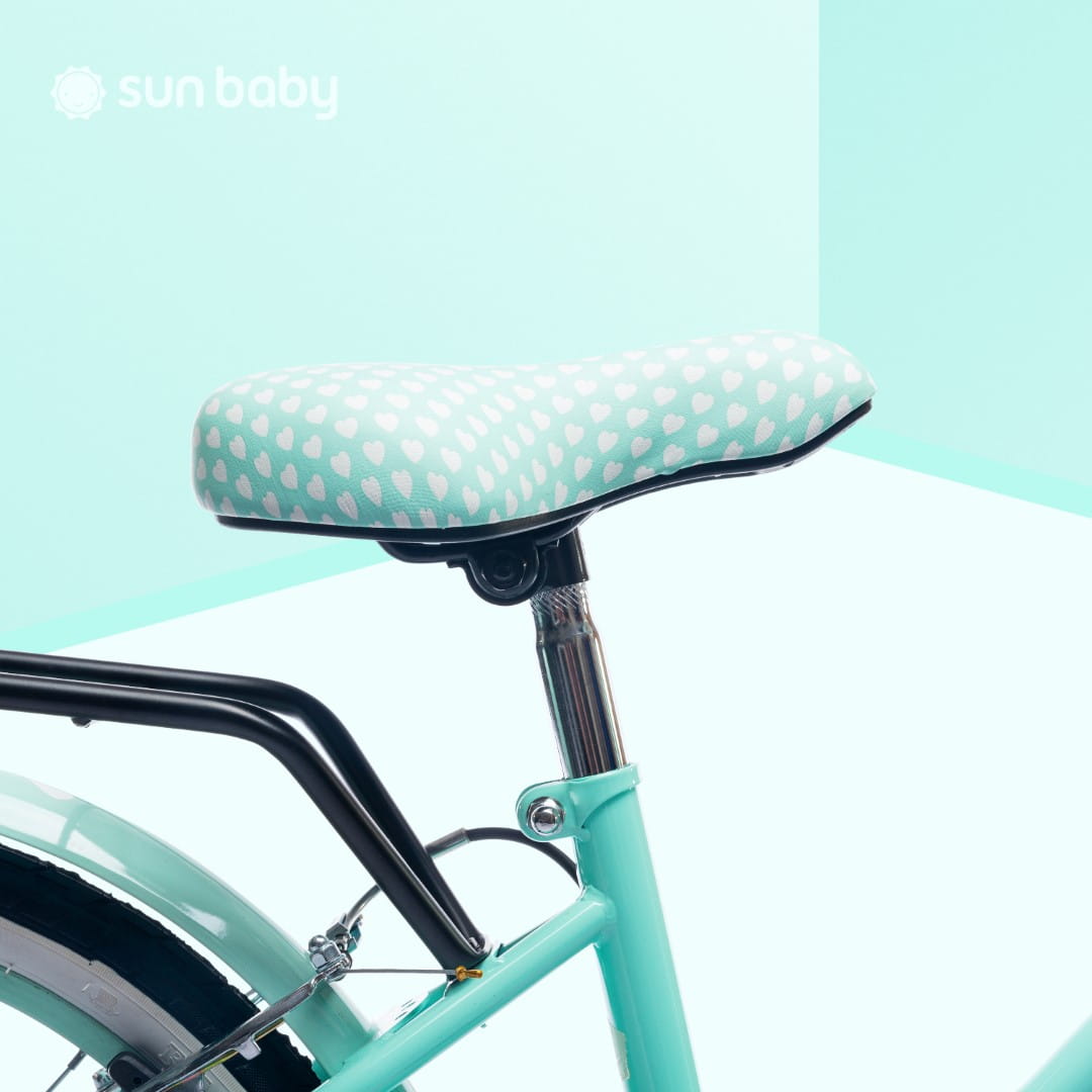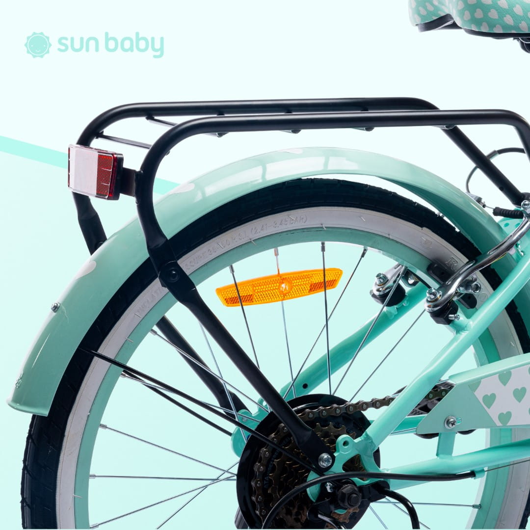 Błotniki w miętowym kolorze dodają rowerkowi elegancji, oraz chronią ubrania podczas deszczu.