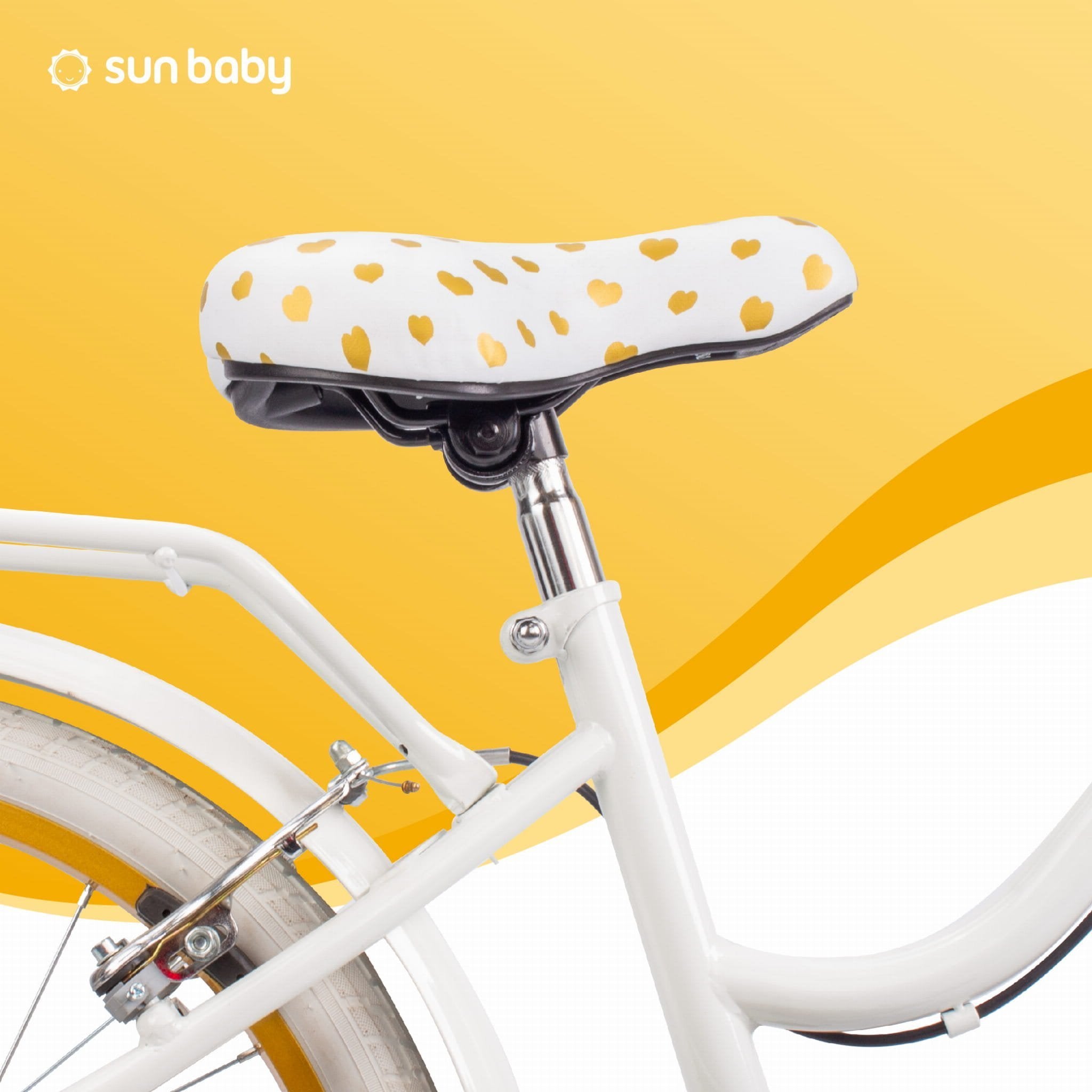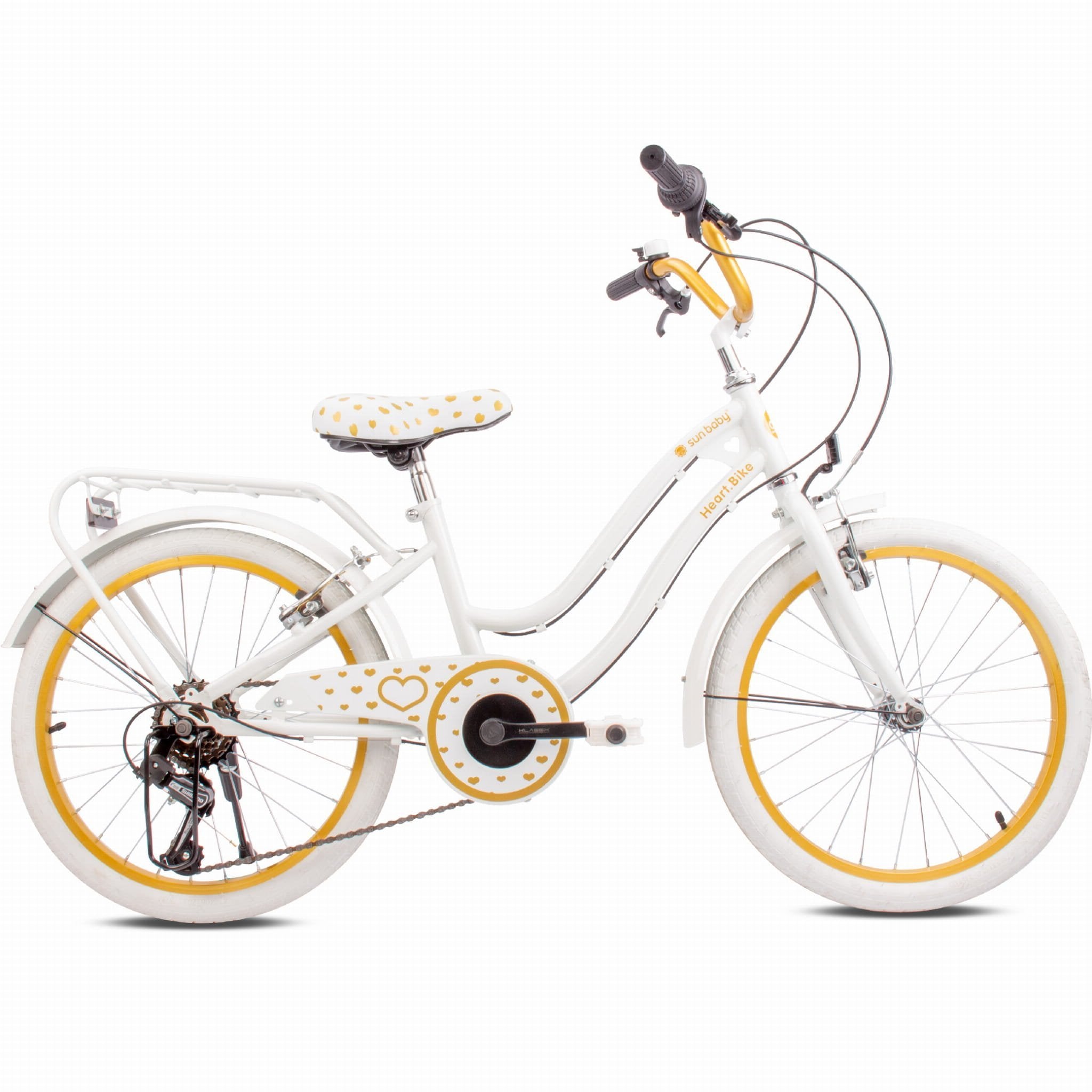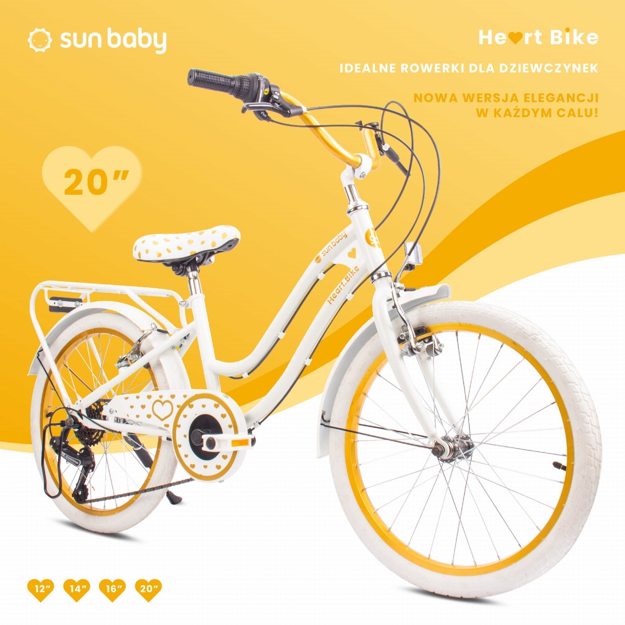 Sun Baby Rower dla dziewczynki 20 cali Heart Bike złoto-biały – 6 biegów Shimano, bagażnik, stopka boczna