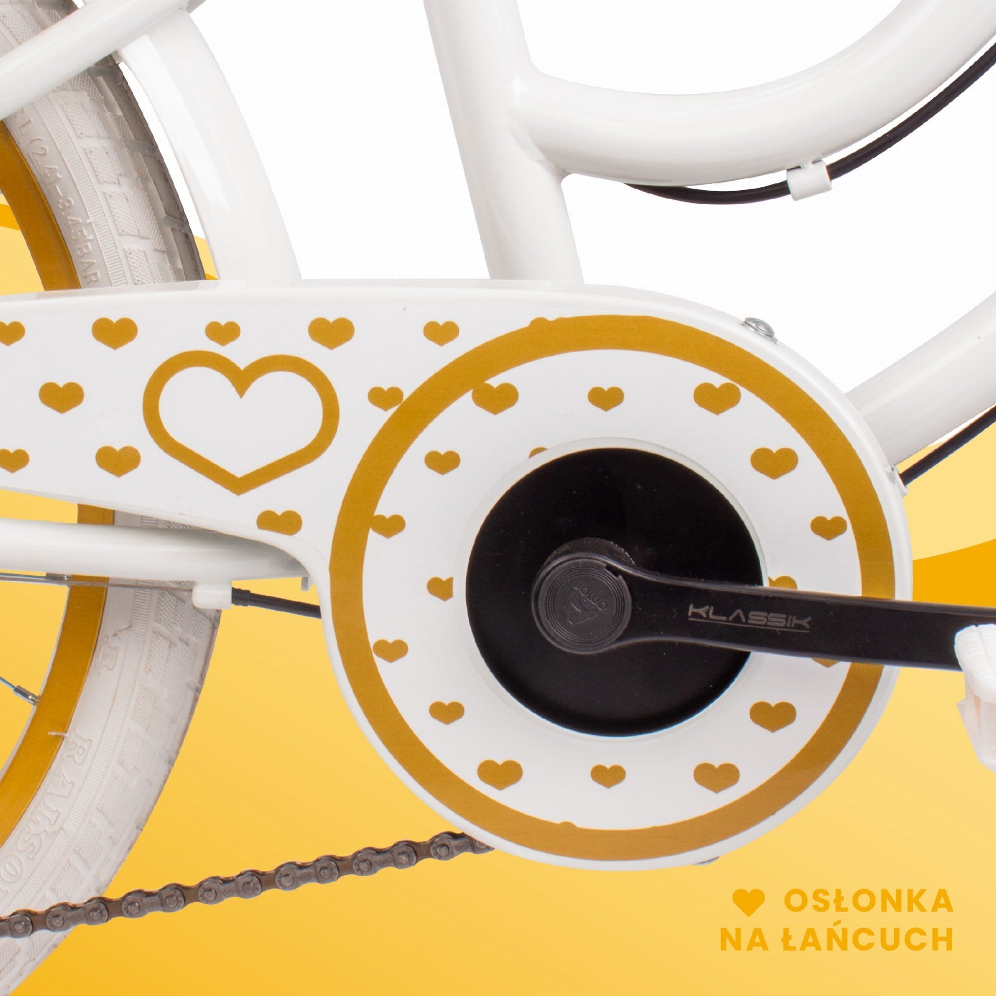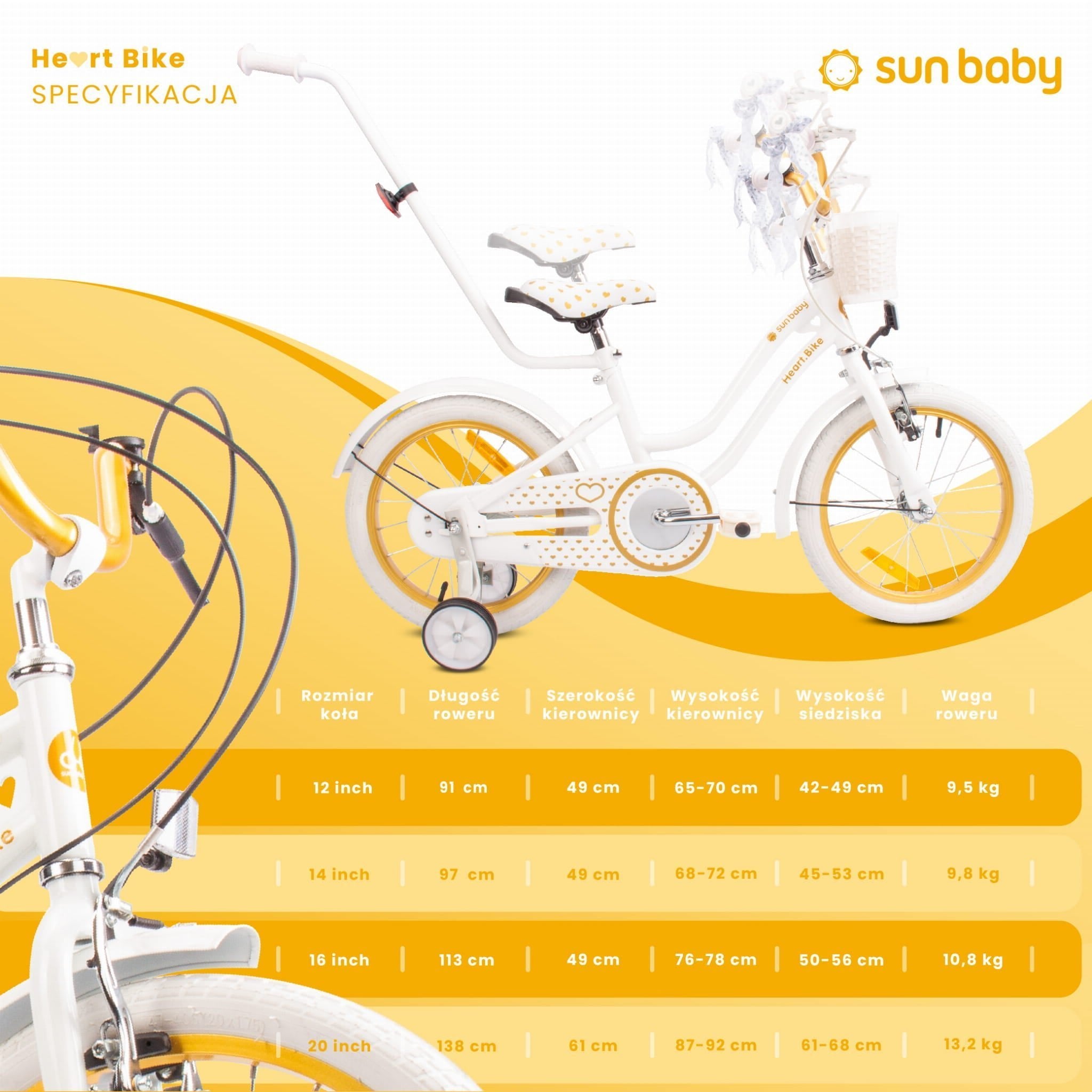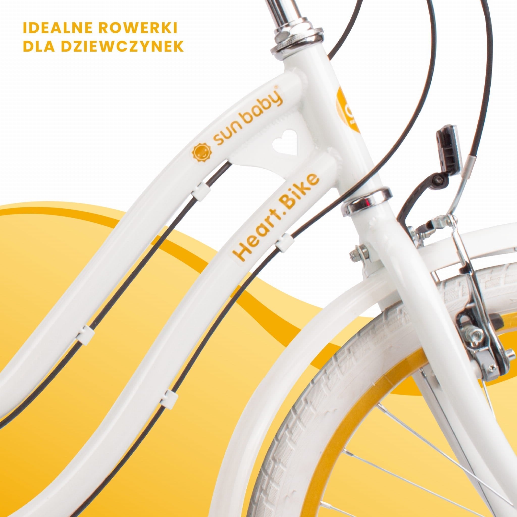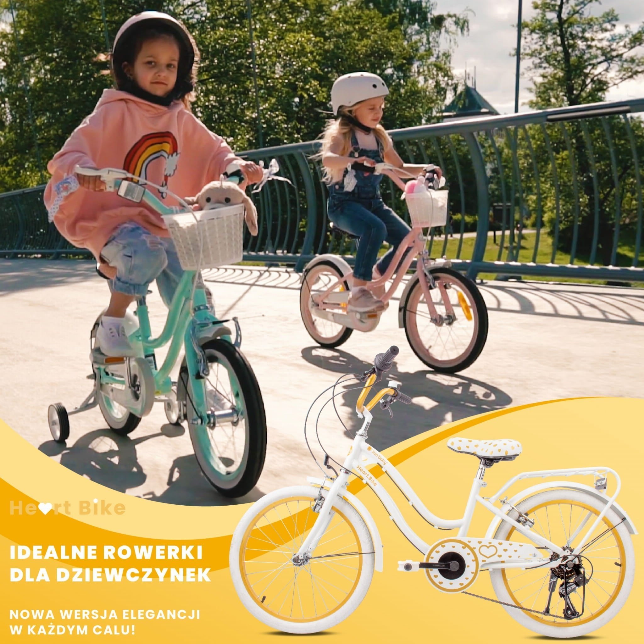 Sun Baby Rower dla dziewczynki 20 cali Heart Bike złoto-biały – 6 biegów Shimano, bagażnik, stopka boczna