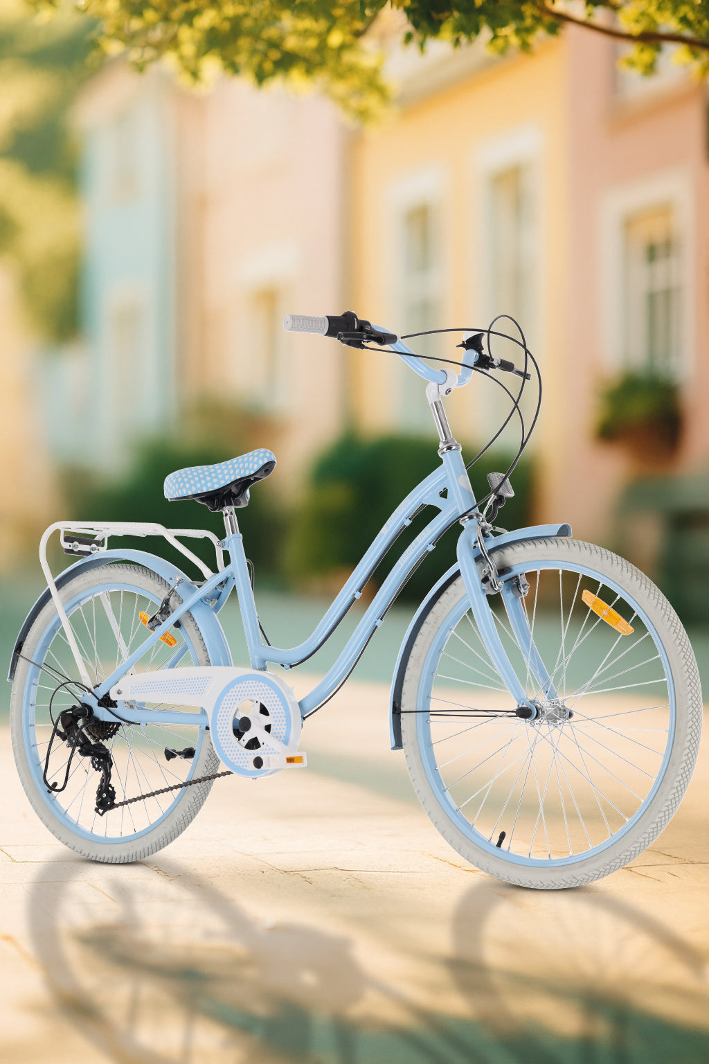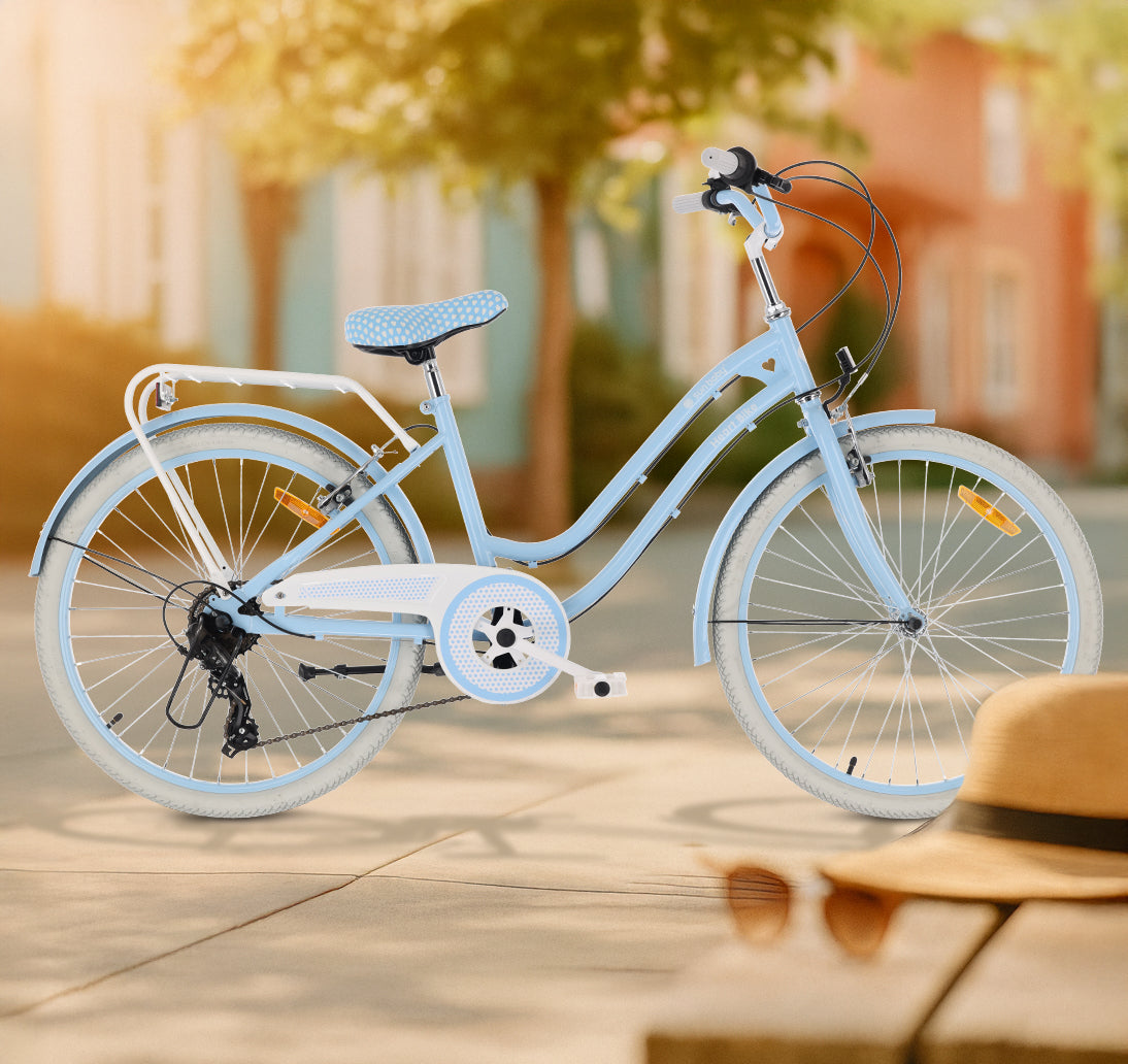Rower 24 cale dla dziewczynki miejski na komunię Shimano 7 biegów Silver Moon błękitny