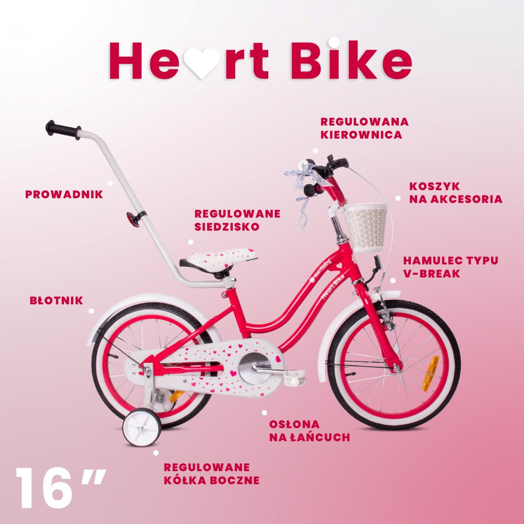 Rower dziecięcy 16 cali dla dziewczynki Pchacz Koszyk Kółka boczne 4-6 lat Heart Bike malina Sun Baby II Gatunek