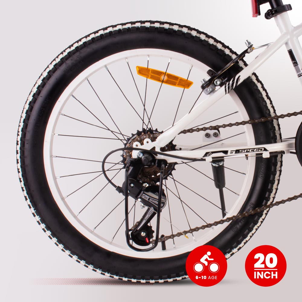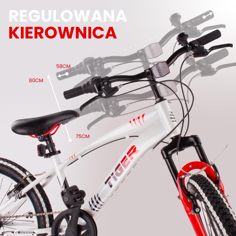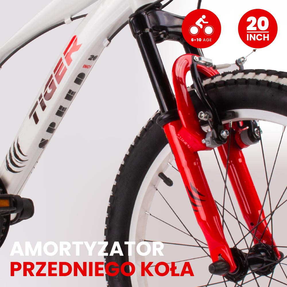 Rower dziecięcy 20 cali chłopięcy 6 biegów Shimano amortyzator szerokie opony Revoshift Tiger Bike II gatunek