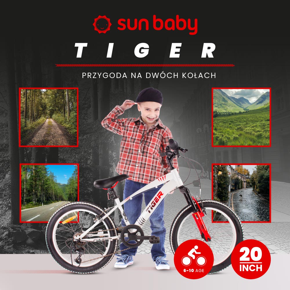 Sun Baby Rower dziecięcy 20 cali chłopięcy Tiger Bike – Shimano Revoshift, 6 biegów, amortyzator, szerokie opony II gatunek
