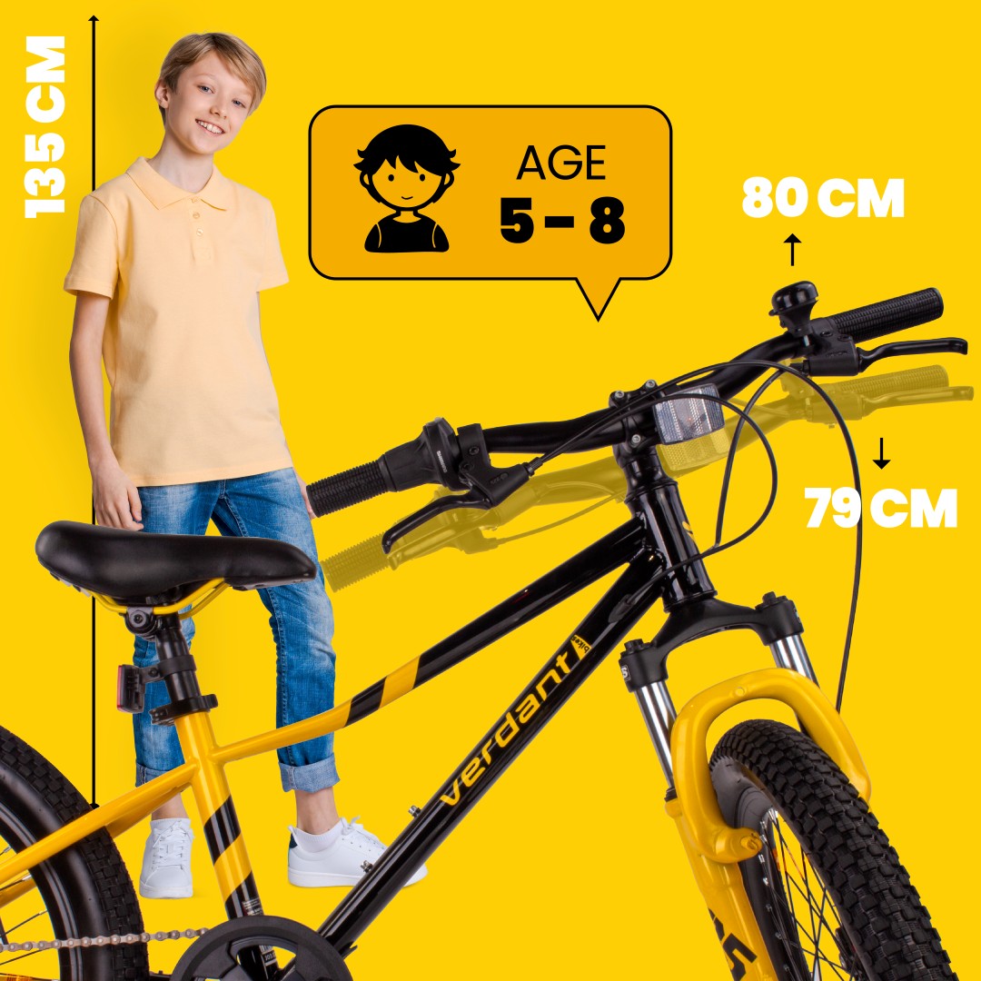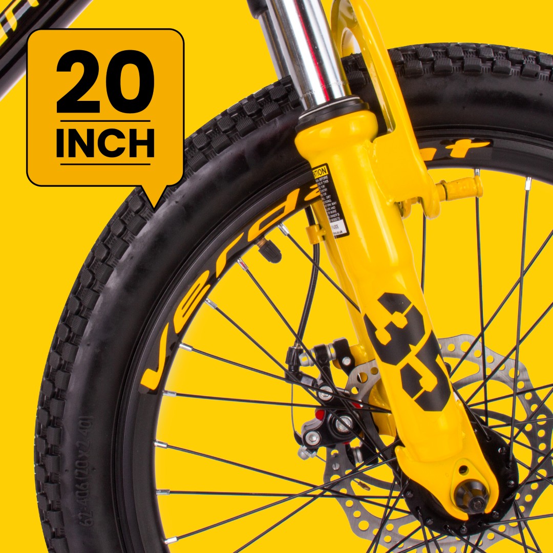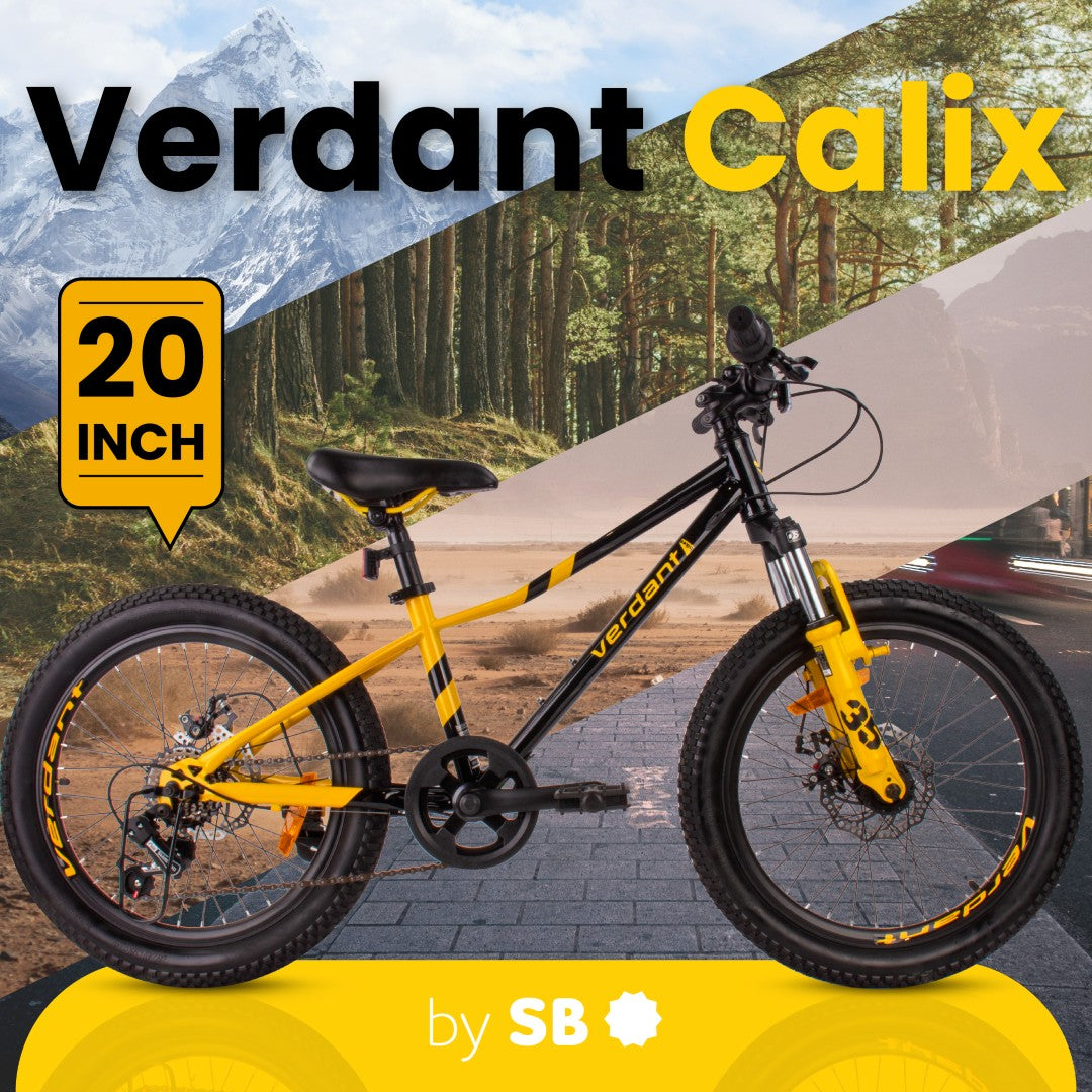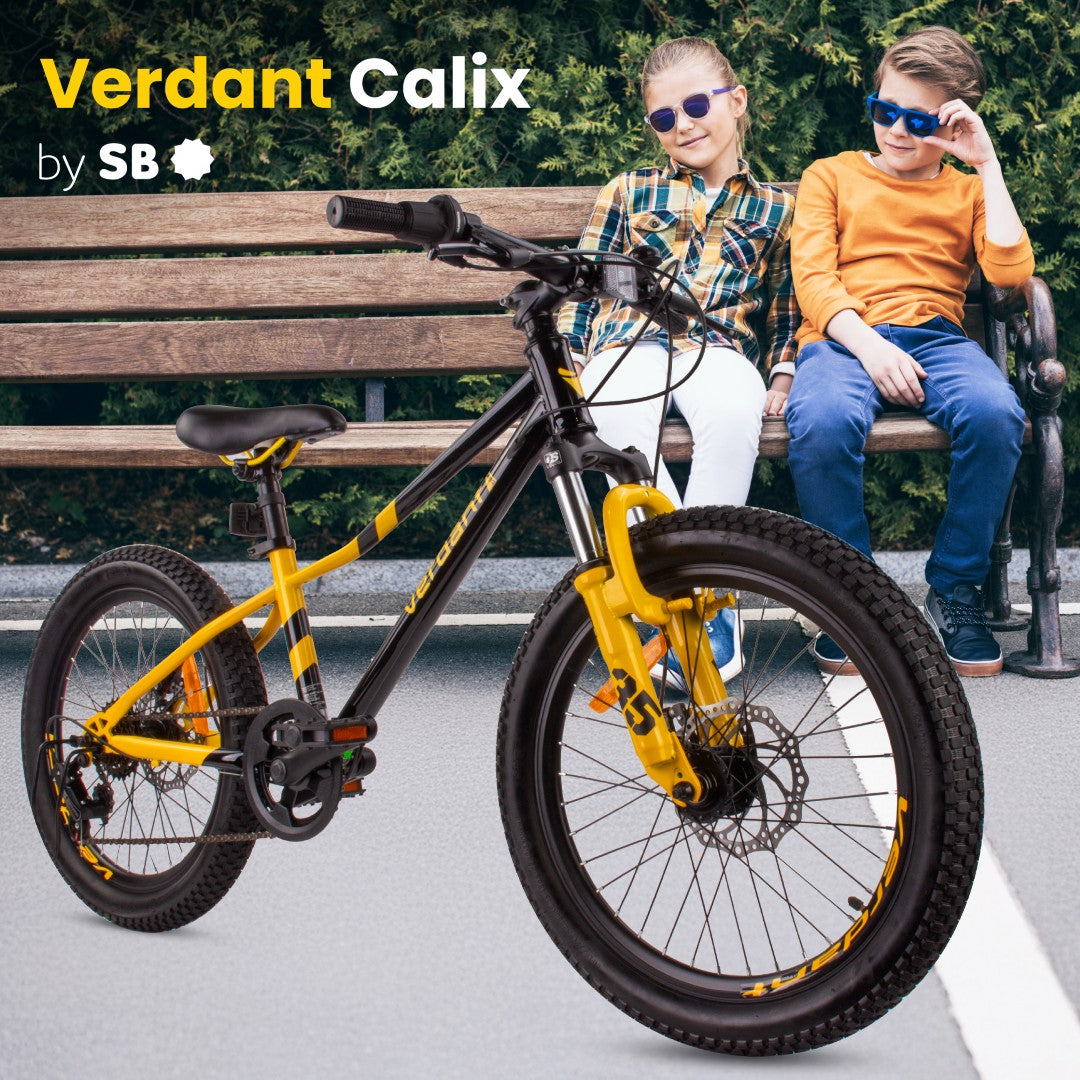 Sun Baby Rower dziecięcy 20 cali dla chłopca i dziewczynki Verdant Calix czarno-żółty – MTB, Shimano 6 biegów, amortyzator, tarczowe hamulce