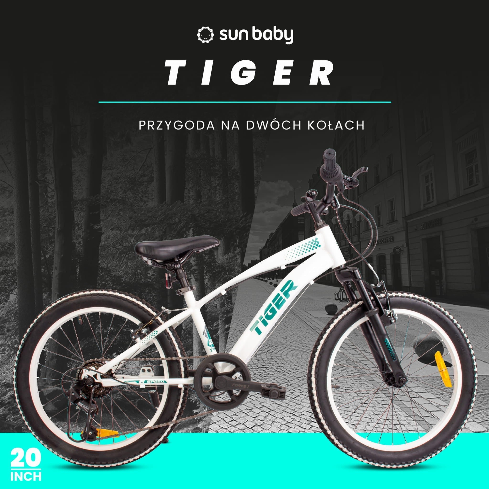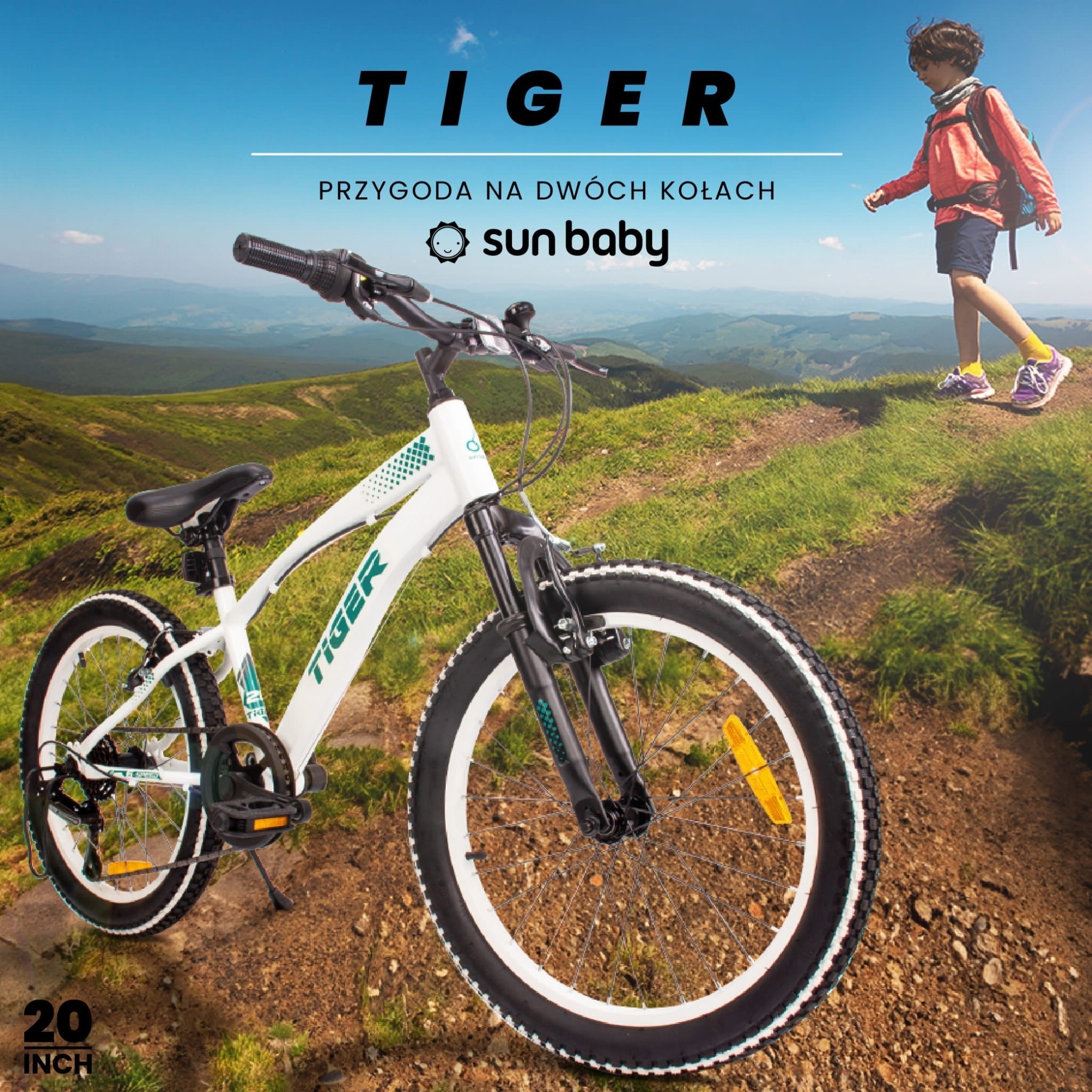 Sun Baby Rower dziecięcy 20 cali dla chłopca Tiger Bike – Shimano Revoshift, 6 biegów, amortyzator, opony BMX