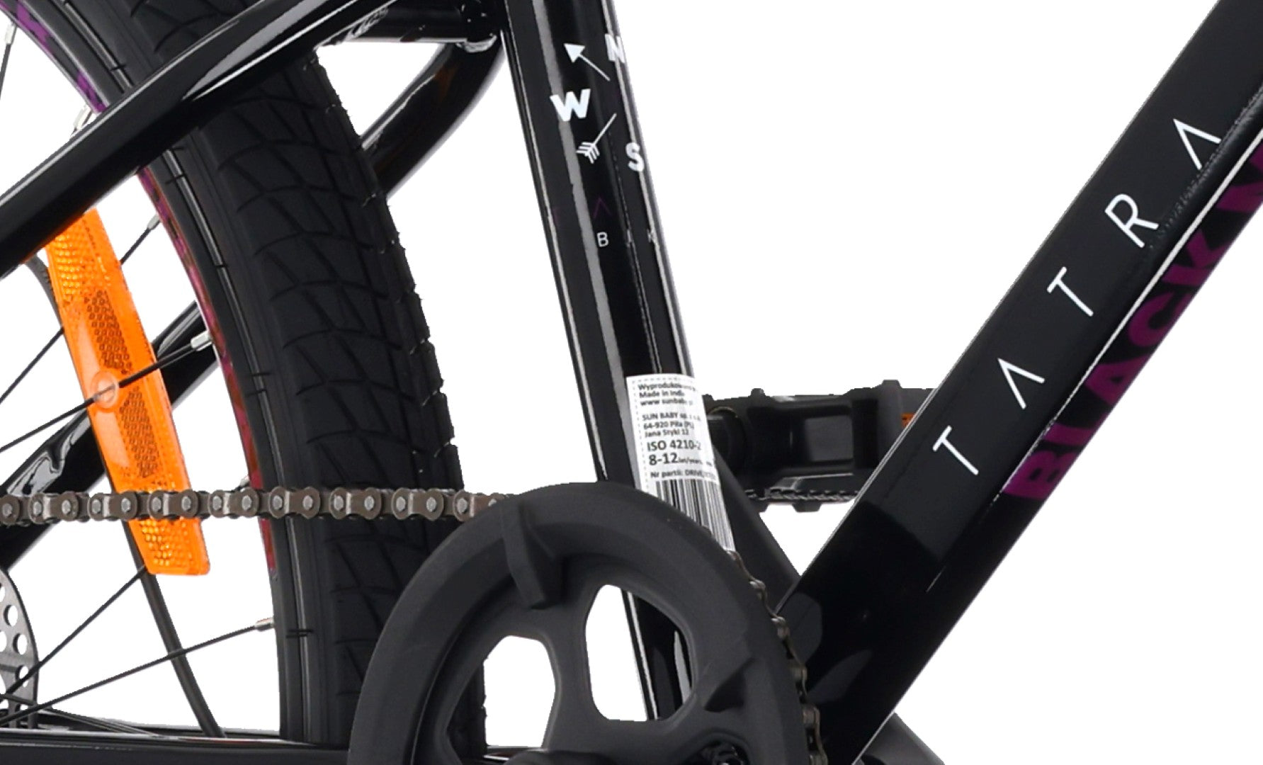 - Wyposażenie: dzwonek, stopka boczna, odblaski, mocowanie na uchwyt bidonu
