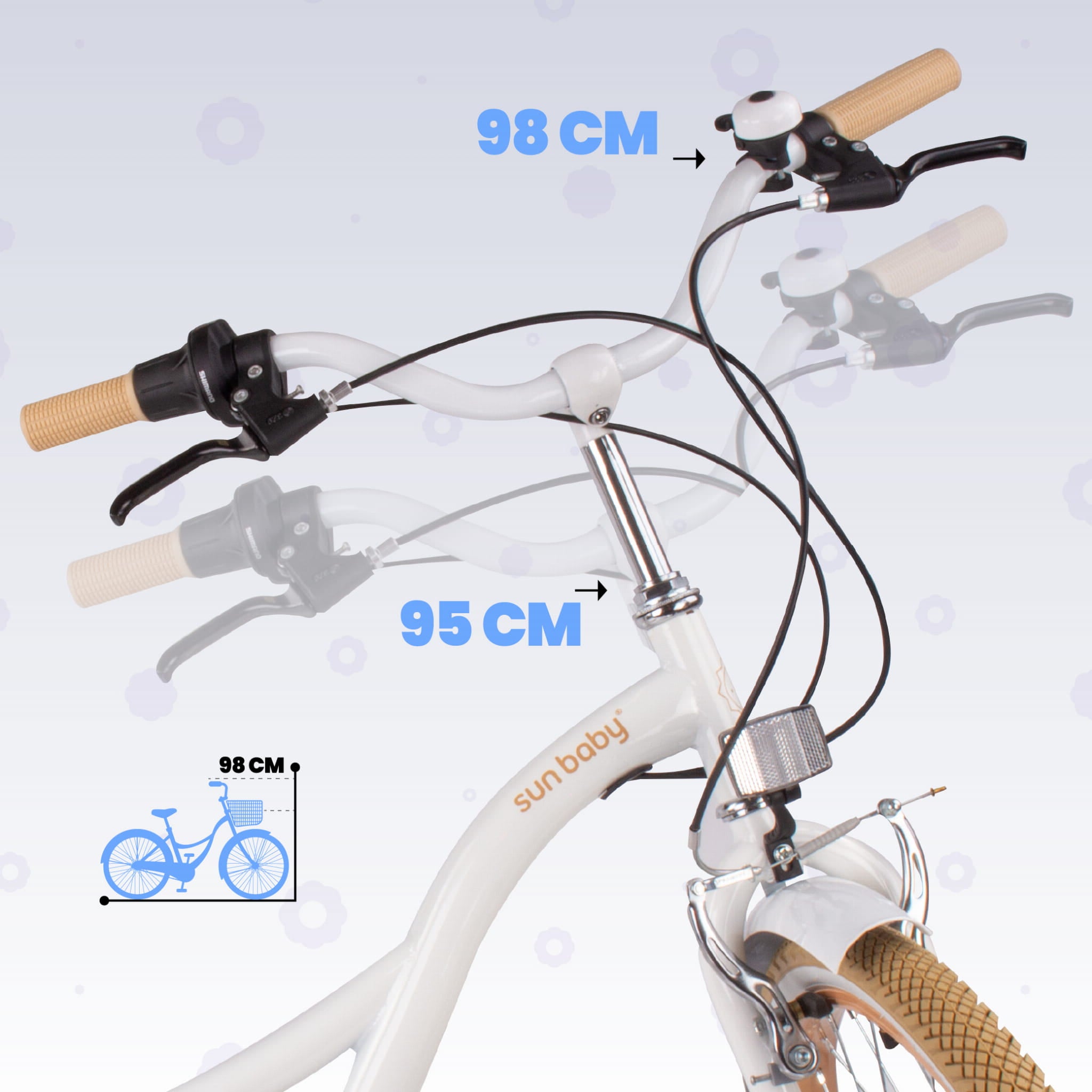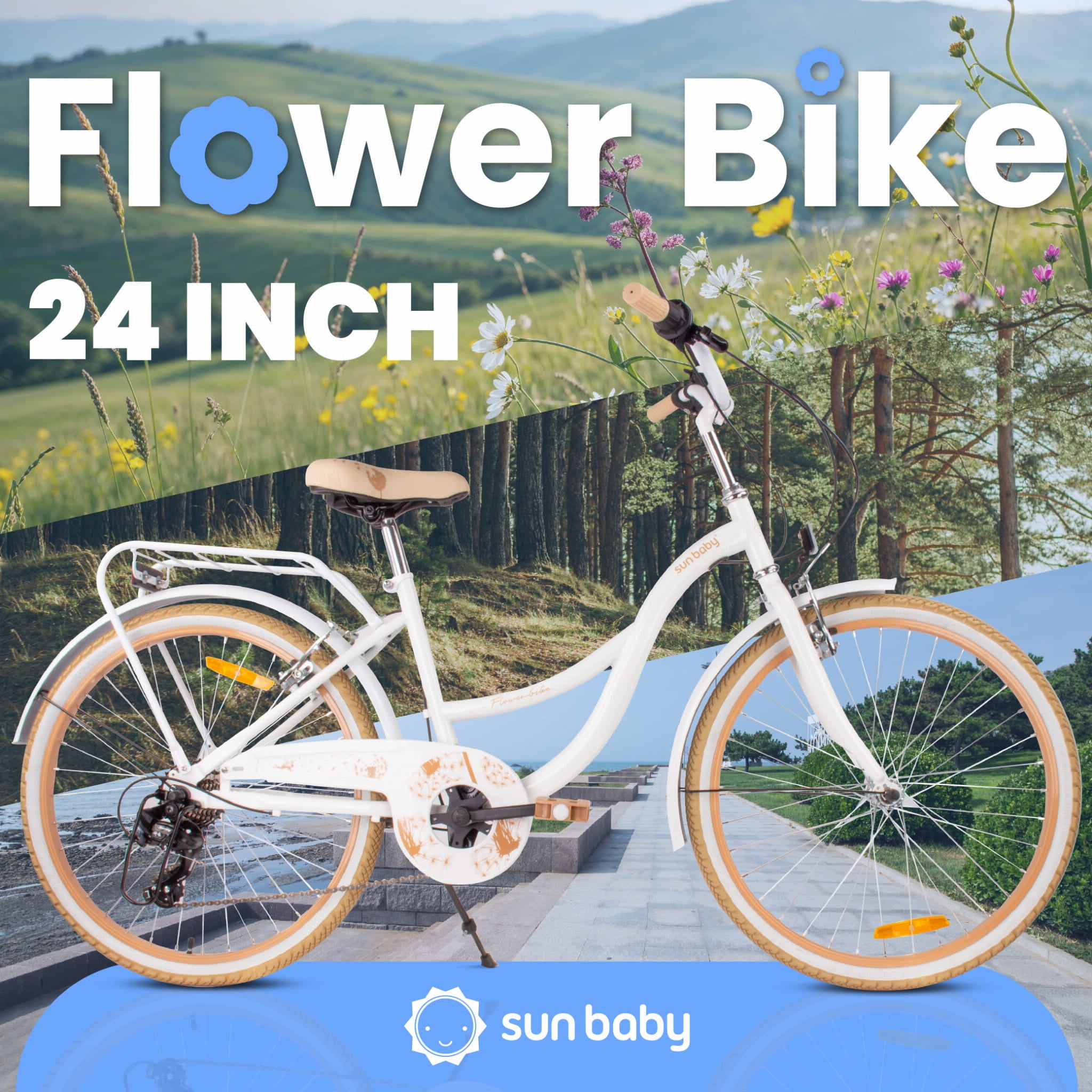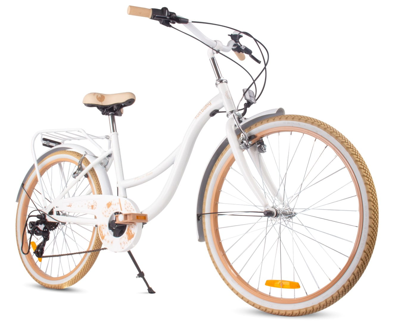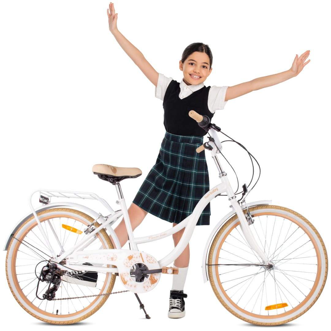 Sun Baby Rower 24 cale dla dziewczynki miejski na komunię Shimano 7 biegów Dmuchawiec biało beżowy