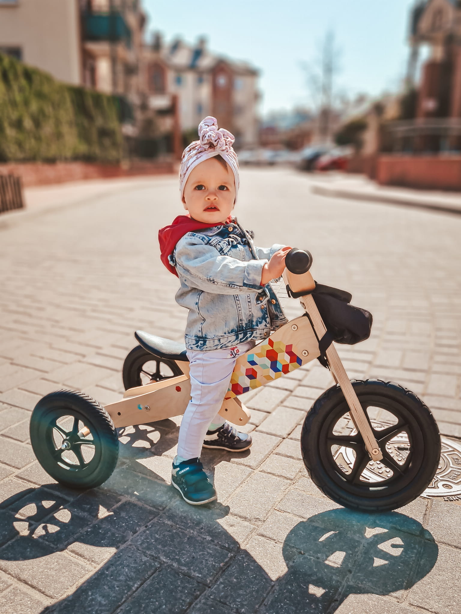 Po opanowaniu jazdy na trzech kołach, przekształcamy pojazd w rowerek biegowy i... w drogę!