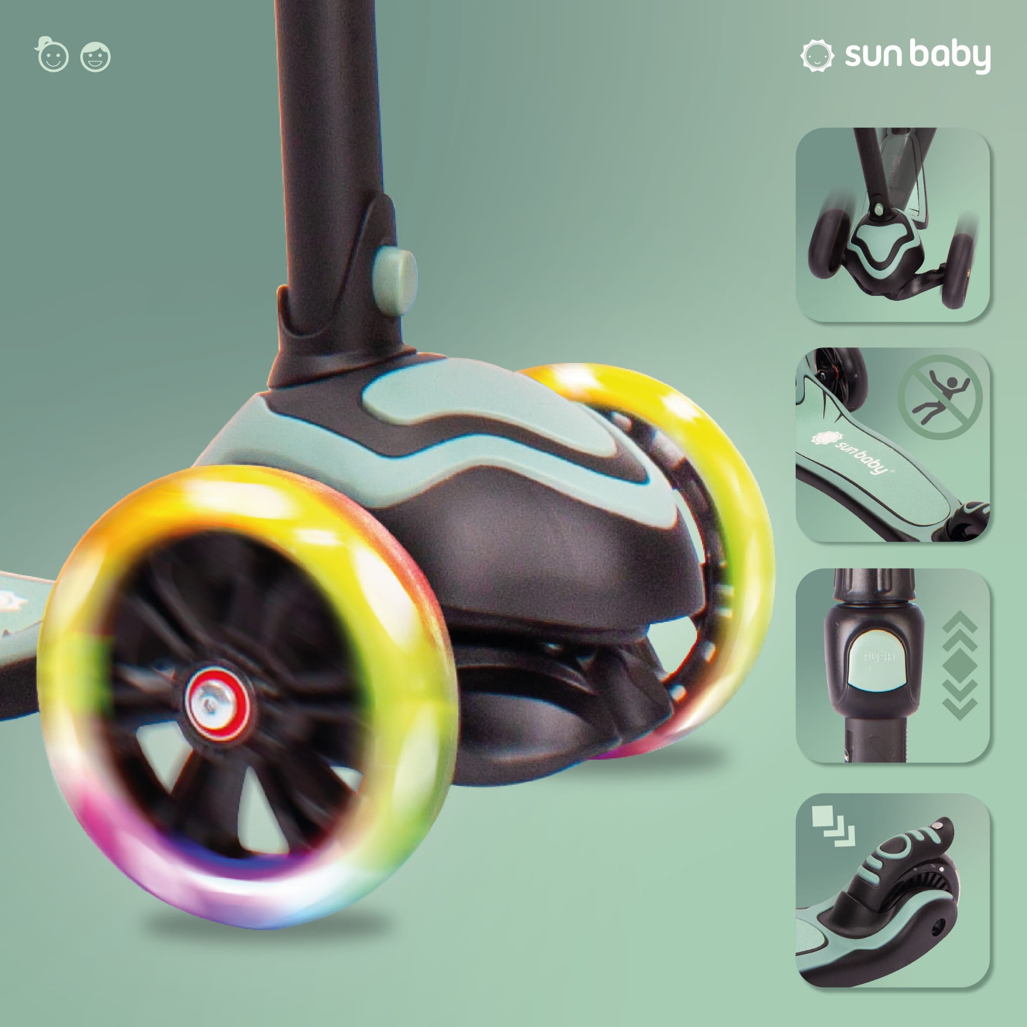 Jeśli twoje dziecko staje się coraz bardziej zaawansowane, hulajnoga może stać się deskorolką w jednym ruchu. Naciśnij guzik, odłącz kierownicę i ruszaj na deskorolce!